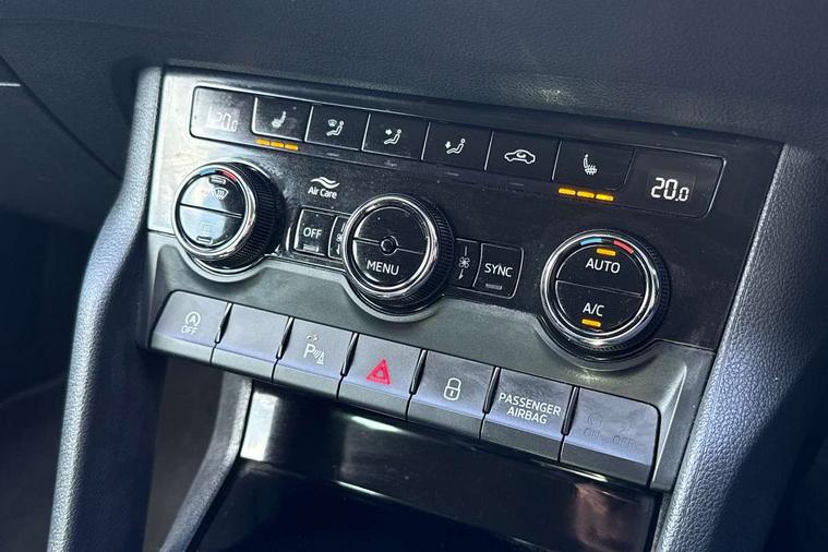 Driver alert system, Driver fatigue sensor, Driver profile selection, Electro-mechanical PAS, Front and rear parking sensors, Multifunction colour trip computer, Outside temperature gauge, Rear view camera, Service interval indicator, Start/stop system with regenerative braking, Diesel particulate filter, DAB radio with Bluetooth, SD card slot, USB connection, Acoustic glass, Aero front windscreen wipers with intermittent function, Automatic headlight control system, Body colour door mirrors and handles, Body coloured bumpers, Chrome outside aluminium bar around the window, Chrome roof rails, Full LED headlights + adaptive front light system + LED daytime running lights and front cornering fog lights, Headlight washers, Heated rear windscreen, LED rear lights with high functionality, Light assistant (coming/leaving home/tunnel light), Privacy glass, Safety reflectors on front doors, Third brake light, 1.5 litre bottle holders in driver and front passenger door panels, 12V socket in boot, 12v socket in front centre armrest with storage compartment and rear air vents, 2 Folding hooks and nets in boot, 2 Front readings lights for driver and passenger, 3 rear height adjustable headrests, 4 foldable roof handles with rear coat hooks, 4 lashing points on luggage floor, Backrest release, Cargo elements in boot, Chrome inner door handles, Dual zone climate control, Folding tables on the front seat backrests, Front seat and rear pockets, Height adjustable front three point seats belts with tensioners, Height adjustable passenger seat, Height/reach adjust steering wheel, Ice scraper, Illuminated and cooled glovebox, Illuminated luggage compartment, Isofix child seat preparation outer rear, Net programme in boot, Pen holder, Pollen filter, Rear boot cover, Rear reading lights, Rear seats fixed folding and divided 60:40, Removable LED torch in the boot, Retractable parcel shelf attachable to tailgate, Safety vest holder, Storage box in upper central dashboard closed, Storage compartment below the passenger seat, Storage net on centre console passenger side, Sunglasses storage compartment, Sunvisors with illuminated vanity mirrors, Textile floor mats, Umbrella under passenger seat, VarioFlex seats with retractable parcel shelf, Airbags - Front side, head, knee and curtain, Automatic door unlocking in case of crash, Automatic fuel cut off in case of crash, Brake energy regeneration, Driver airbag, Electronic parking brake with auto hold function, Emergency rear braking signal, ESC including ABS, MSR, ASR, EDS, HBA, DSR, RBS, MKB and traction control, Front assist radar scanning of the space in front of the car with automatic braking, Hill hold control, Passenger airbag with switch-off function, Pedestrian monitor, Seatbelt reminder signalisation and pretensioner for all seats, Three point seatbelts rear, Two tone horn, Tyre pressure display, Tyre pressure monitor, Alarm with interior monitoring, back up horn and tilt sensor with safe function, Electronic engine immobiliser, Keyless entry and keyless start with safe system, Remote central locking with 2 remote folding keys, Chrome framed air vents, Storage on wheel cover,