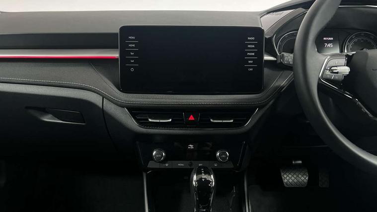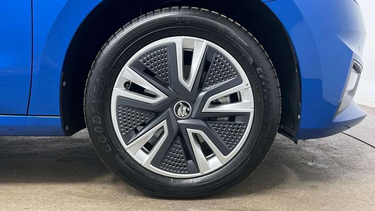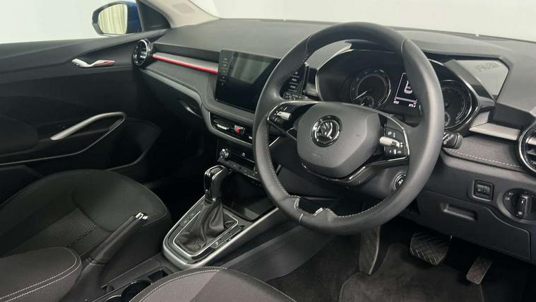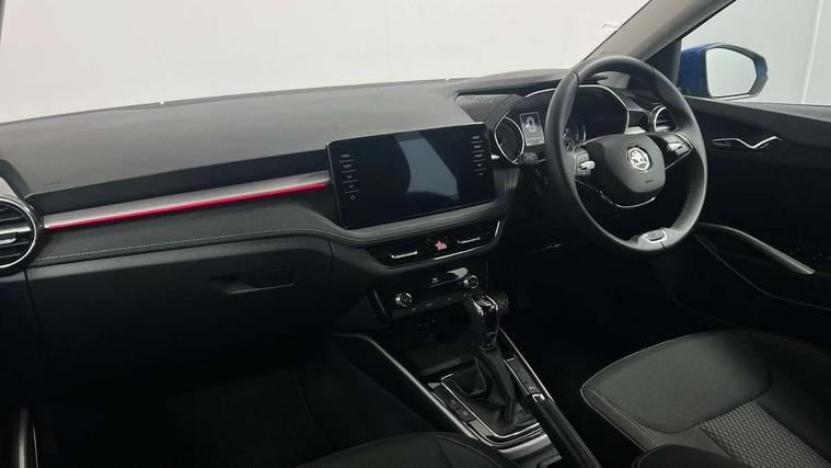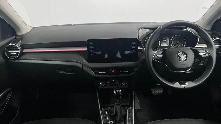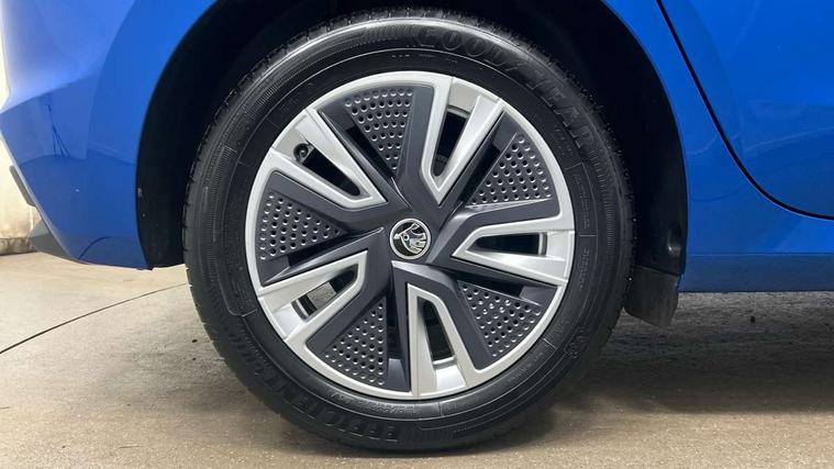 Bluetooth connection, Driver alert system - DAS, Electromechanical power steering, Exterior temperature gauge, Service interval indicator, 2x USB-C in the front (for data transmission and charging), 6 Speakers (4 in front and 2 in rear), Auxiliary socket for external MP3 player, DAB digital radio reception, Web radio, Auto dimming rear view mirror, Basic LED Headlights, Body colour door mirrors, Body coloured bumpers, Chrome window surround, Door mirror integrated indicators, Electrically adjustable and heated door mirrors, Front and rear electric windows, Front fog lights, Front window wiper intermittent control, Headlight range control - Automatic, Ice scraper in fuel cap, LED daytime running lights with coming and leaving home feature, Rain sensor, Rear LED fog light, Rear side wing doors, Rear window wiper with washing nozzles, Roof mounted spoiler, SKODA tailgate lettering in chrome, Third brake light, 3 rear headrests, Backrest split and folding, Central console with fixed cup holder and storage box, Chrome handbrake release button, Comfort seats, Fabric upholstery, Front centre armrest, Gearshift knob/handle in leather, Hand brake lever handle in leather, Height adjustable front headrests, Height adjustable front seats, Height adjustable steering wheel, ISOFIX and TopTether anchorage points to the outer rear seats, ISOFIX and TopTether on the front passenger seat, Luggage compartment lighting, Manually adjustable lumbar support in front seats, Pollen filter, Rear seat bench unsplit, Removable cup holder, Single front passenger seat, Storm grey headlining, Sun visors with mirror and airbag label on passenger side, Textile floor mats, Ticket holder, Umbrella in drivers door, 3-point height adjustable front seats belts with pretensioner and force limiter, Automatic warning lights in case of crash, Driver and passengers airbag with switch off function, e-Call+, ESC including ABS, MSR, ASR, EDS, HBA and XDS, Front and rear seat belt warning, FRONT ASSIST (AEB City and AEB Inter Urban), Front side airbags, Head airbags, Hill hold assist, One tone horn, Pedestrian protection, Three rear 3-points safety seat belts with pretensioner and force limiter including stop function for outer rear seat belts, Tyre pressure monitoring system, Anti-theft alarm system including immobiliser, interior monitoring, backup horn, and towing protection, Central locking with radio remote control, interior controls, SAFE function and 2 foldable keys, KESSY - Keyless engine start/stop, Chrome edged air vents, Satin black door and side trim panel in front, Anti-theft wheel bolts protection, Super-low rolling resistance tyres,