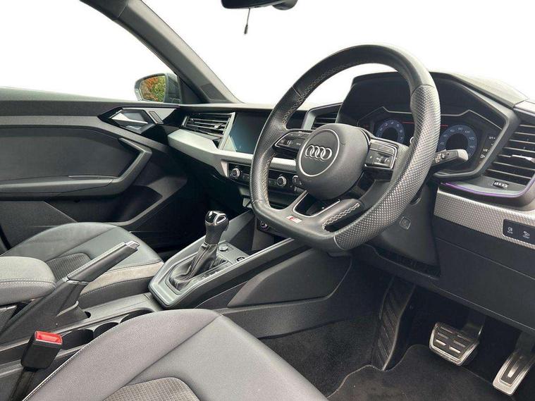 Adaptive speed assist, Audi connect safety emergency and service including E-call, Audi drive select - power steering assistance + engine + gear shift 3 preset modes (auto, dynamic, efficiency and an Individual mode), Automatic start/stop system, Bluetooth interface, Cruise control, Driver's information system, Electromechanical power steering, Lane departure warning system, Service interval indicator, Speed limiter, Voice control system, Washer fluid level indicator, Sports suspension, 1 x SDXC card reader, 2 x USB type C connection points, DAB Digital radio, Auto dimming rear view mirror, Black Audi rings and black badging (with model name in black, no engine badging), Body coloured door mirrors, Door sill trims with aluminium inlays and logo, Electric front and rear windows, Electrically adjustable, heated, folding door mirrors with integrated LED side indicator, Front side air inlets in grained matt black and C frame in titanium black, Front wing badges, Heat insulating glass windscreen and side windows, Heated rear windscreen, LED headlights with LED rear lights + dynamic rear indicators + headlight adjustment and high beam, turning light + LED daytime running lights, Radiator grille and rear diffuser in matt titanium black, Radiator protective grille frame in matt aluminium silver, Rain and light sensors, Rear fog lights, Rear wiper, Side front spoiler lips in grained matt black, 12V socket in centre console with two cup holders, 3 rear seats with headrests, 3 spoke flat bottomed multi-function plus leather steering wheel with S badging, grips in preforated leather, contrast stitching and paddle shift, 40:60 Split folding rear seat or folded fully, Black cloth headlining, Driver and passenger seat with manual height adjust with forward and backwards adjustment, Frequency alcantara/leatherette upholstery and S embossed logo + front sports seats, Front and rear black floor mats with contrast stitching in fine silver, Front head restraints, Height and reach adjustable steering wheel, ISOFIX child seat mounting for front passenger and outer rear seats including top tether attachment point of outer rear seats, Leather gear knob with aluminium trim, Luggage compartment light with front and rear reading lights, Manually adjustable lumbar support in front seats, Stainless steel pedals, Black exterior styling pack - A1 Sportback Vorsprung, Comfort and sound pack - A1 Sportback, Luggage compartment pack - A1, Multicoloured LED Ambient lighting pack - A1 Sportback, Plus pack - A1 Sportback, Technology pack - A1 Sportback, 3x3 point rear seatbelts, Brake assist function, Driver and front passenger airbag with front side and head airbags, Electronic Stability Control including ABS, EBD, ASR and EDL, Front passenger airbag deactivation switch, Hill hold assist, Seatbelt height adjustment for front seats, Seatbelt monitoring, Tyre pressure warning light, Warning triangle and first aid kit, Advanced key, Anti theft alarm, Anti theft wheel bolts and loose wheel warning, Audi pre-sense front with pedestrain and cyclist recognition, Immobiliser, Remote central locking with 2 foldaway keys, Aluminium trim for control switches, air vents and digital instrument cluster, Silver grey inlays polygon structure in diamond paint finish, Structured grey accent areas including air vents, door handle recesses and centre console in quartz paint finish, 18" 5 double arm design alloy wheels in matt titanium look with diamond cut finish,