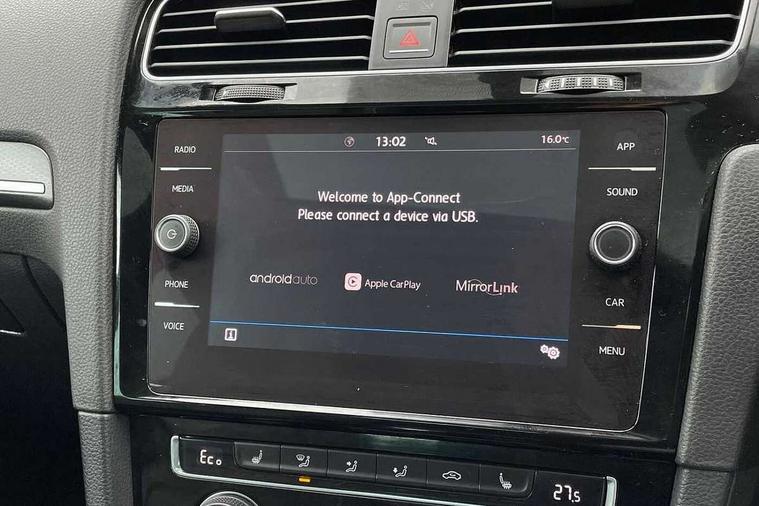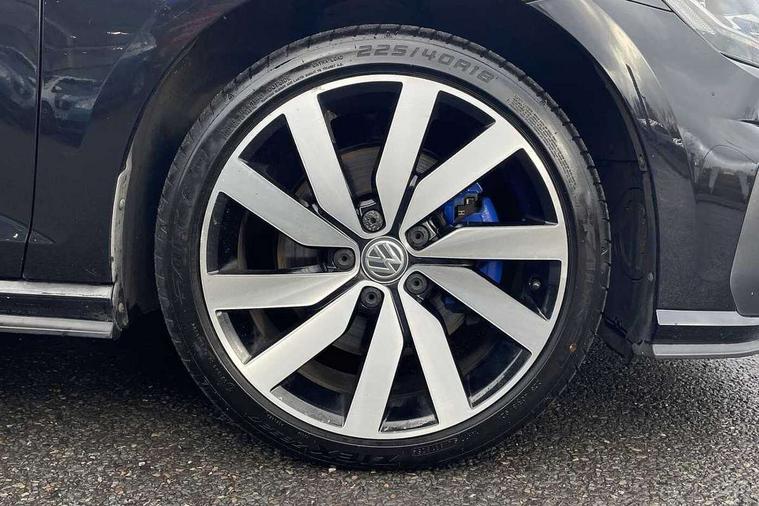 App-Connect, 'Lights On' Reminder warning buzzer, 8" touch screen, Adaptive Cruise Control with pedestrian detection and speed limiter, Bluetooth hands free telephone connection, Brake pad wear indicator warning light, Driver alert system, Driver profile selection, Exterior temperature gauge, Front assistant collision mitigation, Instrument cluster in white, Multifunction computer, PAS - speed related, Rev counter, Trip and service interval display, Ultrasonic front and rear optical and audible parking sensors, Warning buzzer and light for front seatbelts unfastened, XDS electronic differential lock, CD/MP3/WMA, USB and SD card reader, aux-in, Composition media system, DAB Digital radio, 3D-LED-SBBR with sweeping indicator, Auto dimming rear view mirror, Automatic coming/leaving home lighting function, Automatic headlights, Black front air intake and radiator grille with chrome insert, Black rear diffuser, Body colour bumpers, Body colour door handles, Body colour door mirrors, Chrome grille surround, Electric front windows, Electric rear windows, Electrically adjustable and heated door mirrors, Heated rear windscreen, LED daytime running lights, LED rear lights, Rain sensor, Rear roof spoiler, Rear windscreen washer and wiper with interval delay, Side skirts, Twin exhaust tailpipe, 12V socket in luggage compartment, 3 rear headrests, 3 spoke steering wheel, 60/40 split folding rear seat, Air conditioning - 2 zone electronic climate control, Aluminium/leather gear knob, Bag hook in luggage compartment, Black headlining, Boot lashing points, Cooled glovebox, Courtesy light delay, Cover for storage compartment in centre, Dust/pollen filter, Front + rear carpet mats, Front centre armrest with storage box and rear air vents, Front passenger drawer stowage, Front passenger seat height adjust, Front seat back storage pockets, Gearshift paddles, Grab handles, Height adjustable driver's seat, Height/reach adjust steering wheel, Illuminated vanity mirrors, Isofix preparation for 2 rear child seats, Load through provision with rear centre armrest and cupholders x2, Luggage compartment cover, Luggage compartment lighting, Multifunction leather steering wheel with blue stitching, Overhead storage box, Stainless steel pedals, Storage box in luggage compartment, Storage compartments in doors, Sun visors, Ambient lighting pack - Golf, Mirror pack - Golf, 3 point height adj front seatbelts + pretensioners, 3 rear 3 point seatbelts, ABS, Automatic post collision braking, Blue brake callipers, Child locks on rear doors, Driver/Front Passenger airbags, Driver/Passenger whiplash optimised head restraints, Drivers knee airbag, Electronic parking brake with auto hold, ESP with EDL + ASR, Front and rear curtain airbags, Front passenger airbag deactivation, Front side airbags, Pre crash system, Tyre pressure monitor, Alarm with interior protection, Electronic engine immobiliser, Remote central locking with 2 remote folding keys, Chrome-plated light switch surround, Honeycomb black decorative inserts, Piano black centre console, 18" Marseille alloy wheels, Tyre repair kit,