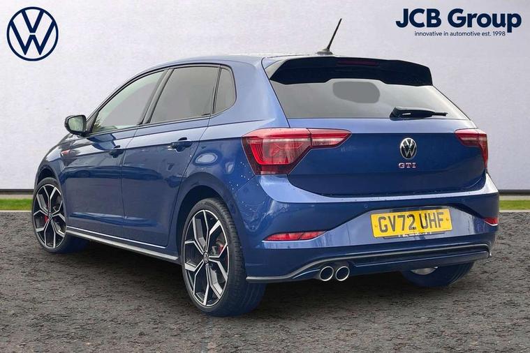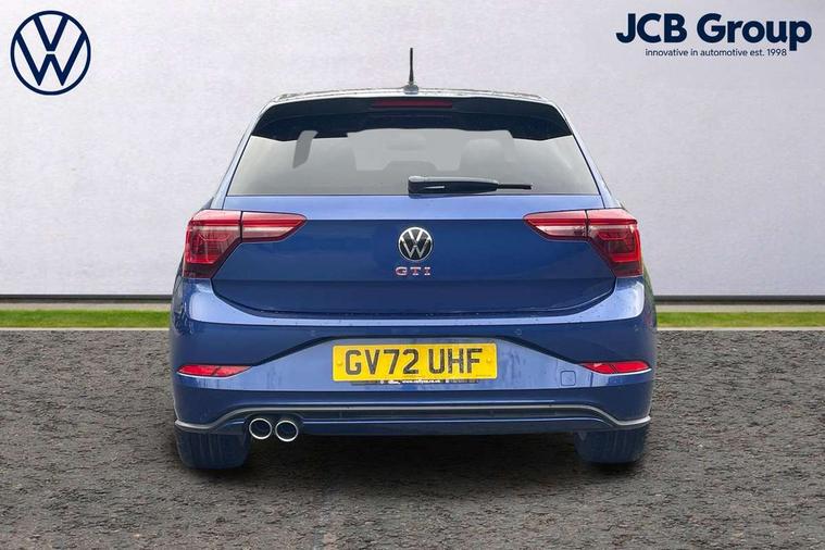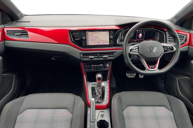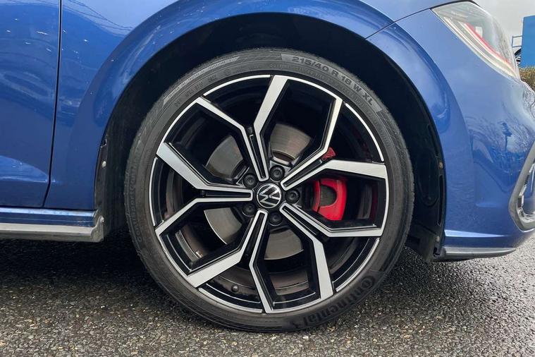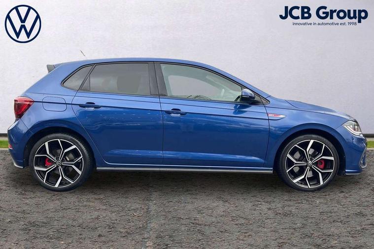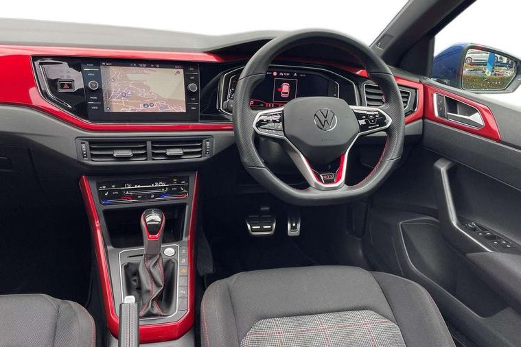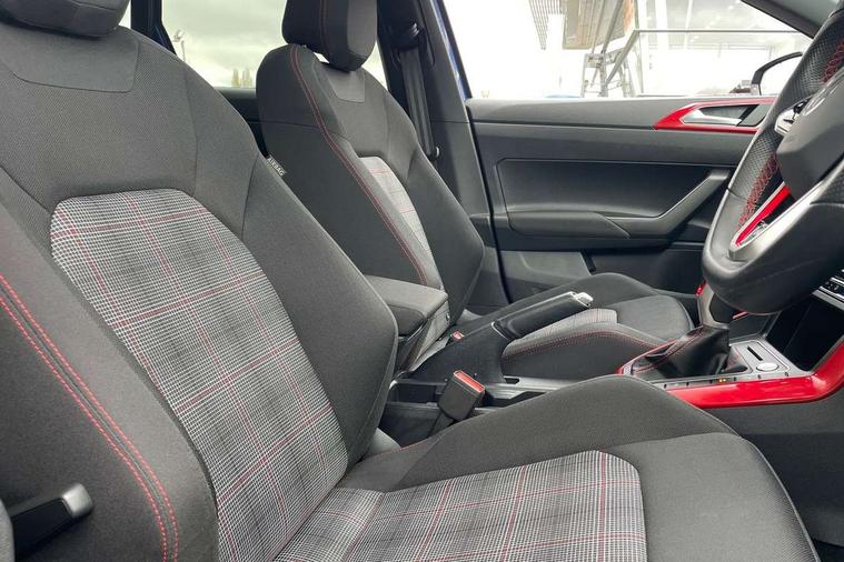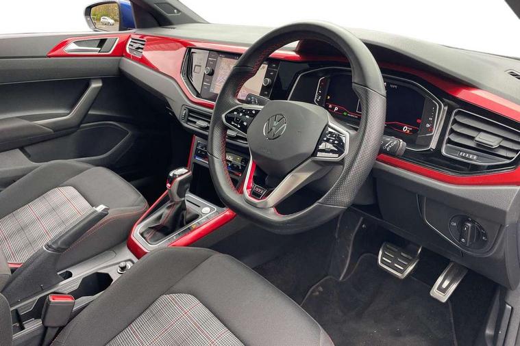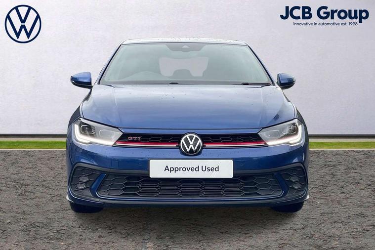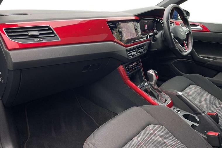 Adaptive cruise control with follow-to-stop and speed limiter, Bluetooth mobile phone interface, Digital Cockpit Pro with 10.25" Display, Driver alert system, Dynamic road sign display, Eco mode, Emergency call service, Power assisted speed sensitive steering, Preparation for We connect and We connect plus, Speedo and rev counter, electronic odometer, trip, service interval display and fuel gauge, Travel Assist - Lane keeping system and traffic jam assist, Travel assist including emergency assist, Trip computer, Warning signal and warning light for front and rear seatbelts not fastened, Washer fluid level indicator, Wireless app connect, Adaptive chassis control, Front wheel drive, Heavy duty rear axle, Rear shock absorpion sports version, Sports select suspension lowered by 15mm, Start-stop system with battery regeneration (recuperation - energy recovery during braking), DAB Digital radio, Diversity antenna for FM reception, Front and rear 6 speakers, Body colour bumpers, Body colour door handles, Electric front windows, Front scuff plates in aluminium with GTI logo, Heat insulating darkened glass in side and rear windows, Heat insulating glass windscreen, Power folding adjustable/heated exterior mirrors and front passenger exterior mirror lowering function, Rear electric windows, Rear fog light, Rear side wing doors, Rear windscreen washer and wiper with interval delay, Sport bumpers with air intakes with honeycomb structure, Third brake light, Twin chrome exhaust tailpipes, 12V power socket in centre console, 2 USB-C ports in the front, 2 USB-C charging sockets on the center console in the rear, 3 rear head restraints, 60/40 split folding rear seat and rear seat bench not split, Air care climatronic air conditoning system with active combination filter and 2-zone temperature control, Black roof lining, Chrome plated radiator grille inserts, air vent surrounds and light switch surrounds, Door and side trim panel, Driver and front passenger seat height adjustment, Driver/passenger sunvisors with illuminated vanity mirrors, Front + rear carpet mats in recycled material, Front centre armrest, Front footwell illumination, Front seat backrest storage pockets, GTI sports gearshift knob in aluminium leather, Handbrake lever handle in leather, Headliner in recycled material, Isofix child seat preparation easy-fit (for two outer rear seats, and front passenger seat) compatible with I-size, LED interior light with switch off delay and dimmer, 2 reading lights front and rear, Luggage compartment cover, Luggage compartment floor, Luggage compartment lighting, Single front passenger seat, Stainless steel pedals, Standard pedal cluster, Three spoke leather wrapped multifunction sports steering wheel with shifting paddles, IQ LED matrix headlights pack - Polo, Light and sight pack - Polo GTI, Sports suspension pack - Polo, 3 point height adj front seatbelts + pretensioners, 3x3 point rear seatbelts, ABS, Driver and front passenger airbag with front passenger airbag deactivation, Drivers and front passengers safety optimised head restraints, ESC (Electronic stability control) + EDL (Electronic Differntial lock) and ASR (Traction control), Extended and predictive pedestrian/ cyclist protection, Front and rear disc brakes with red brake calipers, Front curtain and side airbags with center airbag, Hill hold control, Manual child lock in rear doors, Two tone horn, Tyre pressure loss indicator, Alarm with interior protection, Anti-theft alarm system with interior monitoring, backup horn, and towing protection, Anti-theft wheel bolts, Electronic engine immobiliser, Chrome applications on rotary light, mirror adjustment, window regulator switches, outlet with frame in black, Low rolling resistance tyres,