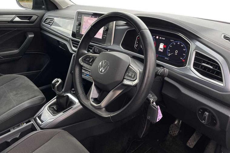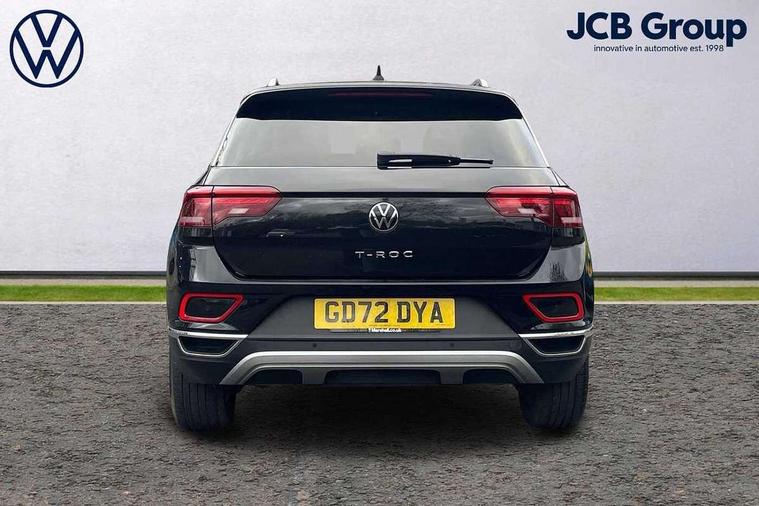 10.25" Digital cockpit pro, Bluetooth mobile phone interface, Driver alert system with fatigue detection, Driver tips and journey analysis, Emergency call service, Lane keeping system Lane Assist, Modified key software - reduce switch off time for key status change to Long no motion, Online services, Park assist including front and rear parking sensors, Service interval indicator, Tailgate/trunk lid release from outside, Think blue trainer driver tips and journey analysis, Warning sound and light for front seatbelts unfastened, Wireless app connect, Battery regeneration during braking, Start/stop function with battery regeneration, Diversity antenna for FM reception, Front and rear 6 speakers, Music playback - MP3, WMA and AAC files, Premium USB cable in choice of either Apple or Android smartphone compatibility, SD card slot, Simultaneous pairing of 2 compatible mobile devices, Title and cover art display, We Connect and We Connect Plus functionality, 3rd brake light, Auto dimming interior rear view mirror, Automatic hazard lights activation under emergency braking, Automatic headlight control with LED separate daytime running lights with coming/leaving home function, Body colour sports bumpers with silver metallic underbody fascia, Dynamic headlight range control with self adjusting whilst driving, Extended roof spoiler, Exterior mirrors aspherical on driver side, convex on front passenger side, External USB type C socket and charging sockets, Front windscreen wiper with intermittent wipe and 4 position delay, Heated rear window, LED Plus headlamps, LED rear combination lamps, LED rear number plate lights, LED tail lamp rear comination lamps, Light mode for poor weather, rain, fog or snow, Power windows with comfort operation and circuit breaker, Rain sensor, Rear exhaust tailpipe, Rear fog light on one side and reversing lights on both sides, Rear side wing doors, Rear wash/wipe with intermittent wipe setting, Remote electrically foldable door mirrors, puddle lights and reverse activated passenger's door mirror, 12V power socket in centre console, 3 rear head restraints, 3 seat bench in 2nd row, 4 load lashing points in luggage compartment, Air care climatronic air conditoning system with active combination filter and 2-zone temperature control, Chrome plated radiator grille inserts, air vent surrounds and light switch surrounds, Door and side trim panel with leatherette insert, Drawer under drivers seat, Front + rear carpet mats, Front centre armrest, Front comfort sports seats, Front cupholders x 2, Front footwell illumination, Instrument lighting, white adjustable panel illumination, Interior ambient lighting and surround lighting, Interior light delay, Isofix child seat preparation, Leather gearshift handle, LED interior light with switch off delay/dimmer and 2 front/rear LED reading lights, Load-through provision with cup holder when folded down ('Unsplit rear seat bench, split folding backrest, with centre armrest), Luggage compartment lighting, Non-folding front passenger seat backrest, Single front passenger seat, Storage compartment in left and right luggage area, Storage compartment in rear doors, Storage compartments in driver and front passenger doors, Sunvisors with illuminated vanity mirrors, Variable boot floor, height adjustable and removable, Driver assistance pack without proactive passenger protection - T-Roc, 3 point height adj front seatbelts + pretensioners, 3 point seatbelts in outer rear with ECE label, ABS, Child locks on rear doors, Driver and front passenger airbag with front passenger airbag deactivation, Driver and front passenger safety-optimised head restraints, Drivers seatbelt reminder, Electronic parking brake, Electronic Stability Control (ESC) inc EDL (Electronic Differential Lock) and ASR (Traction Control), Front and rear passengers curtain airbag system including front side airbags, Front assist with city emergency braking and pedestrian monitoring, Front seat side impact airbags, Predictive pedestrian protection, Rear disc brakes, Single tone horn, Tyre pressure loss indicator, Volkswagen roadside assistance, Alarm with interior protection, Anti-theft alarm system with interior monitoring, backup horn, and towing protection, Remote central locking with SAFELOCK, radio remote control with 2 remote control folding keys, Trims for alloy wheels,