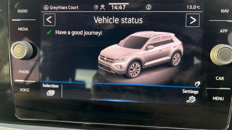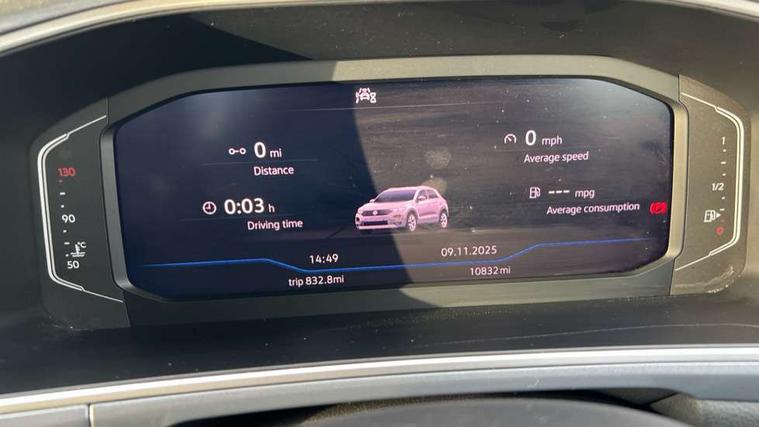 10.25" Digital cockpit pro, Advanced driver attention and drowsiness monitor, Bluetooth mobile phone interface, Emergency call service, Lane keeping system Lane Assist, Modified key software - reduce switch off time for key status change to Long no motion, Online services, Park assist including front and rear parking sensors, Service interval indicator, Tailgate/trunk lid release from outside, Think blue trainer driver tips and journey analysis, Warning sound and light for front seatbelts unfastened, Wireless app connect, Battery regeneration during braking, Start/stop function with battery regeneration, Diversity antenna for FM reception, Music playback - MP3, WMA and AAC files, Premium USB cable in choice of either Apple or Android smartphone compatibility, SD card slot, Simultaneous pairing of 2 compatible mobile devices, Title and cover art display, We Connect and We Connect Plus functionality, 3rd brake light, Auto dimming interior rear view mirror, Automatic hazard lights activation under emergency braking, Automatic headlight control with LED separate daytime running lights with coming/leaving home function, Body colour sports bumpers with silver metallic underbody fascia, Dynamic headlight range control with self adjusting whilst driving, Electrically adjustable and heated door mirrors, Extended roof spoiler, Exterior mirrors aspherical on driver side, convex on front passenger side, External USB type C socket and charging sockets, Front windscreen wiper with intermittent wipe and 4 position delay, Heated rear window, LED rear combination lamps, LED rear number plate lights, Light mode for poor weather, rain, fog or snow, Power windows with comfort operation and circuit breaker, Rain sensor, Rear exhaust tailpipe, Rear fog light on one side and reversing lights on both sides, Rear side wing doors, Rear wash/wipe with intermittent wipe setting, Remote electrically foldable door mirrors, puddle lights and reverse activated passenger's door mirror, 12V power socket in centre console, 3 rear head restraints, 3 seat bench in 2nd row, 4 load lashing points in luggage compartment, Air care climatronic air conditoning system with active combination filter and 2-zone temperature control, Chrome plated radiator grille inserts, air vent surrounds and light switch surrounds, Door and side trim panel with leatherette insert, Drawer under drivers seat, Front + rear carpet mats, Front centre armrest, Front comfort sports seats, Front cupholders x 2, Front footwell illumination, Front seat back storage pockets, Glove compartment door with light, Instrument lighting, white adjustable panel illumination, Interior ambient lighting and surround lighting, Interior light delay, Isofix child seat preparation, Leather gearshift handle, LED interior light with switch off delay/dimmer and 2 front/rear LED reading lights, Load-through provision with cup holder when folded down ('Unsplit rear seat bench, split folding backrest, with centre armrest), Luggage compartment lighting, Non-folding front passenger seat backrest, Single front passenger seat, Storage compartment in left and right luggage area, Storage compartment in rear doors, Storage compartments in driver and front passenger doors, Sunvisors with illuminated vanity mirrors, Variable boot floor, height adjustable and removable, Driver assistance pack without proactive passenger protection - T-Roc, 3 point height adj front seatbelts + pretensioners, 3 point seatbelts in outer rear with ECE label, ABS, Child locks on rear doors, City emergency braking and pedestrian monitoring, Driver and front passenger airbag with front passenger airbag deactivation, Driver and front passenger safety-optimised head restraints, Drivers seatbelt reminder, Electronic parking brake, Electronic Stability Control (ESC) inc EDL (Electronic Differential Lock) and ASR (Traction Control), Front and rear passengers curtain airbag system including front side airbags, Predictive pedestrian protection, Rear disc brakes, Two tone horn, Tyre pressure loss indicator, Volkswagen roadside assistance, Anti-theft alarm system with interior monitoring, backup horn, and towing protection, Remote central locking with SAFELOCK, radio remote control with 2 remote control folding keys, Trims for alloy wheels,