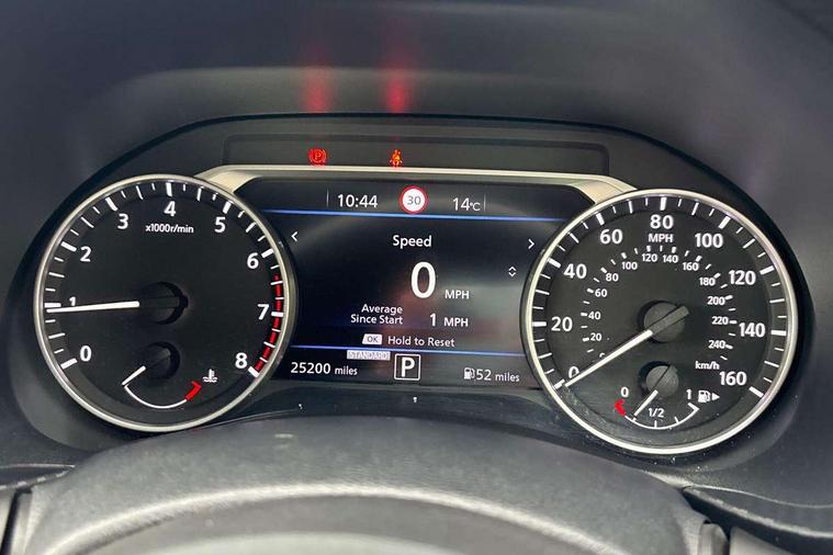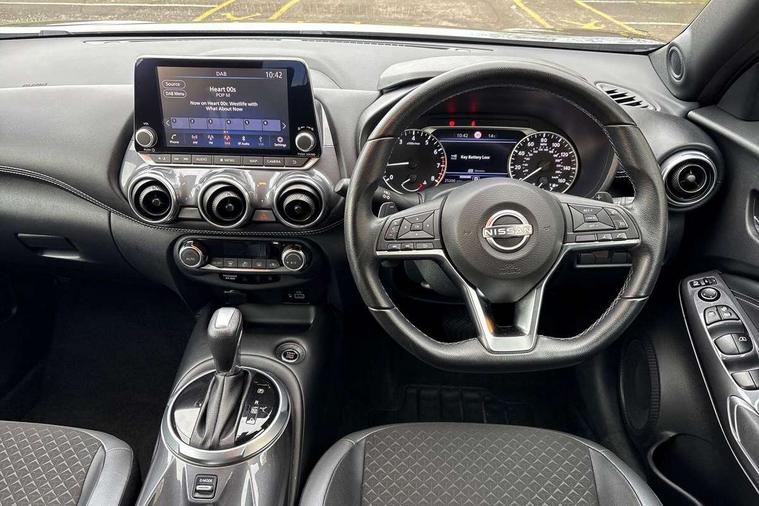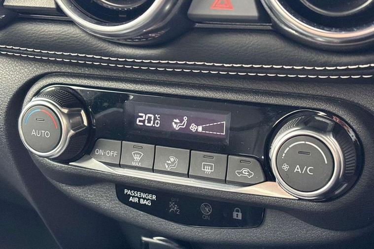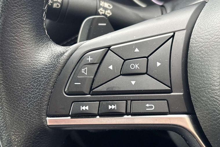 7" full colour TFT screen combimeter, Apple CarPlay and Google Android auto, Drive modes select (Eco, normal and sport), Emergency and breakdown call, Front parking sensor, Idle start/stop system, Intelligent lane intervention, Lane departure warning system, Nissan connect 8" touch screen entertainment system, Nissan connect nav with TomTom traffic, Nissan connect services and Wifi connection, Outside temperature sensor, Power Steering, Rear parking sensor, Traffic sign recognition, Trip computer, Voice recognition, Gasoline particulate filter, 6 speakers, Bluetooth system, USB, Aux-in and 12V socket, DAB Digital radio, Rear console USB port, Auto dimming interior rear view mirror, Auto headlights, Automatic hazard signal with emergency stop signal, Body colour bumpers, Body colour door handles, Electrically adjustable door mirrors with integrated indicators, Follow me home headlights, Front and rear electric window with one touch driver window, Heated and auto folding door mirrors, High beam assist, LED daytime running lights, LED headlamps, LED rear fog lamp, LED rear lamps, Rain sensor windscreen wipers, Rear privacy glass, Rear side wing doors, Rear wiper, Three blink turn signal, 3 height adjustable rear headrests, 3 seat bench in 2nd row, 60/40 split folding rear seat, Automatic climate control, Card holder on driver sunvisor, Cloth upholstery with black and metallic grey syntech leather inserts, Driver and passenger sliding and reclining seats, Driver side rear coat hanger, Driver/passenger sunvisors and vanity mirrors, Front and rear cabin lights, Front armrest, Front door pockets with bottle holders, Front head restraints, Front/rear passenger grab handles, Grey synthetic leather kneepad, Height adjustable driver's seat, Internal chrome door handles, Leather gearshift knob, Leather steering wheel, Luggage board, Luggage space lighting, Monoform sporty seats, Multifunction steering wheel, Rear door bottle holders, Single front passenger seat, Steering wheel mounted gearshift paddles, Telescopic steering wheel adjustment, Two cupholders in front centre console, Two rear isofix child seat anchorage points with top tether, Welcome light and console tray ambient lighting, ABS with EBD and brake assist, Active ride control, Active Trace Control, Driver and passenger airbags, Driver and passenger side airbags, Electric handbrake with auto hold function, Electronic Stability Programme (ESP), Front and rear curtain airbags, Height adjustable seatbelts, Hill start assist, Intelligent emergency braking with pedestrian and cyclist recognition, Rear door child safety locks, Seatbelt reminder for driver/front passenger and rear seats, Single tone horn, Three 3 point rear seatbelts, Traction control, Tyre pressure monitoring system, VDC Dynamic Vehicle Control, Ventilated rear brake discs, Alarm, Immobiliser, Intelligent key and start push button with walk away lock and approach unlock functions, Remote central locking,