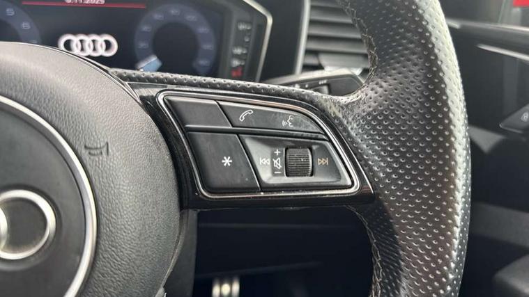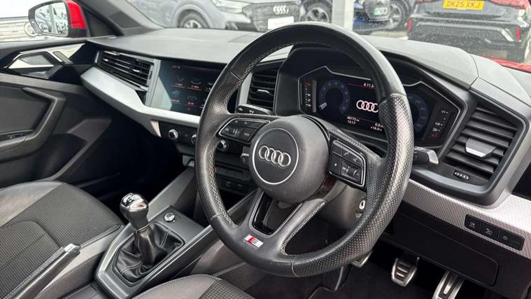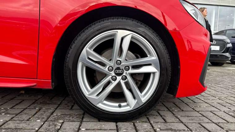 10.25" Digital instrument cluster display classis style instrument dials + speed, odometer, time, outside temperature, telephone menu + fuel level warning, Audi connect safety emergency and service including E-call, Audi drive select - power steering assistance + engine, Audi smartphone interface with connect compatible smartphone via USB directly MMI display + Nav, music, third party apps controlled via MMI controller, Automatic start/stop system, Bluetooth interface, Cruise control, Driver's information system, Electromechanical power steering, Lane departure warning system, Service interval indicator, Speed limiter, Voice control system, Washer fluid level indicator, Sports suspension, 1 x SDXC card reader, 2 x USB type C connection points, DAB Digital radio, MMI radio plus with 8.8" colour MMI display screen and MMI touch, Auto dimming rear view mirror, Body coloured door mirrors, Door sills with aluminium inlays and S Line logo, Electric front and rear windows, Electrically adjustable, heated, folding door mirrors with integrated LED side indicator, Front side air inlets in grained matt black and C frame in titanium black, Heat insulating glass windscreen and side windows, Heated rear windscreen, LED headlights with LED rear lights + dynamic rear indicators + headlight adjustment and high beam, turning light + LED daytime running lights, Radiator grille and rear diffuser in matt titanium black, Radiator protective grille frame in matt aluminium silver, Rain and light sensors, Rear fog lights, Rear wiper, S line badges on front wings, Side front spoiler lips in grained matt black, 12V socket in centre console with two cup holders, 3 rear seats with headrests, 40:60 Split folding rear seat or folded fully, Black cloth headlining, Driver and passenger seat with manual height adjust with forward and backwards adjustment, Front and rear black floor mats with contrast stitching in fine silver, Front head restraints, Height and reach adjustable steering wheel, ISOFIX child seat mounting for front passenger and outer rear seats including top tether attachment point of outer rear seats, Leather gear knob with aluminium trim, Luggage compartment light with front and rear reading lights, Manually adjustable lumbar support in front seats, Stainless steel pedals, LED interior lighting pack - A1, Luggage compartment pack - A1, S line exterior styling pack - A1 Sportback, 3x3 point rear seatbelts, Audi pre-sense front with pedestrain and cyclist recognition, Brake assist function, Driver and front passenger airbag with front side and head airbags, Electronic Stability Control including ABS, EBD, ASR and EDL, Front and rear seatbelt reminder, Front passenger airbag deactivation switch, Hill hold assist, Seatbelt height adjustment for front seats, Seatbelt monitoring, Tyre pressure warning light, Warning triangle and first aid kit, Anti theft alarm, Anti theft wheel bolts and loose wheel warning, Immobiliser, Remote central locking with 2 foldaway keys, Aluminium trim for control switches, air vents and digital instrument cluster, Silver grey inlays polygon structure in diamond paint finish, Structured grey accent areas including air vents, door handle recesses and centre console in quartz paint finish,