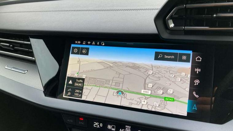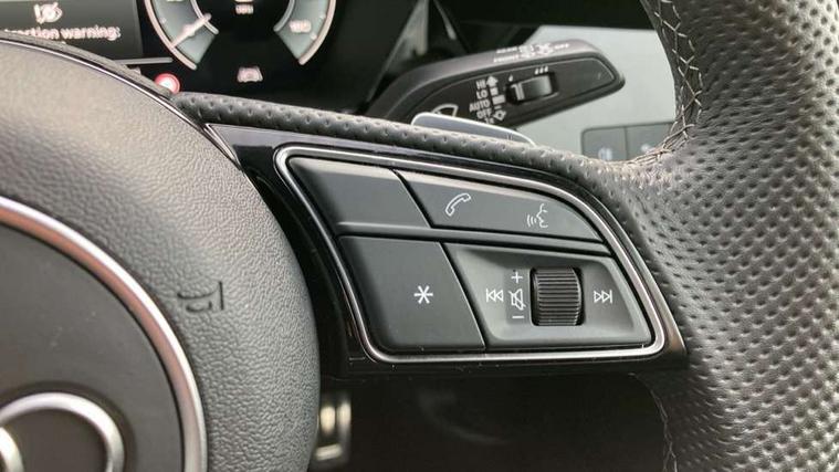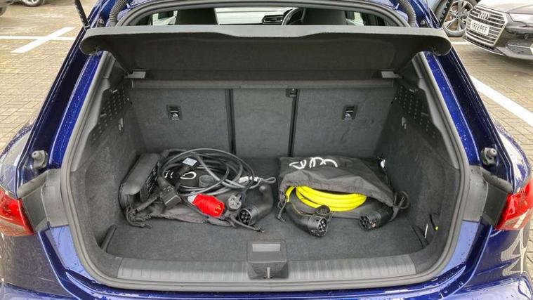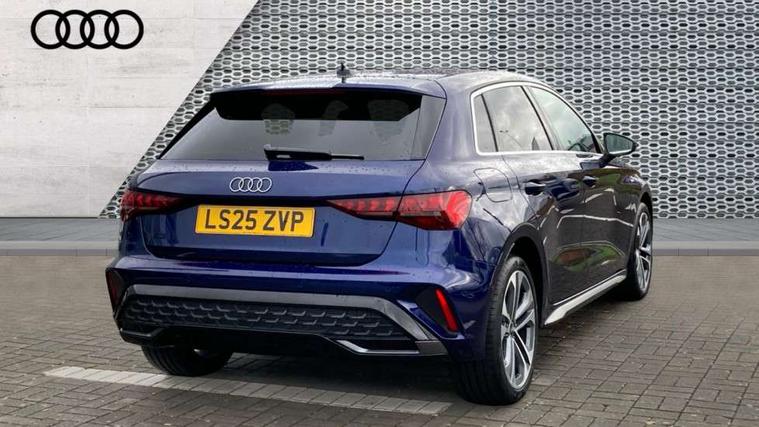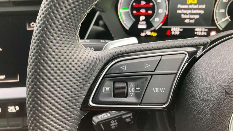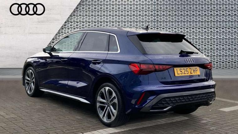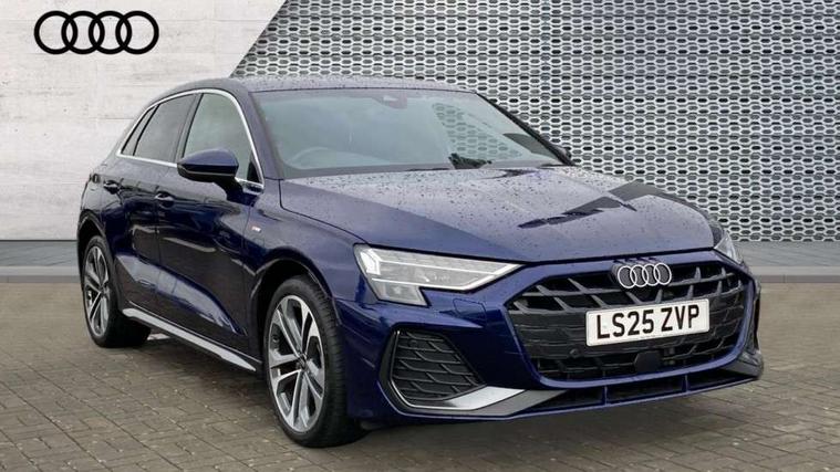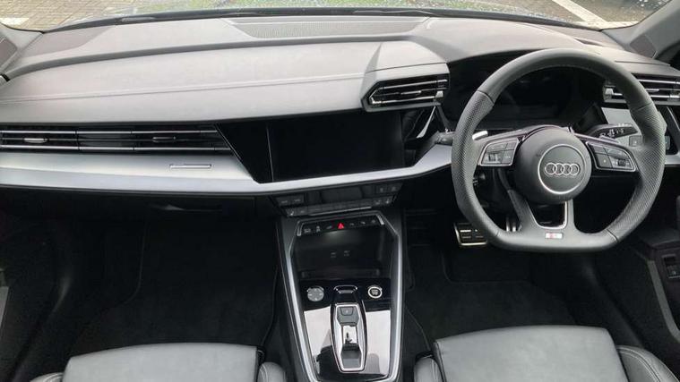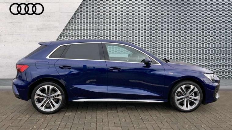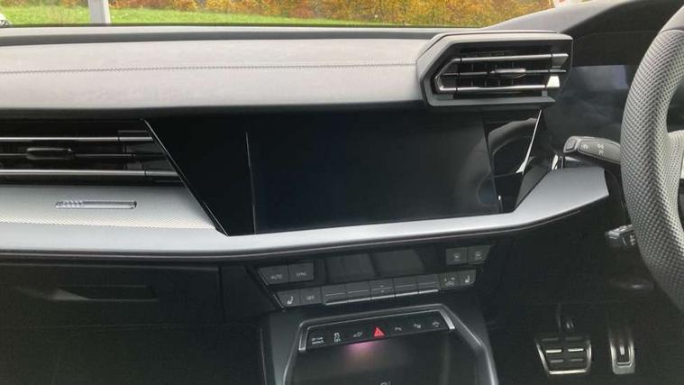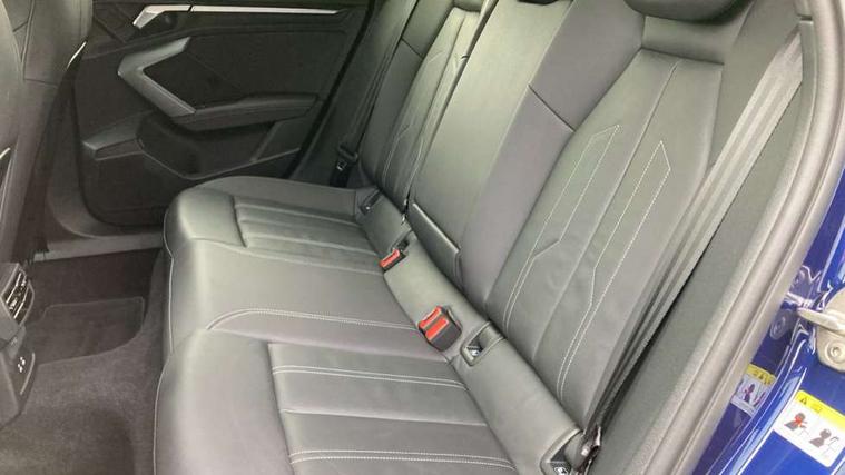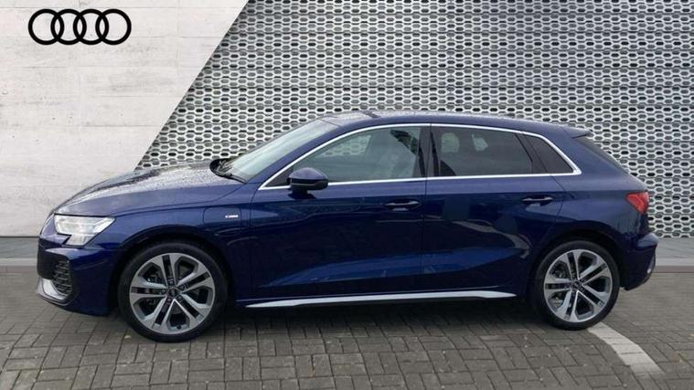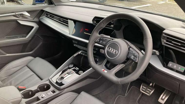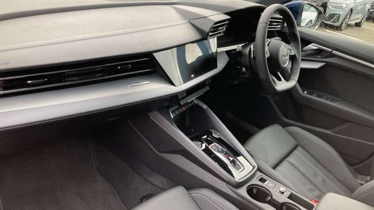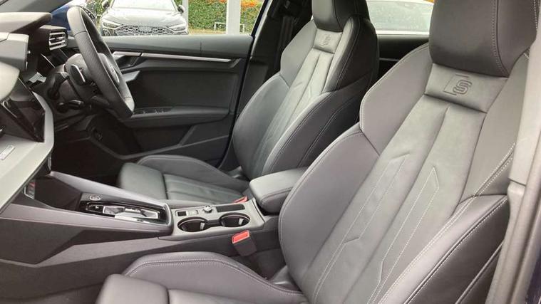 Adjustable speed limiter, Audi drive select, Audi smartphone interface with app store includes wireless Apple carplay, Android auto and Amazon alexa integration, Audi virtual cockpit plus - 12.3" full HD resolution dynamic digital instrument cluster, Automatic start/stop system with recuperation, Bluetooth interface, Camera based traffic sign recognition, Collision avoidance assistant, Cruise control, Distraction and Fatigue warning, e-Call (emergency call), Electromechanical power speed sensitive steering, Lane departure warning system, MMI Navigation Plus with high resolution 10.1" colour touch screen display, Park Assist with parking system Plus, Service indicator, Trip computer, Voice control system with natural language interaction, 3 pin 10 amp domestic charging cable, CCS socket for DC charging, Charging cable for public charging, mode 3 (type 2), up to 22 kW (AC), Compact charging system, Industrial connector CEE 32 A, 230 V, length 1.6 m, Standard suspension, Type 2 socket for AC charging, Audi Phonebox light with wireless charging, Audi sound system - 10 loudspeakers including centre loudspeaker and subwoofer, DAB Digital radio, USB ports with charging function in the rear, Acoustic glass windscreen, Aluminium window trim, Auto dimming frameless rear view mirror, Body colour exterior mirrors, Chrome exhaust tailpipes, Electrically adjustable/heated/folding/auto dimming door mirrors with integrated LED indications + kerb view function for passenger side, Exterior model badging, Front and rear side air inlets in grained matt black with dark liquid chrome frame, Front electric windows, Front radiator grill in high gloss dark chrome, Heat insulating glass windscreen, Illuminated door sills with aluminium inserts at the front with S logo, LED 3rd brake light, LED daytime running lights, LED headlights with LED rear lights and dynamic rear indicators, Light and rain sensors, Privacy glass - dark tinted rear window, rear door and side windows, Rear diffuser and grill in grained matt black with inlay in dark liquid chrome, Rear electric windows, Rear side wing doors, Rear wiper, S line bumpers, S roof spoiler, Side S line emblems on front wings, Side sill trim in dark liquid chrome, 12V socket and storage compartment in front centre console, 3 seat bench in 2nd row, 3 spoke flat bottomed leather multifunction sport steering wheel with gear shift paddles, 3-zone deluxe automatic air conditioning, 4 way electrically adjustable lumbar support for driver and front passenger, 40/20/40 split folding rear seat bench, Black cloth headlining, Convenience auxiliary air conditioning, Front and rear centre armrest in artificial leather, Front and rear centre armrest in artificial leather with contrasting stitching on armrests and instrument panel, Front and rear headrests, Front/rear floor mats, Heated front seats, Height and reach adjustable steering wheel, Manual boot compartment lid, Manually adjustable front seats, Rear cup holders, S badging on the steering wheel, Seat side bolsters, Single front passenger seat, Stainless steel pedals and front footrest in black, Twin leather upholstery with front sports seats S embossed logo, Aluminium interior elements pack - A3 Sportback, Multi-coloured LED interior lighting package - A3, 3x3 point rear seat belts, Acoustic vehicle alerting system, Driver and front passenger airbag with passenger airbag deactivation, Electronic Stabilisation Control (ESC) including ABS, ASR and EDL, First aid kit with warning triangle and 2 safety vests, Front side airbags with head airbags and interaction airbag, Hill hold assist, Pre-sense front with pedestrian and cyclist detection, Seatbelt monitoring, Tyre pressure loss indicator, Anti theft alarm, Anti-theft wheel bolts, Electronically operated child locks, Immobiliser, Remote central locking with safelock, Dash & door Inlay in dark aluminium Spectrum, Tyre repair kit,