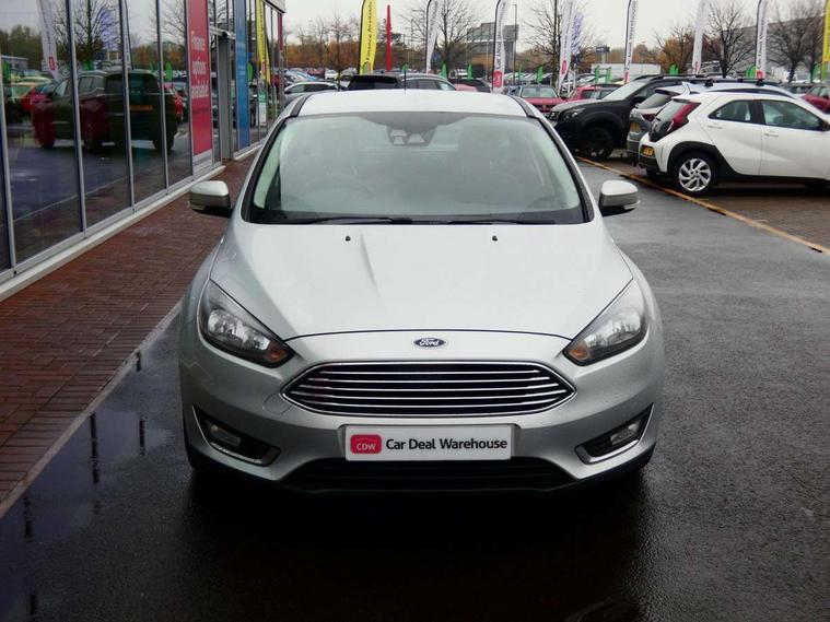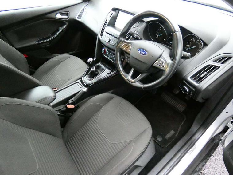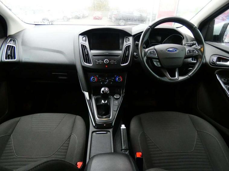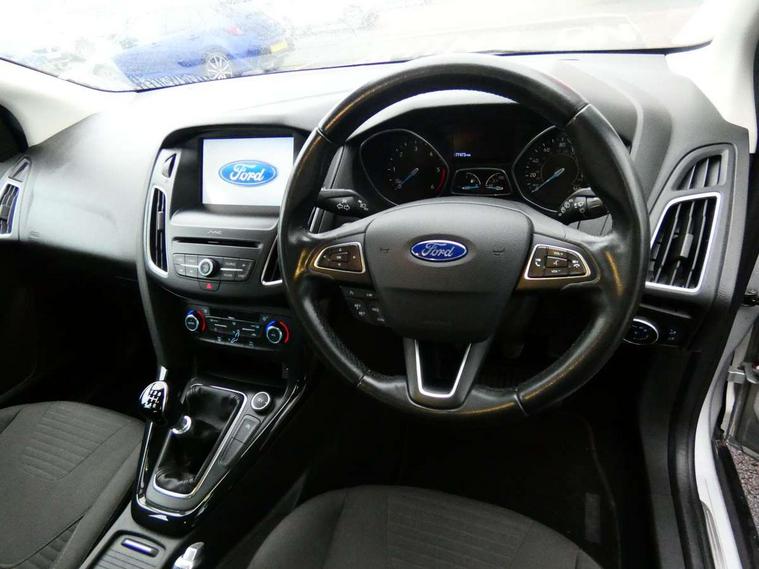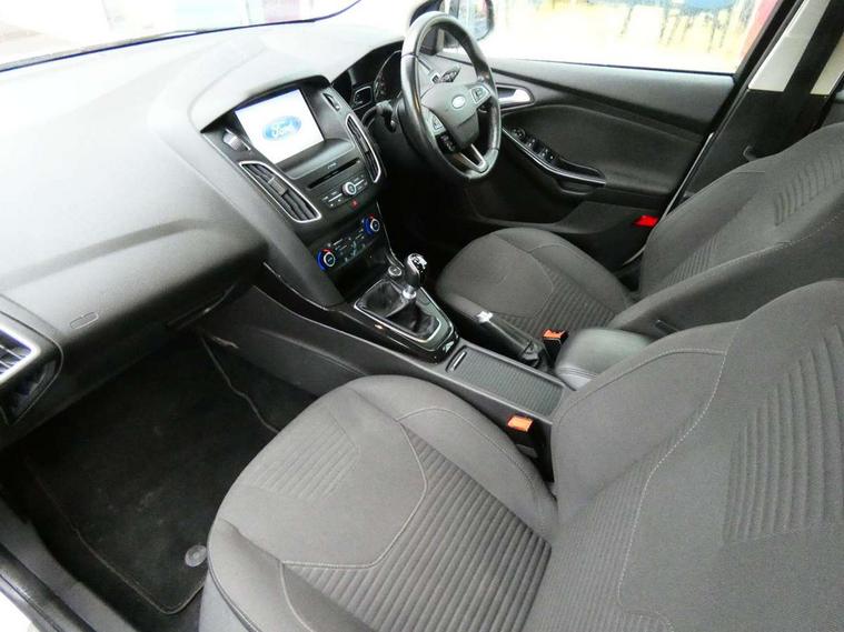 Digital clock, Easy fuel capless refuelling system, Eco mode, Electric boot release, PAS, Rear parking sensor, TFT cluster screen, Trip computer, Diesel particulate filter, 6 speakers, Aux input, Steering column with mounted audio controls, SYNC 2 DAB radio/CD, 8" colour touch screen, emergency assistance, Bluetooth connection, advanced voice control, USB connection, 'Quickclear' heated windscreen/heated washer jets, Auto dimming rear view mirror, Automatic headlights, Automatic rain sensing wipers, Body colour bumpers, Body colour door handles, Body colour door mirrors, Body colour rear spoiler, Chrome finish on upper door line, Chrome radiator grille and surround, Electric adjustable heated door mirrors, Front fog lights, Front variable intermittent wipers with electric wash, Heated rear window, Tailgate wash/wipe, 3 spoke leather steering wheel, 60/40 split back and cushion rear seats with 2 height adjustable headrests, Centre console storage box/armrest, Driver's seat with adjustable lumbar support, Dual electronic automatic temperature control air conditioning - CFC-free, Height adjustable front headrests, Isofix child seat preparation, Reach + rake adjustable steering column, Sports style front seats, ABS+Electronic Brake force Distribution, Active city stop, Driver airbag, ESP with traction control + emergency brake assist, Front inertia reel height adjustable seatbelts with pre-tensioners, Front passenger airbag, Front side airbags, Hill start assist, Side curtain airbags, Three rear inertia reel lap/diagonal seatbelts, Torque vectoring brake, Tyre pressure monitoring system, Immobiliser-Passive Anti-Theft System (PATS), Key free system, MyKey system, Remote central double locking, Thatcham Cat.1 alarm,