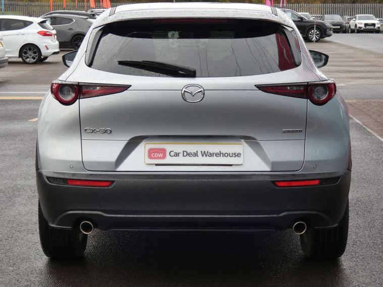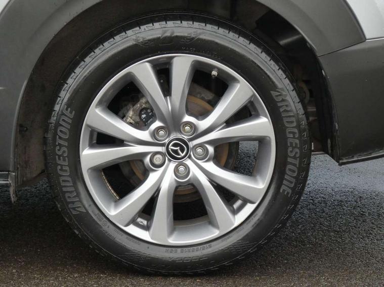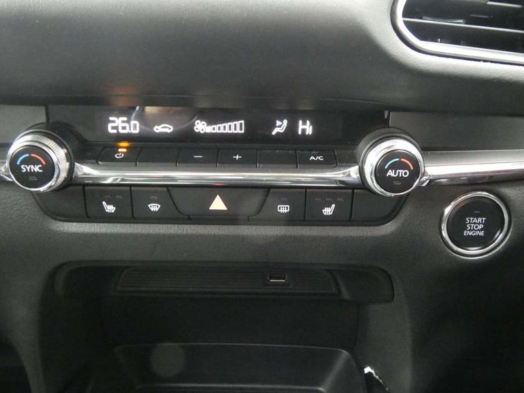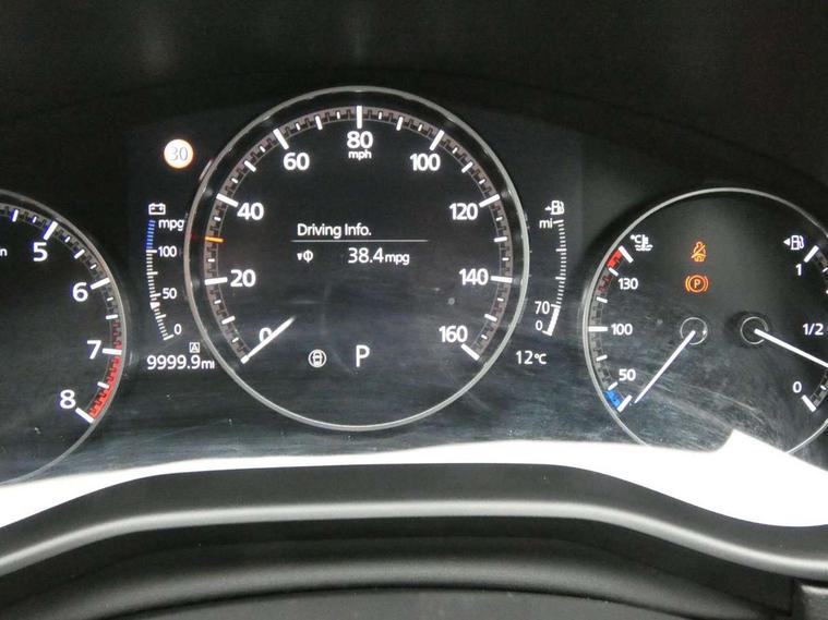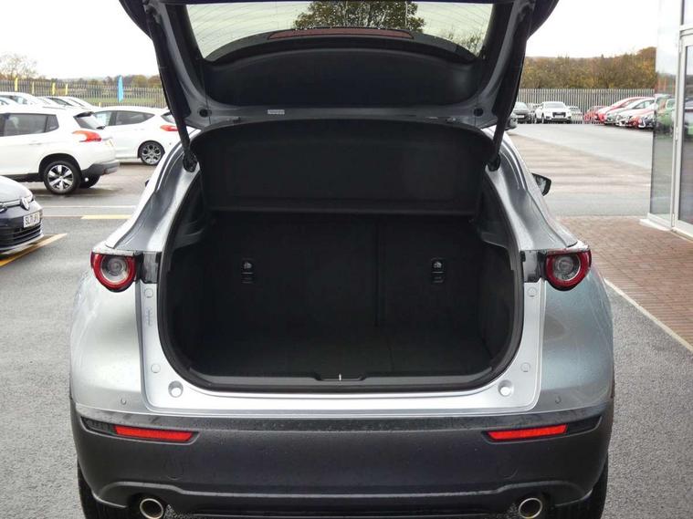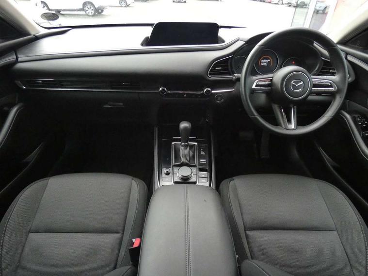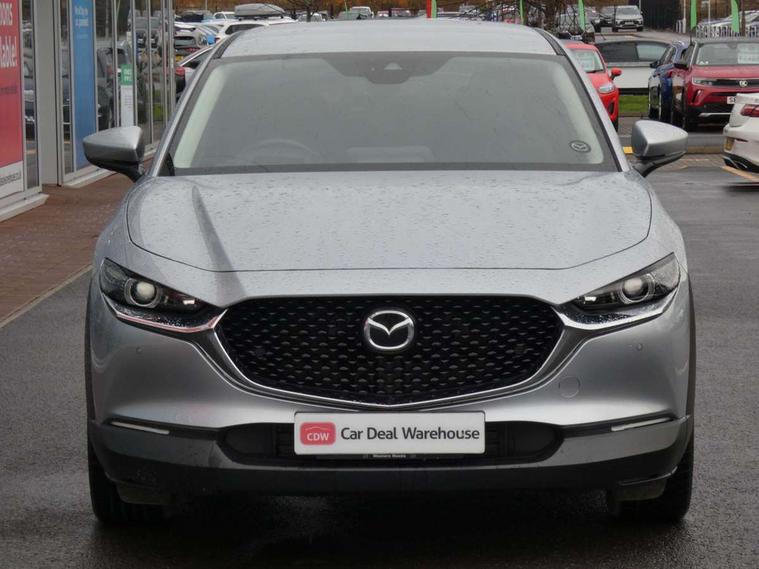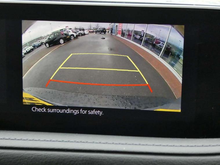 7" TFT Colour driver instrument panel display, 8.8" Colour centre touch screen display with Mazda Connect infotainment, Adaptive cruise control (Mazda radar cruise control) features stop and go, Apple car play/Android Auto, Blind spot monitoring with rear cross traffic alert, Drive mode selector, Driver attention alert system, E-call with GPS, Emergency stop signalling system, Engine start/stop button, Front and rear parking sensors, Integrated bluetooth, Integrated Mazda navigation system, Intelligent speed assist, Lane keep assist system (LAS) with Lane departure warning system (LDWS), PAS, Power lift gate, Reversing camera, Service indicator, Trip computer, Window projected colour active driving display (head up display) with traffic sign recognition, Cylinder Deactivation, i-stop, 2 USB charging ports, AM / FM / DAB radio with 8 speakers, Multimedia Commander including separate volume dial, Steering wheel mounted audio/bluetooth controls, Adaptive LED Headlights, Auto dimming driver's door mirror, B-pillar and C-pillar garnishes in piano black finish, Body coloured, electrically adjustable, heated auto power folding door mirrors with integrated indicators, Coming/leaving home lighting function, Dual chrome exhaust, Dusk sensing headlights, Electric front/rear windows with one touch auto up/down, Frameless auto dimming interior rear view mirror, Front grille in piano black finish, Front kodo turn signal, High beam assist, Piano black rear roof spoiler, Privacy glass (rear side windows and rear screen), Rain sensing front wipers with adjustable speed and intermittent wipe, Rear fog lights, Rear wiper, Signature front LED daytime running lights, Signature LED rear combination lights with LED rear turn lights, 60/40 split fold down rear seats, Chrome centre bezel steering wheel, Chrome horn pad ring, Cloth door panel inserts, Cloth upholstery with interior accents, Dashboard, door cards and front centre armrest in navy blue cloth, Driver and front passenger visors with covered vanity mirror and driver ticket holder, Driver seat manual slide, recline and height adjust, Driver, Front passenger and two rear grab handles with coathooks, Dual zone climate control air conditioning with rear air vents, Electrical power outlet, Folding rear centre armrest with two cup holders, Front and rear (x3) head restraints, Front and rear door pockets, Front and rear LED lighting, Front armrest, Front centre storage with two cupholders, Front passengers seat manual slide, recline and height adjustment, Glove box handle with chrome surround, Glovebox illumination, Heated front seats with 3 stage setting, ISOFIX child seat anchorage points attached on outer rear seats, Leather wrapped gear shift knob, Leather wrapped steering wheel with telescopic and tilt adjustment, Luggage compartment light, Paddle shift controls, Rear passenger seat map pockets, Roof mounted sunglasses holder, 3 point ELR front seat belts x2 with pretensioners, 3 point ELR rear seat belts, Anti-lock braking system (ABS), Driver/Front Passenger airbags, Drivers knee airbag, DSC - Dynamic Stability Control, Electronic parking brake with auto disengage function and auto hold function, Front and rear curtain airbags, Front passenger airbag cut-off switch, Front side airbags, Front smart city brake support, G-Vectoring control plus, Hill launch assist, Mild Hybrid system with regenerative braking, Seatbelt reminder for driver/front passenger and rear seats, Traction control system (TCS), Tyre pressure monitoring system (TPMS), Remote central locking with deadlocking and automatic door lock when driving, Smart keyless entry, Thatcham accredited alarm and immobiliser, 18" Silver metallic alloy wheels, Emergency tyre repair kit,