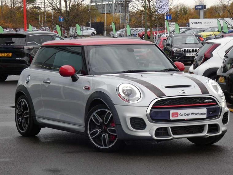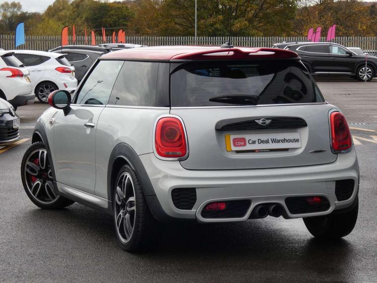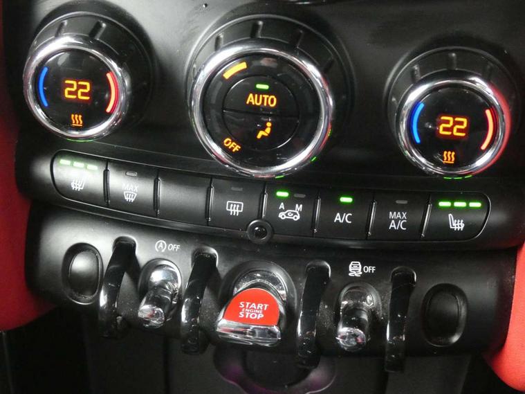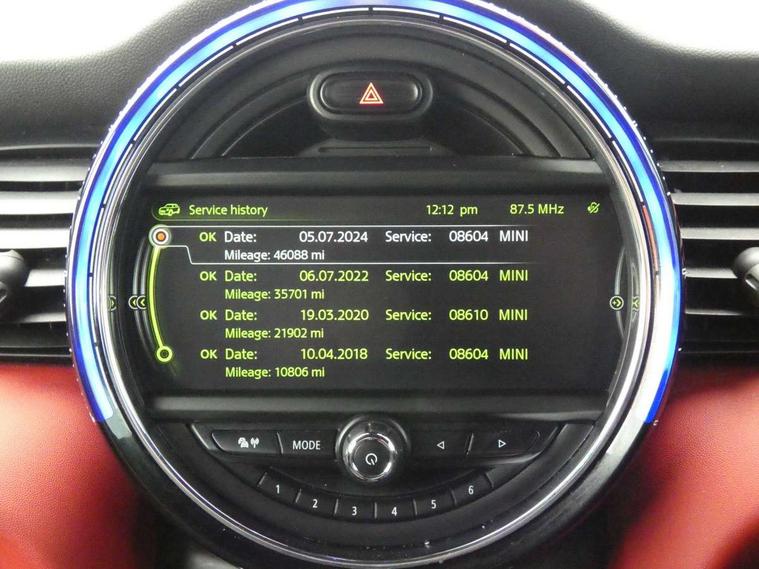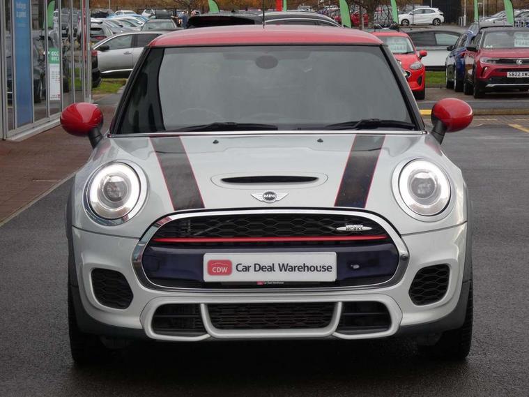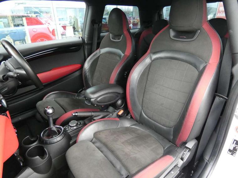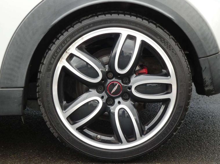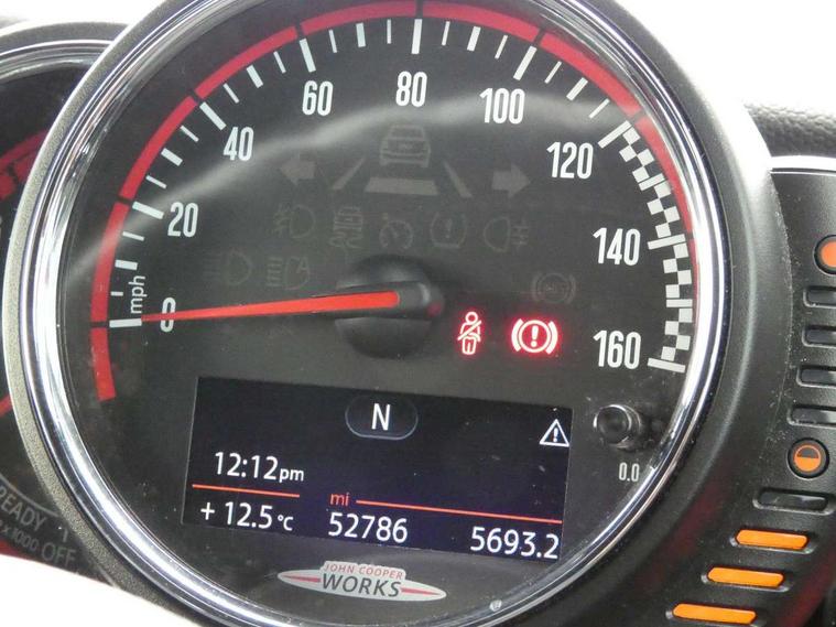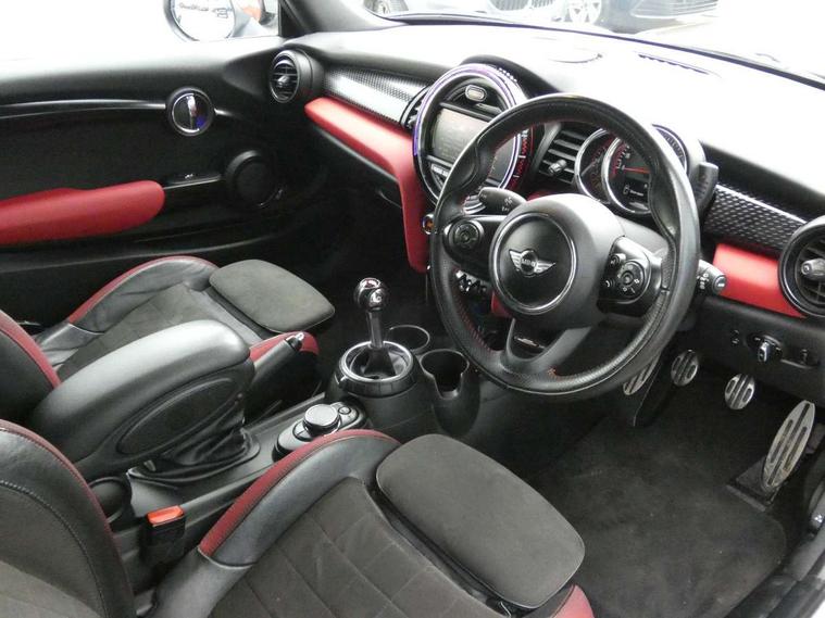 Acoustic seat-belt warning, Brake fluid level warning light, Brake pad wear indicator warning light, DTC - Dynamic traction control, Exterior temperature gauge, Intelligent emergency call, MINI Driving Modes - centre toggle switch to control driving setting (sport, mid and green), MINI TeleServices, Oil level indicator, On board computer, Push button starter, Service interval indicator, Servotronic PAS, Electronic differential lock, Performance Control, Auxiliary input socket, DAB digital radio module, 2 speed wipers+intermittent wipe, Anti dazzle mirror, Anti trapping/one touch open close front windows, Body colour scoop integrated into engine- compartment lid, Body coloured bumpers, Chili red grille bar, Chrome bezels around rear lights and headlights, Chrome door handles, Chrome plated fuel cap, Chrome plated trim on bottom edge of window, Chrome strip on lower grille, Electric front windows, Electrically adjustable door mirrors, Extended wheel arches, Follow me home headlights, Green tinted heat insulating glass, Heated door mirrors/heated windscreen washers, Heated rear window with auto timer, High gloss black tailgate, Honeycomb radiator grille, John Cooper Works roof spoiler, Metal look door sill finishers, Rear apron, Rear wiper, Side scuttles, Twin chromed exhaust pipes, White indicator lights, 2 rear head restraints, 4 boot load lashing points, 6 way manually adjustable passenger seat, 6-way manually adjustable driver's seat, Active carbon filter, Air recirculation system, Anthracite headlining, Auxiliary socket in centre console storage compartment, Centre console storage, Driver's seat height adjuster, Driver/passenger sunvisors, Easy entry seats, Front and rear cupholders, Front head restraints, Front interior light, Front passenger grab handle, Front seat backrest storage nets, Front sports seats, Gear/selector and handbrake in artificial leather, Internal chrome door handles, Isofix child seat preparation, Luggage compartment lighting, Multifunction steering wheel, Passenger seat height adjuster, Reach + rake adjustable steering column, Rear grab handles, Rear storage trays, Split folding rear seats, Storage compartments in doors, Toolkit in luggage compartment, Vanity mirrors, 3 point seatbelts, ABS/EBD, ASC+T, Brake calipers in red, Cornering brake control (CBC), Crash Sensor - activates hazard/interior lighting + unlocks doors, Driver and passenger airbags, Driver/front passenger side airbags, DSC - Dynamic Stability Control, Fuel cut off safety device, Head airbags, Hill start assist, Passenger airbag deactivation system, Seatbelt pretensioners, Tyre pressure warning, Ventilated front disc brakes, Drive away door locking, Locking wheel bolts, Remote central locking/doors+fuel cap+tailgate, Second remote key, Thatcham category 1 alarm + immobiliser,