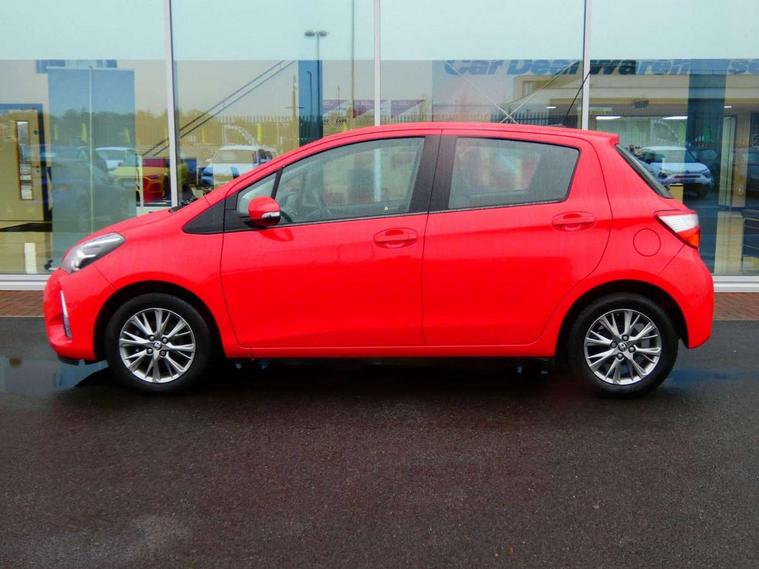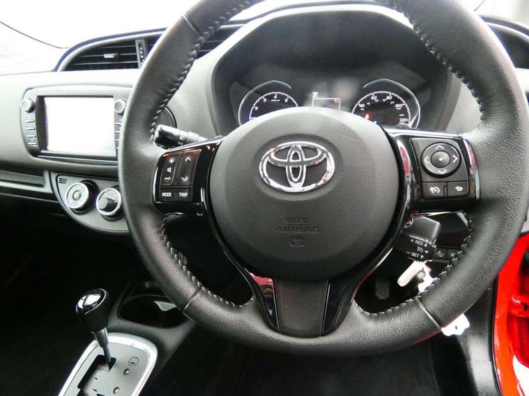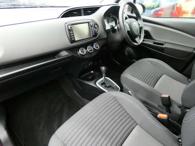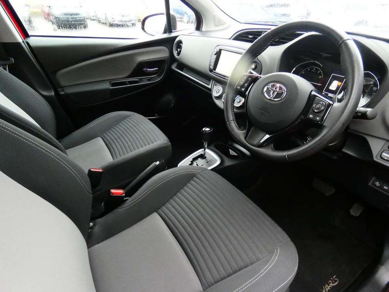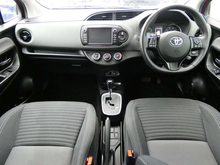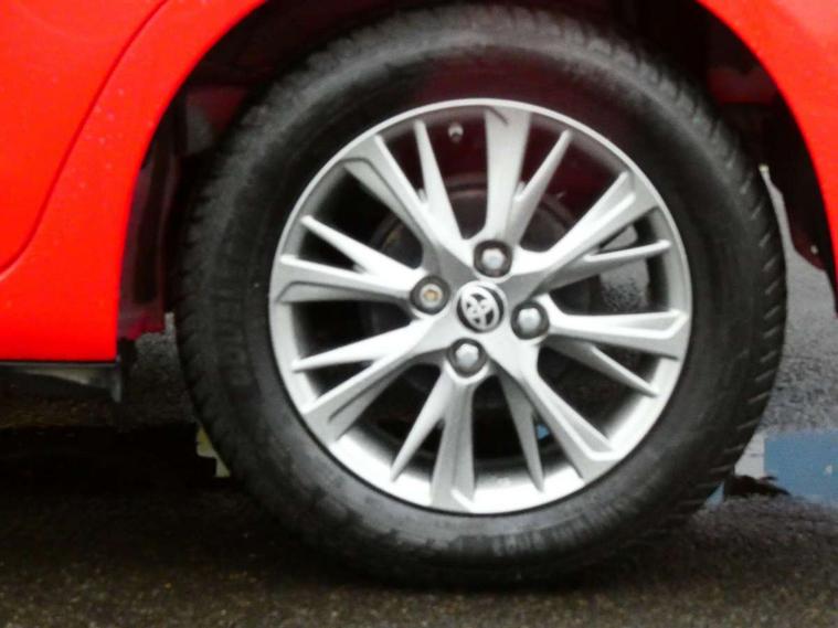 4.2" coloured LED TFT multi information display, Analogue speedometer, Analogue tachometer, Auto speed limiter, Bluetooth connectivity, Cruise control, External temperature gauge, Fuel indicator with low level warning, Key reminder warning, Lights on warning, Multi information display switches on steering wheel, Power Steering, Reversing camera, Trip computer, 6 speakers, Auxiliary input socket, Steering wheel mounted audio/telephone switches, Toyota Touch 2 with DAB, USB connection, Auto up and down function on drivers window, Automatic wipers, Black lower front grille, Body colour bumpers, Body colour door handles, Body coloured door mirrors, Daytime running lights, Electric adjustable heated door mirrors, Electric front windows, Follow me home headlights, Front fog lights, Headlight cut-off reminder, LED High mounted stop lamp, Manual dimming rear view mirror, Projector headlights, Rain sensitive windscreen wipers, Rear combination lights bulb type, Rear window defogger, Rear wiper, Turning signal integrated indicators in door mirrors, 12v power outlet - front, 3 adjustable rear headrests, 3 spoke leather steering wheel, 60/40 split folding rear seat, Active headrests, Boot light, Data Communication Module (DCM) connected services, Driver and front passenger personal light, Driver and front passenger Whiplash Injury Lessening seats, Driver/passenger vanity mirrors with covers, Front and rear cup holders, Front map reading lights, Front seats with lumbar support, Glovebox, Height adjustable driver's seat, Height adjustable front head restraints, Illuminated entry system, Isofix seat fixing, Leather gearshift, Manual air conditioning, Map pockets on the backs of the front seats, Pollen filter, Removable rear parcel shelf, Sliding front seats, Soft touch inner door garnish, Spirit fabric upholstery, Tilt/telescopic steering column, 3 point seatbelts on all rear seats, ABS+EBD+Brake assist, Collision mitigation braking system, Emergency brake light system (EBS), Front passenger airbag on/off switch, Front seatbelt reminder, Height adjustable front seatbelts with pre-tensioners and load limiters, Hill start assist control (HAC), Rear child proof door locks, Rear seat belt reminder, Road sign information display, Seatbelt warning lamp and buzzer, Supplemental restraint system (SRS) airbags - 7 airbags including driver, front passenger, curtain, side and knee airbags, Toyota safety sense including Road sign assist, Pre collision system, auto high beam and lane departure alert), Tyre pressure warning system, Vehicle stability control VSC + traction control, Engine immobiliser, Power and remote door locking, Soft touch instrument panel, Space saver spare wheel,