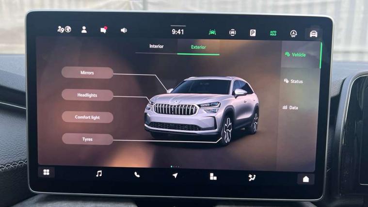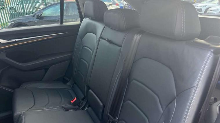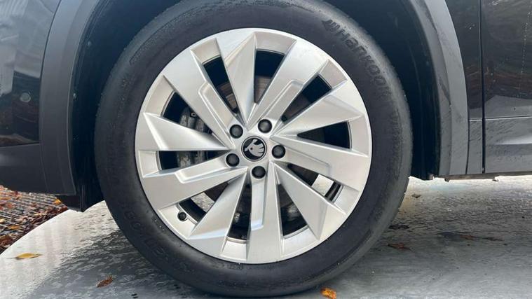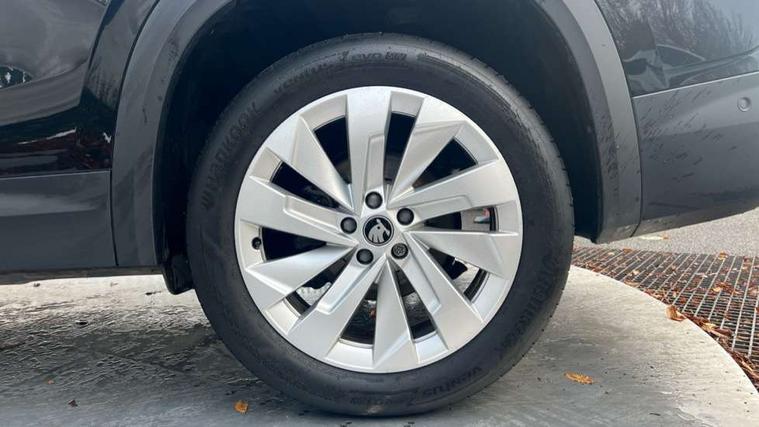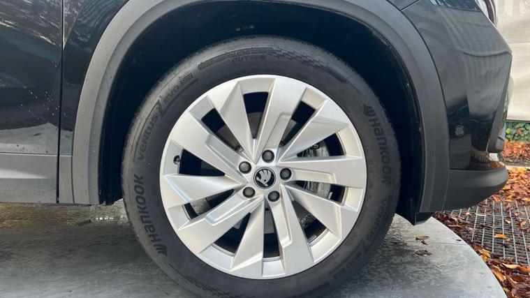 13" satellite navigation touchscreen display, Blind spot detection with door exit warning, Bluetooth system, ChatGPT functionality, Driver alert - Fatigue and drowsiness monitor, Dry display cleaner, Emergency call, Front and rear parking sensors, Front cross traffic assist, Lane assist, PAS, Rear traffic assist, Tailgate unlocking from outside, Traffic sign recognition, USB C Port x 2 in front centre console, Virtual Cockpit - 10.25" digital display, Voice control system, Wireless charging for two smartphones (15W) with cooling function, Wireless SmartLink for Apple CarPlay and Android Auto, Stop/start function, 2x USB-C in the rear, DAB Digital radio, Aero front windscreen wipers with intermittent function, Auto dimming rear view mirror, AWL (all weather lighting) and all weather light with cornering function, Black wheel arch surrounds, Body colour bumpers, Body colour door mirrors and handles, Cornering light and poor weather light, Electric folding /adjustable/separted heated/folding door mirrors, auto dimming with boarding sports and memory function, Electric front and rear windows, Exterior black decorative trims, Heat insulating glass in windshield, Heated rear window, Ice scraper in fuel tank cap, Invisible tailpipe, LED daytime running lights, LED third brake light in rear spoiler, Light assistant with automatic headlight control and coming home feature, Logo projection in door mirrors, Privacy glass, Rear roof spoiler, Rear side wing doors, Rear window wiper, Red decorative strip between rear LED lights, Safety reflectors on front and rear doors, Unique dark chrome design logo on alloy wheels, Window control switches with black trim, Windscreen wipers with rain sensor, Without engine designation, 1.5l bottle holder points in all door, 1x centre rear reading light, 2 seat bench in 3rd row, 3 configurable smart dials with 32mm coloured display, 3 seat bench in 2nd row, 4 foldable roof handles with rear coat hooks, Ambient interior lighting - Dashboard, front-door stowage compartments, front and rear door panels and footwell lighting, Automatic gear selector on steering column, Chrome interior door handles, Driver/front passenger reading lights, Fabric headlining, Fixed bench 40:60:40 split folding backrests, Front and rear floor mats, Front centre armrest with jumbo box storage compartment, cup holder and 12V socket, Height adjustable front headrests, Isofix child seat fittings in outer middle row rear seats and front passenger with top tether, Manually adjustable steering column, Pollen filter, Rear centre armrest with cupholders, Rear seat boot backrest release, Single front passenger seat, Skoda lettering on steering wheel, Storage pocket including mobile phone pockets on the backs of the front seats, Sunvisors with illuminated vanity mirrors, Three rear height adjustable headrests, Ticket holder on A Pillar, Tri zone climate control, Umbrella in door panel x1 made from sustainable materials, Upper and lower glovebox with card holder and coin compartment, USB C port by rear view mirror for charging only (15W), Exterior styling pack - Kodiaq, Auto door release and activation of warning lights in the event of an accident, Driver and front passenger airbag with knee airbag and front passenger airbag deactivation, Electric child locks, Electronic parking brake, ESC (incl. ABS+EMD+MSR+ASR+EDL+HBA+DSR+RBS+ESBS+MCB+TSA+XDS), Front assist with braking reaction to vehicles, pedestrians and cyclists, Front disc brakes, Fuel cut off safety device, Height adjustable front 3 point seatbelts + pretensioners, Hill hold assist, Junction assist with automatic emergency braking, Rear disc brakes, Safety vest holder in door, Seat belt reminder for all seats, Three point rear seat belts, Two tone horn, Tyre pressure monitor, Anti-theft wheel bolts, Immobiliser, Remote central locking with 2 keys,