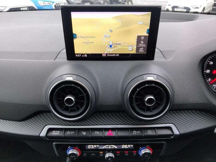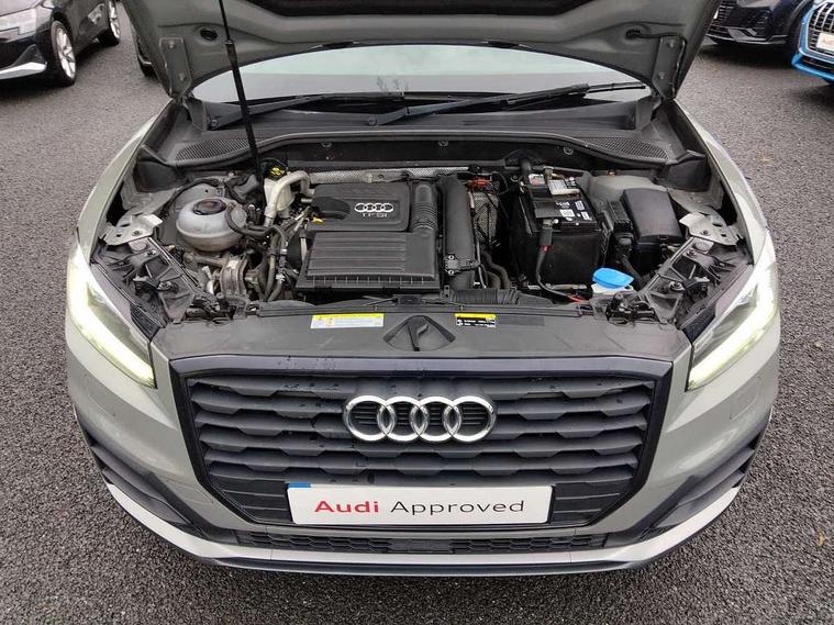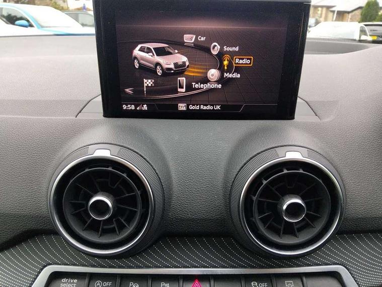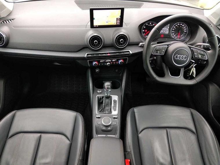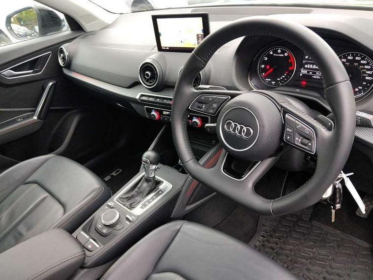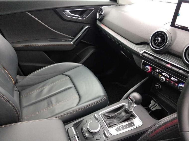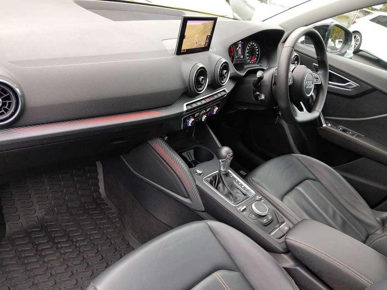 Audi drive select, Audi smartphone interface, Bluetooth hands free telephone connection, MMI - Multi Media Interface control system, MMI SD card Navigation, PAS, Service interval indicator, Voice control system, Audi music interface, Aux input, CD player, DAB digital radio module, MMI radio plus with 7" colour MMI screen and MMI controller, USB port, Brilliant black C-Pillar blade, Chrome exhaust tailpipe, Door mirror integrated indicators, Electrically adjustable and heated door mirrors, Front and rear electric windows, Headlight washers, LED headlights with LED rear lights + dynamic rear indicators, Rear wiper, S Line body styling, Solid paint, Sunband for windscreen, Centre console with storage/cupholders, Fine Nappa leather upholstery, Floor mats with contrast stitching, Front and rear door pockets, Front and rear headrests, Front centre armrest, Front sports seats, Glovebox, Height adjustable front seats, Height/reach adjust steering wheel, Illuminated door sills, ISOFIX on front passenger and rear outer seats, Storage compartment in rear centre console, Black styling pack - Q2, Extended interior upholstery pack - Q2, LED interior lighting pack advanced - Q2, Manhattan grey bumper pack - Edition 1 - Q2, 3x3 point rear seatbelts, ABS+Electronic Brake force Distribution, Curtain airbags, Driver and passenger airbags, Driver and passenger side airbags, EDL + ASR, Electrically operated child locks on rear doors, Electromechanical parking brake, ESP, Multi-Collision braking, Pre-sense front with pedestrian recognition, Seatbelt warning light, Tyre pressure monitoring system, Warning triangle and first aid kit, Locking wheel bolts, Remote central locking, Thatcham category 1 alarm + immobiliser, Aluminium interior trim, Illuminated format design inlays, 19" 5 arm rotor design anthracite black alloy wheels,