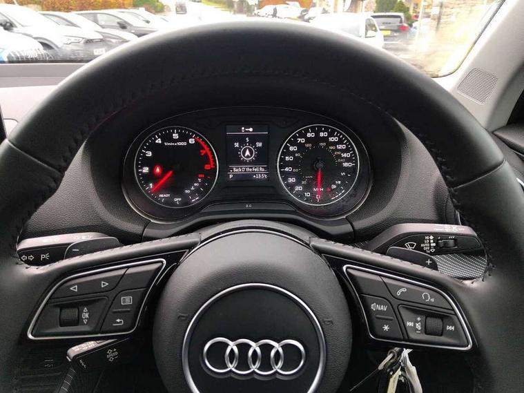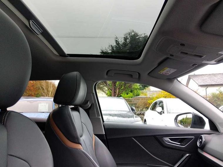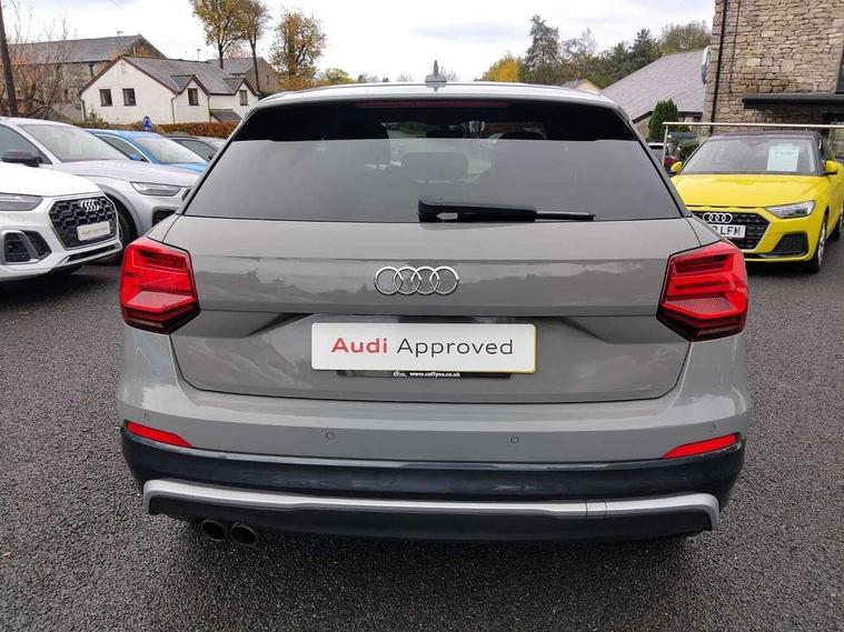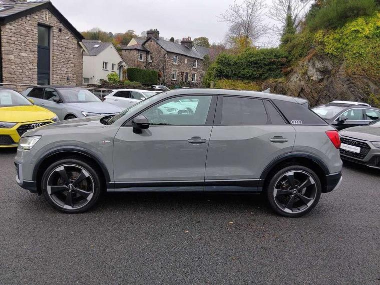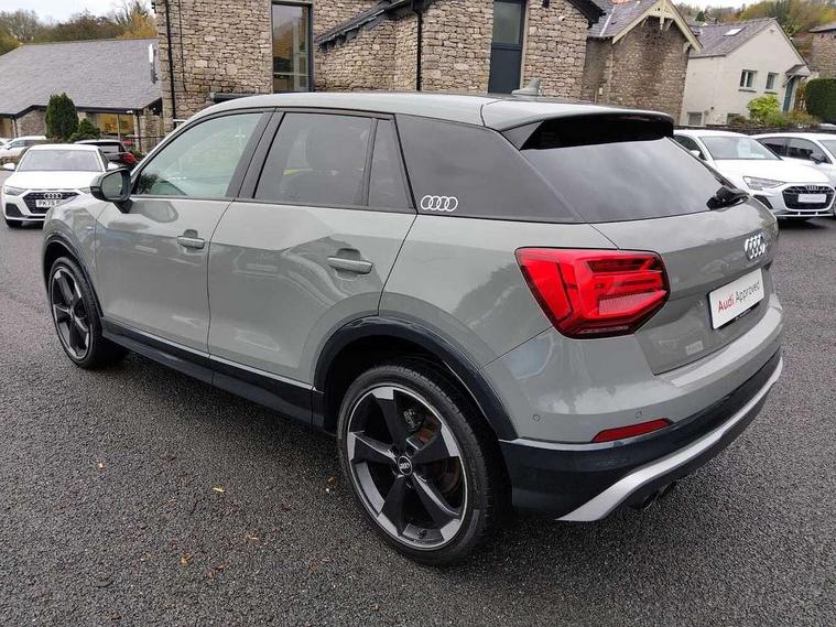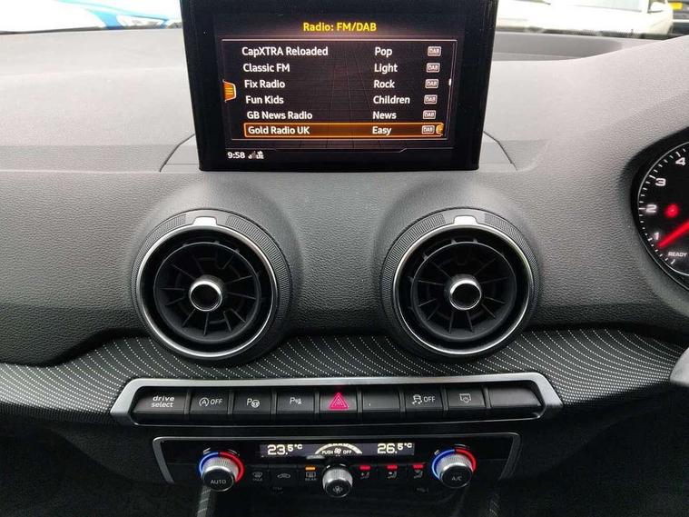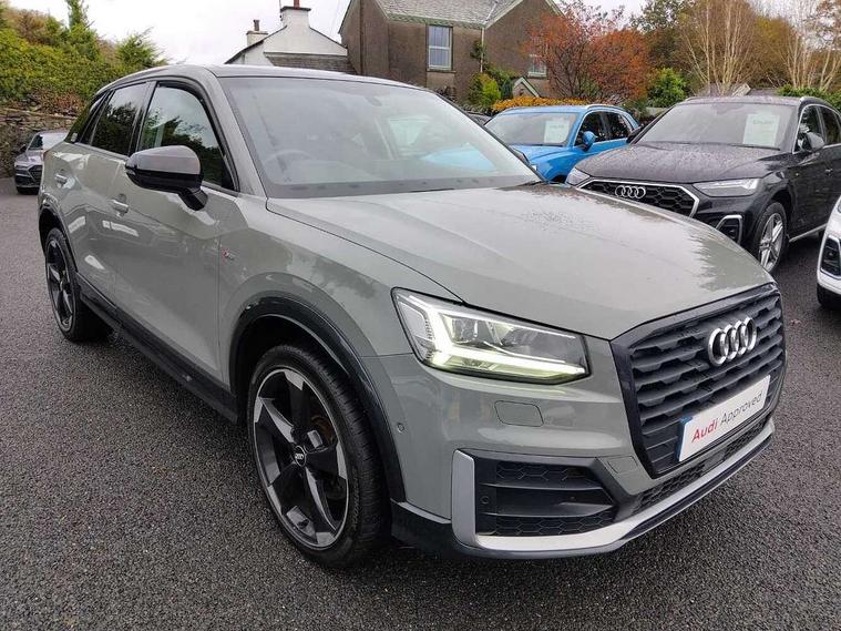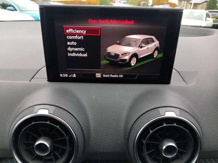 Audi drive select, Audi smartphone interface, Bluetooth hands free telephone connection, MMI - Multi Media Interface control system, MMI SD card Navigation, PAS, Service interval indicator, Voice control system, Audi music interface, Aux input, CD player, DAB digital radio module, MMI radio plus with 7" colour MMI screen and MMI controller, USB port, Brilliant black C-Pillar blade, Chrome exhaust tailpipe, Door mirror integrated indicators, Electrically adjustable and heated door mirrors, Front and rear electric windows, Headlight washers, LED headlights with LED rear lights + dynamic rear indicators, Rear wiper, S Line body styling, Solid paint, Sunband for windscreen, Centre console with storage/cupholders, Fine Nappa leather upholstery, Floor mats with contrast stitching, Front and rear door pockets, Front and rear headrests, Front centre armrest, Front sports seats, Glovebox, Height adjustable front seats, Height/reach adjust steering wheel, Illuminated door sills, ISOFIX on front passenger and rear outer seats, Storage compartment in rear centre console, Black styling pack - Q2, Extended interior upholstery pack - Q2, LED interior lighting pack advanced - Q2, Manhattan grey bumper pack - Edition 1 - Q2, 3x3 point rear seatbelts, ABS+Electronic Brake force Distribution, Curtain airbags, Driver and passenger airbags, Driver and passenger side airbags, EDL + ASR, Electrically operated child locks on rear doors, Electromechanical parking brake, ESP, Multi-Collision braking, Pre-sense front with pedestrian recognition, Seatbelt warning light, Tyre pressure monitoring system, Warning triangle and first aid kit, Locking wheel bolts, Remote central locking, Thatcham category 1 alarm + immobiliser, Aluminium interior trim, Illuminated format design inlays, 19" 5 arm rotor design anthracite black alloy wheels,