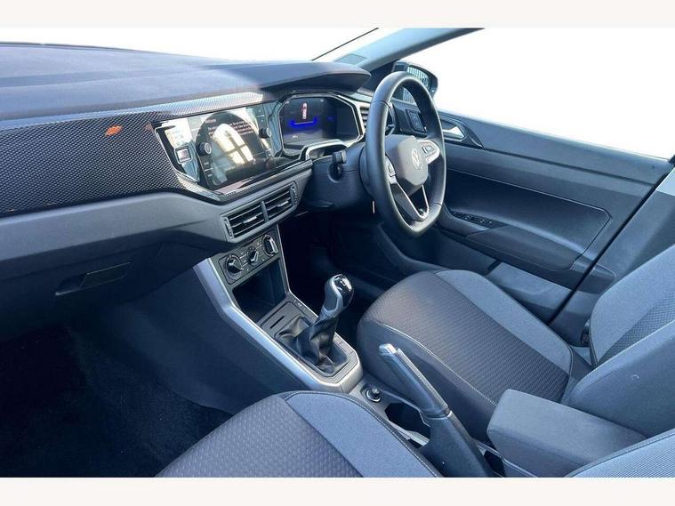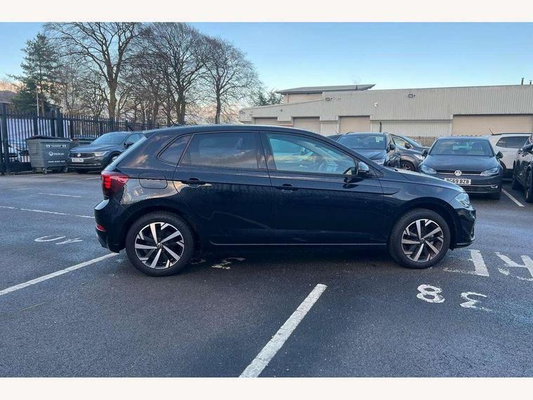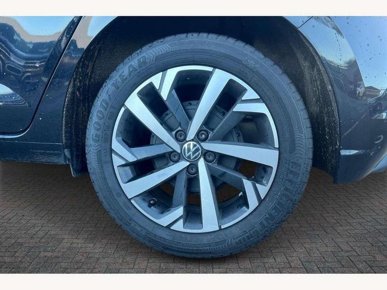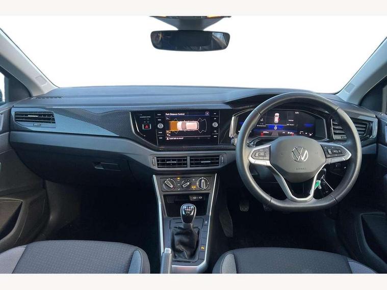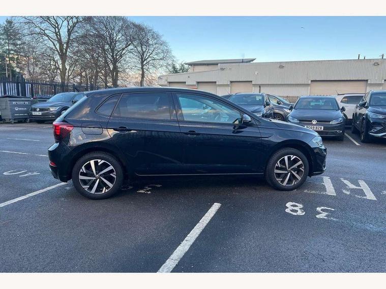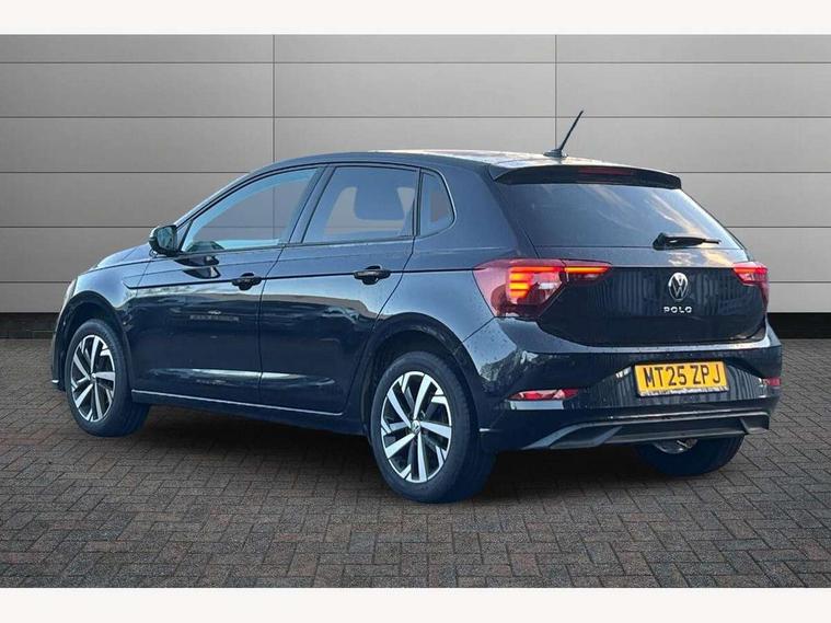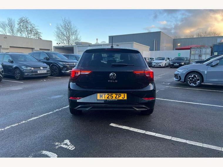 Adaptive cruise control without follow-to-stop and speed limiter, Advanced driver attention and drowsiness monitor, Bluetooth mobile phone interface, Dynamic road sign display, Emergency call service, Multifunction front facing camera for distance control, Park distance control, Power assisted speed sensitive steering, Preparation for navigation system with media and internet package, Preparation for We connect and We connect plus, Rear view camera, Speedo and rev counter, electronic odometer, trip, service interval display and exterior temperature gauge, Standard rear axle, Travel Assist - Lane keeping system and traffic jam assist, Travel assist including emergency assist, Trip computer, Warning signal and warning light for front and rear seatbelts not fastened, Washer fluid level indicator, Wireless app connect, Front wheel drive, Rear shock absorpion, Start-stop system with battery regeneration (recuperation - energy recovery during braking), DAB Digital radio, Diversity antenna for FM reception, Front and rear 6 speakers, Automatic dimming interior rear view mirror, Automatic headlight control with LED separate daytime running lights with coming/leaving home function, Body colour bumpers with chrome inserts, Body colour door handles, Body colour door mirrors, Electric front windows, Engine badge deletion, Headlight range adjustment, Heat insulating and laminated safety glass windshield, LED Headlights, LED rear combination lamps, Power folding adjustable/heated exterior mirrors and front passenger exterior mirror lowering function, Rain sensor, Rear electric windows, Rear fog light, Rear side wing doors, Rear tinted glass from B-pillar backwards approx 65% tinted, Rear windscreen washer and wiper with interval delay, Third brake light, 12V power socket in centre console, 2 front and 2 rear reading lights with switch off delay and dimmer, 2 USB-C ports in the front, 2 USB-C charging sockets on the center console in the rear, 3 rear head restraints, 60/40 split folding rear seat and rear seat bench not split, Ceramique roof lining, Chrome plated radiator grille inserts, air vent surrounds and light switch surrounds, Door and side trim panel, Driver and front passenger seat height adjustment, Driver/passenger sunvisors with illuminated vanity mirrors, Front centre armrest, Front seat backrest storage pockets, Front standard seats, Handbrake lever handle in leather, Hartley/Thomas cloth upholstery, Headliner in recycled material, Isofix child seat preparation easy-fit (for two outer rear seats, and front passenger seat) compatible with I-size, Leather trimmed gear knob, Luggage compartment cover, Luggage compartment lighting, Removable luggage compartment floor, Single front passenger seat, Standard climatic zones, Standard pedal cluster, Three spoke leather wrapped multifunction steering wheel, Light and vision pack - Polo, 3 point height adj front seatbelts + pretensioners, 3 point seat belt for centre rear seat, 3 point seatbelts, outer rear with ECE lable, ABS, Driver and front passenger airbag with front passenger airbag deactivation, Drivers and front passengers safety optimised head restraints, ESC (Electronic stability control) + EDL (Electronic Differntial lock) and ASR (Traction control), Extended and predictive pedestrian/ cyclist protection, Front assist with autonomous emergency braking (for Adaptive Cruise Control ACC up to 130 mph), Front curtain and side airbags with center airbag, Front disc brakes, Hill hold control, Manual child lock in rear doors, Rear drum brakes, Single tone horn, Tyre pressure loss indicator, Alarm with interior protection, Anti-theft alarm system with interior monitoring, backup horn, and towing protection, Anti-theft wheel bolts, Electronic engine immobiliser, Lava stone black gloss/matt decorative inserts in dash and front door panels, 16" Torsby alloy wheels, Low rolling resistance tyres,