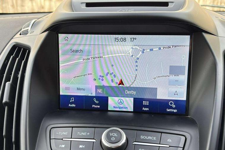 Apple car play/Android Auto, EPAS, Hands free telephone, Trip computer, Auxiliary socket for external device, Remote audio controls on steering wheel, USB connection, Auto dimming rear view mirror, Automatic halogen headlights with LED daytime running lights, Body colour bumpers, Body colour rear spoiler, Electrically operated and heated door mirrors with side indicators, Electrically operated front and rear windows with global closing, Front fog lights, Front scuff plate, Power folding door mirrors, Quickclear heated windscreen, Rain sensor windscreen wipers, Tailgate wash/wipe, Twin exhausts and rear diffuser, 6 way manually adjustable passenger seat with lumbar support, 60/40 split/folding rear back and cushion, Auxiliary power socket in luggage area, Centre console with stowage tray/bottle holder/CD stowage/front and rear 12V power point, Driver/passenger front seatback pockets, Dual electronic automatic temperature control, Folding rear centre armrest, Footwell courtesy lights front and rear, Front floor mats, Front head restraints, Front overhead courtesy lights with theatre style dimming and delay, Front/rear reading lights, Gearshift paddles, Isofix system on outer rear seats, Leather steering wheel and gear knob, Multi-colour ambient interior lighting, Part leather upholstery, Reach + rake adjustable steering column, Rear floor mats, Rear head restraints, Sports style front seats, Stowage unit in upper instrument panel, Tie down hooks, Tonneau cover, Variable intensity instrument illumination, Appearance pack - Kuga, 3 point seatbelts on all 3 rear seats, ABS/EBD, Airbags - front driver/passenger, front and rear curtain, Drivers knee airbag, EBA, Electric traction assist system, Electronic Stability Programme, Front passenger airbag deactivation switch, Hill start assist, Intelligent Protection System (IPS), Tyre pressure monitoring system, Immobiliser, Keyless entry, Keyless start with 'Ford Power' starter button, Locking wheel nuts, MyKey system, Remote central locking, Thatcham Cat.1 alarm, Mini steel spare wheel,