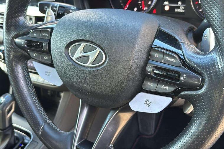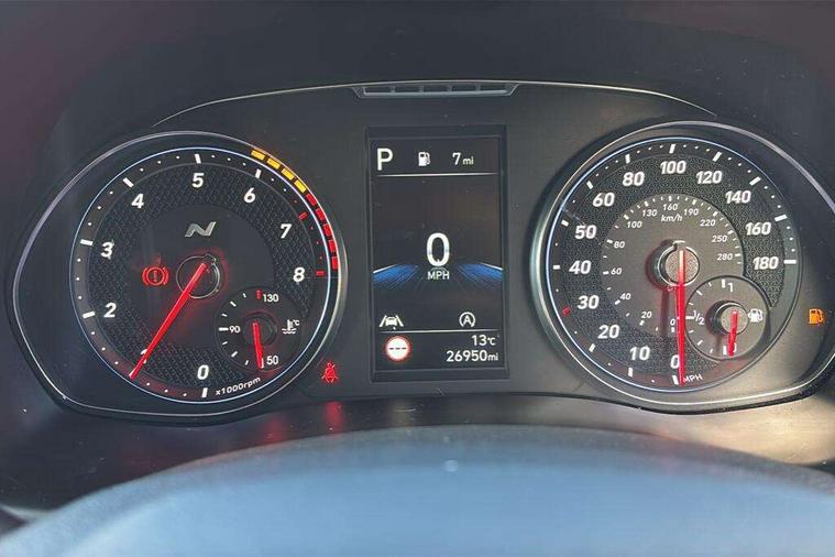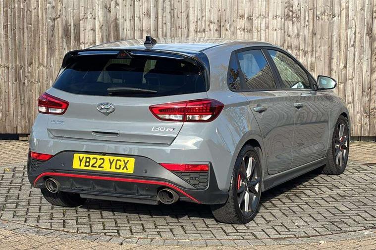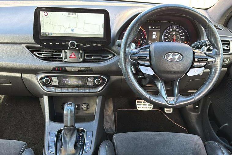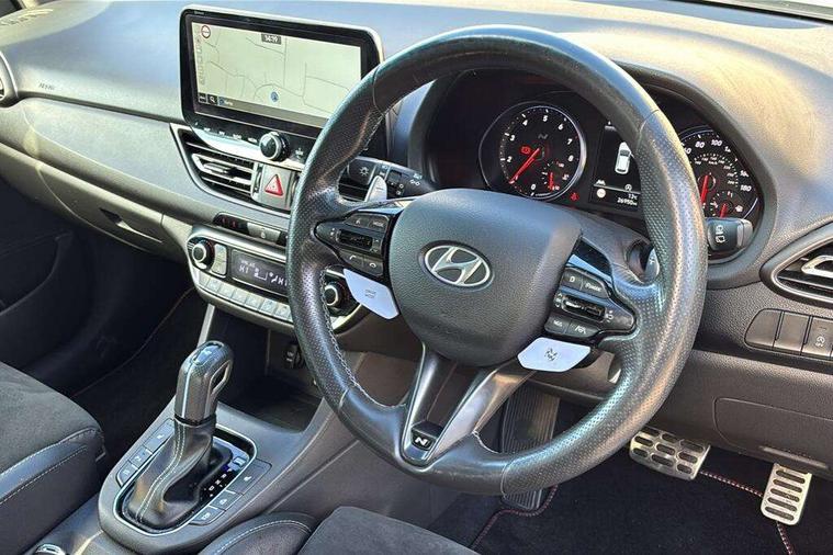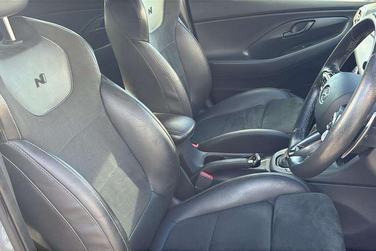 10.25" touchscreen centre console display satellite navigation including traffic messaging channel, map care and live services, Android Auto, Apple car play, Audio control with voice recognition, Blind spot Collision Warning (BCW), Bluetooth connectivity with voice recognition, Cruise control, Drive mode buttons, Driver attention alert system, Driver's supervision instrument cluster with 4.2" LCD display, e-Call (Emergency button system), Emergency stop signalling system, Forward collision avoidance assist, Front and rear parking sensors, Intelligent speed limit warning, Lane follow assist, Lane keep assist, N exclusive sport cluster, N grin shift, N mode button, N track sense shift, Parking system with rear camera and guidance system, Performance information display, Rack motor driven power steering, Rear collision assist, Rev matching system, Shift timing indicator, Trip computer, Windscreen washer fluid sensor and warning indicator, Wireless phone charging pad, Electric active sound design, Electronic limited slip differential, Electronically controlled suspension, Intelligent Stop and Go, Launch control, 2 front and 2 rear speakers with 2 tweeters, DAB Digital radio, USB ports in centre console, 1 speed non intermittent rear windscreen wiper, Active variable exhaust system, Adjustable intermittent front windscreen wipers with aero wiper blade, Automatic defog system for front windscreen, Automatic dimming rear view mirror, Automatic headlight with follow me home function, Automatic windscreen wipers with rain sensor, Black finish window surrounds, Black glossy door mirrors with integrated indicators, Body coloured door handles, Door mirror puddle lights, Dual LED Headlamps with Low/High Projection & Static Cornering, Dusk sensor, Electric adjustable heated door mirrors, Electric folding door mirrors, Electric windows - front and rear with anti-trap mechanism and one touch control (driver window), LED daytime running lights, LED tail lights, N exclusive front and rear bumpers, N exclusive radiator grille, N exclusive rear diffuser, Rear brake light in signature N triangular design, Rear LED lights, Rear roof spoiler with integrated LED brake light, Rear side wing doors, Rear stiffness bar, Rear windows and tailgate privacy glass, Shark fin antenna, Static Cornering lights, Tinted glass with windscreen shade band, 12V power outlets in front console and luggage compartment, 3 seat bench in 2nd row, 60/40 split folding rear seat, Active head restraints, Aluminium pedals, Black roof liner, Centre console storage, Chrome effect interior door handles, Driver's seat electric height adjustment, Driver's seat manual extendable seat cushion, Driver/passenger sunvisors and illuminated vanity mirrors, Dual zone climate control air conditioning, Electric adjust driver's seat, Floor mats, Front and rear door pockets, Front armrest with storage box, Front cupholders, Front head restraints with vertical and horizontal adjustment, Front passenger's seat electric adjustments, Front passenger's seat electric height adjustment, Front passenger's seat electric lumbar support, Front passenger's seat manual extendable seat cushion, Front, rear and luggage compartment interior lights, Glove compartment, Heated front seats, Heated function steering wheel, Interior front map reading light and sunglasses holder, ISOFIX child seat anchorage points attached on outer rear seats, Leather gearstick gaiter with light blue stitching, Leather wrapped steering wheel and gear knob, Luggage board, N branded aluminium door sill trims, N drive mode steering wheel button in blue, Reach + rake adjustable steering column, Rear armrest with cupholder, Rear head restraints, Single front passenger seat, Steering wheel audio, phone and cruise control buttons, 3x3 point rear seatbelts, Airbags - front, front side and curtain airbags, Anti-lock braking system (ABS), Childproof rear door locks, Curtain airbag roll over sensor, Electronic stability control, Front passenger airbag deactivation switch, Front seatbelt reminder, Height adjustable seatbelts, Hill start assist control (HAC), Manual parking brake, N power shift, Red brake calipers with N logo, Reinforced brakes, Seatbelt reminder for rear passenger seats, Torque vectoring brake, Tyre pressure monitoring system (TPMS), Deadlocks, Immobiliser, Locking wheel nuts, Remote control central locking, Smart key with keyless entry and engine start/stop button, Speed sensitive automatic door locking, Thatcham category 1 alarm, 19" Gloss black alloy wheels, 19" Pirelli P zero performance tyres, Temporary mobility kit (TMK),