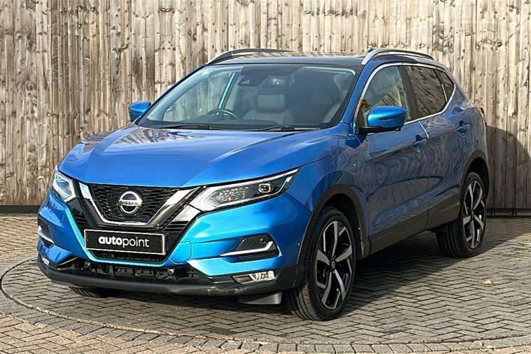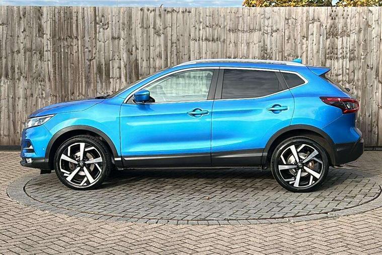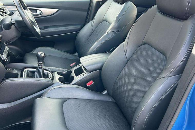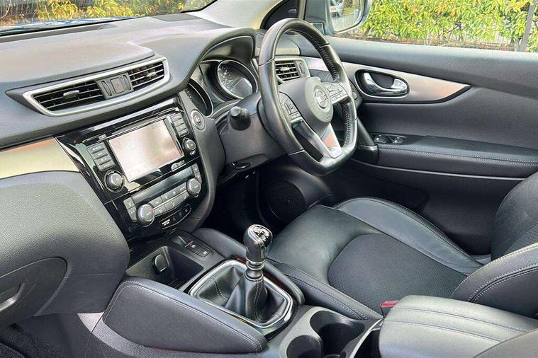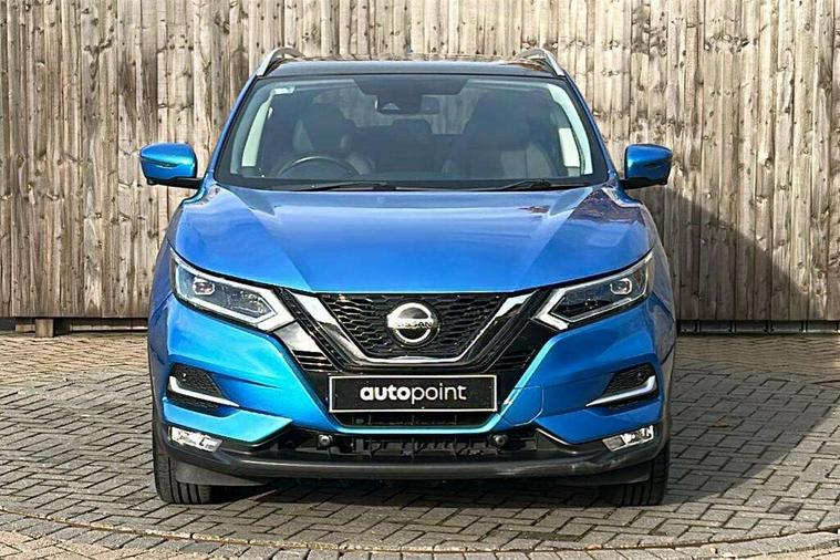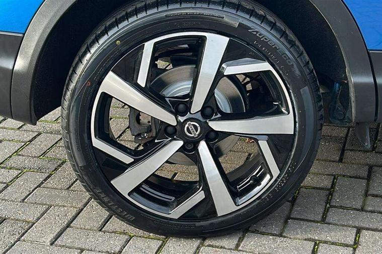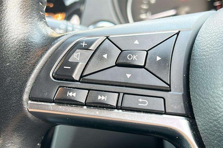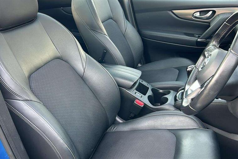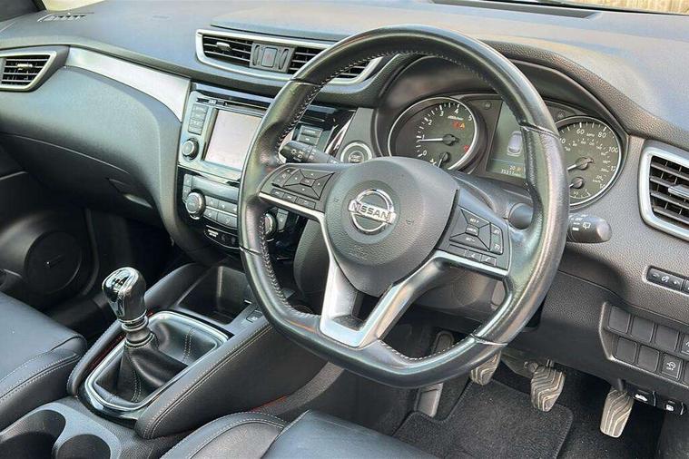 Advanced drive assist display 5'' TFT coloured screen, Android Auto, Apple CarPlay preparation, Bluetooth connectivity, Cruise control + speed limiter, Electric speed sensitive power steering, Front parking sensors, Intelligent around view monitor, Intelligent parking assist, Lane departure warning system, Nissan connect evo 7" touchscreen navigation and entertainment system, Normal or sport selectable steering, Outside temperature sensor, Push button starter, Rear parking sensors, Rear view camera, Service interval indicator, Smartphone integration, Stop/start system, Tomtom connected services, Traffic sign recognition, Trip computer, Voice control system, Nissan chassis control (intelligent ride control, intelligent trace control, intelligent engine brake), AM/FM radio, CD audio system, Aux-in socket, Bose premium 8 speaker system, DAB Digital radio, Steering wheel mounted audio controls, USB port, Anti dazzle rear view mirror, Auto wipers, Body colour bumpers, Body coloured door handles, Body coloured door mirrors, Chrome window surround, Daytime running lights dip function when turn signal applied, Electric folding door mirrors, Electric front and rear windows with one touch illuminated window controls, Electric front/rear windows, Electrically adjustable door mirrors, Front fog lights, Heated door mirrors, High beam assist, Intelligent auto headlights, LED indicators in door mirrors, Matt silver roof rails, Panoramic sunroof with one touch shade, Privacy glass, Rear roof spoiler, Rear wiper with reverse link, Shark fin antenna, Underbody vortex generators, 2 X front 12v power sockets, 3 height adjustable rear headrests, 60/40 split folding rear seat, Ambient lighting in centre console, Boot lighting, Centre console storage box/armrest, Chrome interior door handles, Configurable luggage board system, Dual zone climate control, Electrically adjustable driver seat, Front and rear door pockets with bottle holders, Front and rear seat belt pre-tensioners with load limiters, Height adjustable front headrests, Individual rear seat reading lights, Leather D shaped steering wheel, Leather gear lever, Leather knee pad, Manual height adjustable front passenger seat, Manual lumbar support on driver seat, Manual lumbar support on passenger seat, Monoform front seats with plastic backboard, One touch electric shade, Parcel shelf stow function under luggage board, Part leather upholstery, Pollen filter, Rear armrest with 2 cupholders, Synthetic leather wrapped door handle with contrasting stitching, Tilt/telescopic adjustable steering wheel, Heat package - Qashqai, LED pack - Qashqai, Safety shield plus pack - Qashqai, 6 airbags - Driver, front passenger, curtain and side airbags, ABS, ESP, EBD and brake assist, Auto hold function, Child locks on rear doors, Electronic parking brake, Front and rear seat belt warning, Front passenger airbag deactivation, Height adjustable front seatbelts, Hill start assist, Intelligent emergency braking with pedestrian recognition, Three 3 point rear seatbelts, Tyre pressure monitoring system, Anti-theft immobiliser, Intelligent Key, Remote central locking, Thatcham Cat.1 alarm, Carbon graphite dash trim, Tyre puncture repair kit,