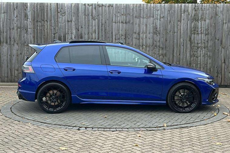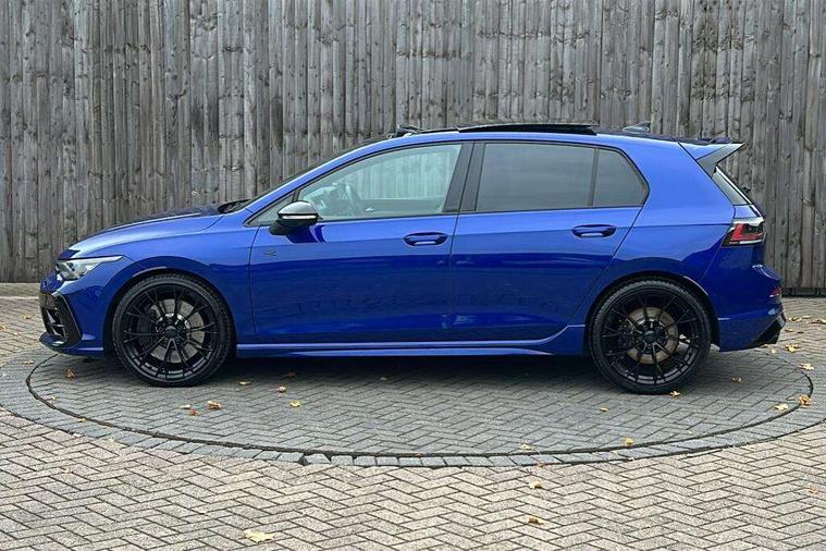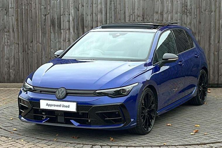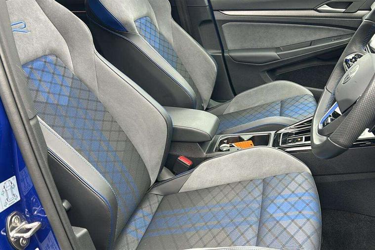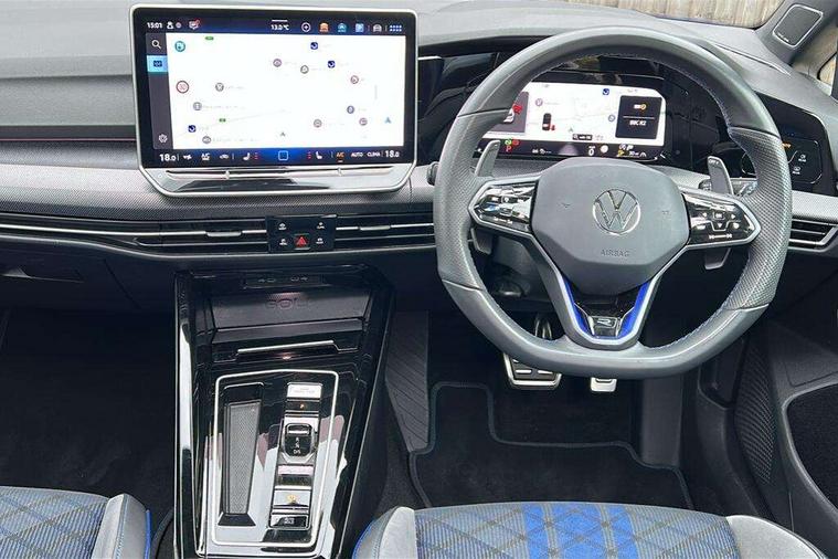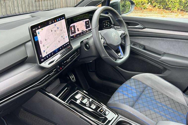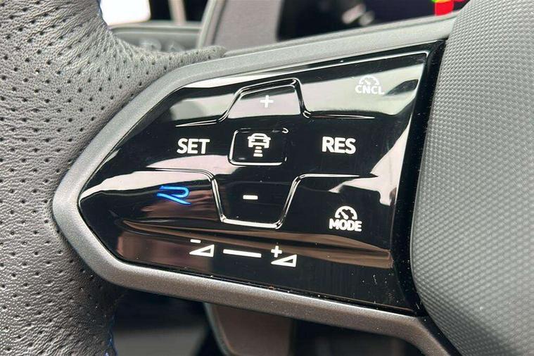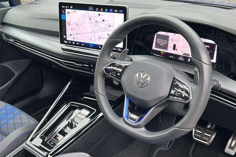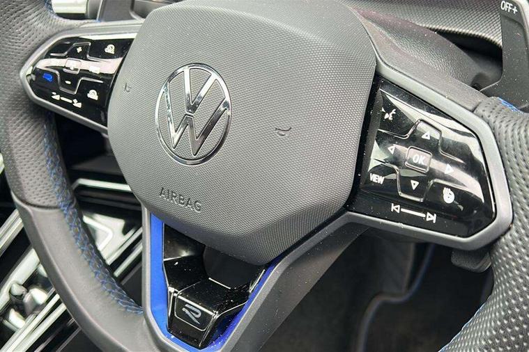 Activated carbon canister, Adaptive cruise control (ACC), Advanced driver attention and drowsiness monitor, Dynamic road sign display, E-Sim card for online connectivity, eCall emergency call system, Electronic maximum speed limit increased to 270 km/h, includes driving Modes 'drift' and 'special', larger roof spolier and GPS laptimer + G-Meter, Multi-color Digital cockpit pro, selection of different info profile possible, Multifunction front facing camera for distance control, Navigation system, Oncoming vehicle braking when turning including swerve support, Preparation for light assist system, Progressive steering, Side assist blind spot lane change system, rear traffic alert and exit warning system, Speed limiter, Speedo, rev counter, electronic odometer, trip, service interval display, exterior temperature and fuel gauge, Traffic jam assist, Voice enhancer and voice control, Warning signal and warning light for front and rear seatbelts not fastened, We connect plus preparation, We connect preparation, Wireless app connect, All wheel drive - 4Motion, Petrol Particulate Filter, Sports suspension, Start-stop system with battery regeneration (recuperation - energy recovery during braking), XDS electronic differential lock for improved traction and handling, 2 USB C ports in front, 2 USB charging sockets on the centre console in the rear charging capacity upto 45W, Comfort telephony + wireless charging, without wireless aerial connection, Digital radio reception (DAB), Diversity antenna for FM reception, Gaming platform via car app, Infotainment system with 12.9" display, Mobile phone interface with inductive charging feature, 3rd brake light, Auto dimming rear view mirror, Auto headlights, Automatic headlamp activation with Coming home and Leaving home feature, Black badge on B-pillar, Black mirror caps, Black strips on radiator grille and headlights, Body colour door handles, Darkened headlights, Darkened R Logos and VW logos in front, rear and on fender, Exhaust system with black tailpipe, Exterior ambient lighting with illuminated lighting animation and wake up/goodbye scenario, Exterior mirrors convex on the left and aspherical on the right, Front and rear electric windows, Front fog lamps and cornering light, Heat insulating windshield made of laminated glass, LED daytime running lights, LED matrix headlights with ambient light V2, advanced high beam, dynamic range contol with cornering, LED rear lamp with indicator, poor weather, R name plate, Rain sensor, Rear fog light on one side and reversing lights on both sides, Rear side wing doors, Rear tinted glass 65% light absorbing from B pillar backwards, Rear windscreen washer and wiper with interval delay, Remote electrically foldable door mirrors, puddle lights and reverse activated passenger's door mirror, Welcome light with surround lighting, 12V socket in front centre console, 12V socket in luggage compartment, 3 rear head restraints, 3 seat bench in 2nd row, 30 colour ambient lighting, illuminated center console storage compartment in front, Air care climatronic 3 Zone automatic climate control with rear air conditioning control panel, Aluminium gearshift handle, Brushed stainless steel pedals, Carpet mats, front and rear, Front centre armrest, Integrated front head restraints, ISOFIX anchors for child seats on outer rear bench seats and on front passanger seat compatible for i-Size, Luggage compartment lighting, Rear cupholder and loadthough, Single front passenger seat, Soul black instrument panel, Split folding backrest with centre armrest and unsplit rear seat bench, Storm grey roof lining, Sun visors with illuminated vanity mirrors, Driver assistance pack - Golf DSG Estate/Hatchback, R styling pack - Golf, Technology park and comfort pro package - Golf Hatchback, 3 point height adj front seatbelts + pretensioners, 3 rear three point seatbelts, ABS, Autonomous emergency braking front assist with pedestrian and cyclist monitoring, Child locks on rear doors, Disc brakes in rear incl. brake calipers in black with darkened R-logo, Driver and front passenger airbag with front passenger airbag deactivation, Electronic parking brake with auto hold, ESC (Electronic Stability Control), Extended pedestrian protection measures, Hill start assist, Two tone horn, Tyre pressure loss indicator, Volkswagen roadside assistance, Anti theft wheel bolts, Preparation for alcohol interlock, Wheel hub cover with darkened R-logo,