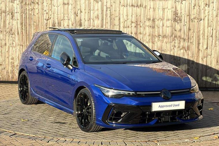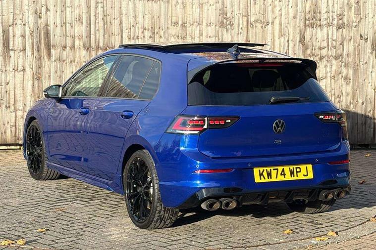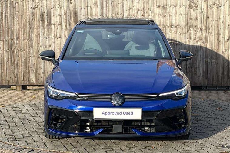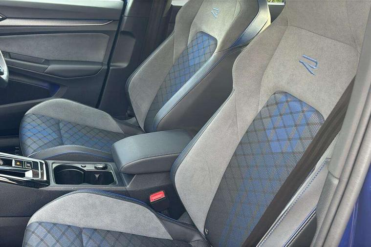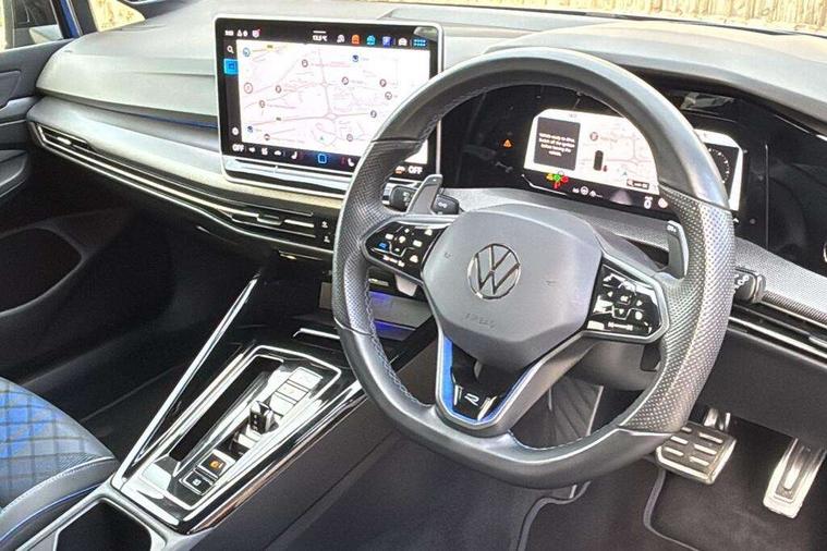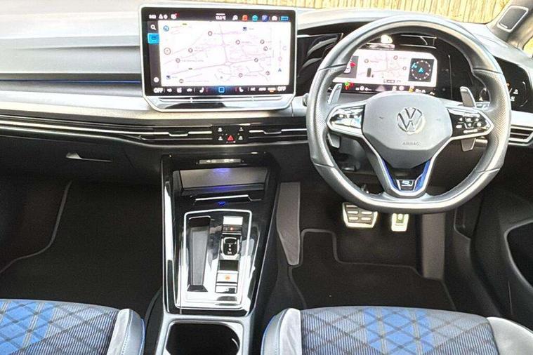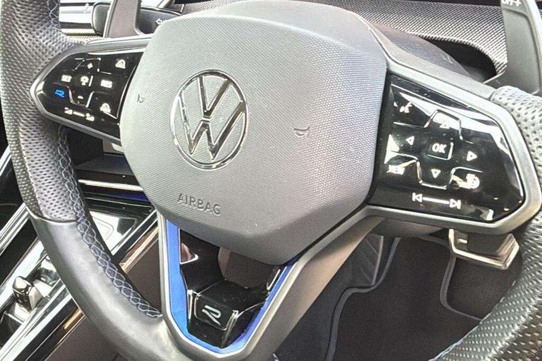 Activated carbon canister, Adaptive cruise control (ACC), Advanced driver attention and drowsiness monitor, Dynamic road sign display, E-Sim card for online connectivity, eCall emergency call system, Electronic maximum speed limit increased to 270 km/h, includes driving Modes 'drift' and 'special', larger roof spolier and GPS laptimer + G-Meter, Multi-color Digital cockpit pro, selection of different info profile possible, Multifunction front facing camera for distance control, Navigation system, Oncoming vehicle braking when turning including swerve support, Preparation for light assist system, Progressive steering, Side assist blind spot lane change system, rear traffic alert and exit warning system, Speed limiter, Speedo, rev counter, electronic odometer, trip, service interval display, exterior temperature and fuel gauge, Traffic jam assist, Voice enhancer and voice control, Warning signal and warning light for front and rear seatbelts not fastened, We connect plus preparation, We connect preparation, Wireless app connect, All wheel drive - 4Motion, Petrol Particulate Filter, Sports suspension, Start-stop system with battery regeneration (recuperation - energy recovery during braking), XDS electronic differential lock for improved traction and handling, 2 USB C ports in front, 2 USB charging sockets on the centre console in the rear charging capacity upto 45W, Comfort telephony + wireless charging, without wireless aerial connection, Digital radio reception (DAB), Diversity antenna for FM reception, Gaming platform via car app, Infotainment system with 12.9" display, Mobile phone interface with inductive charging feature, 3rd brake light, Auto dimming rear view mirror, Auto headlights, Automatic headlamp activation with Coming home and Leaving home feature, Black badge on B-pillar, Black mirror caps, Black strips on radiator grille and headlights, Body colour door handles, Darkened headlights, Darkened R Logos and VW logos in front, rear and on fender, Exhaust system with black tailpipe, Exterior ambient lighting with illuminated lighting animation and wake up/goodbye scenario, Exterior mirrors convex on the left and aspherical on the right, Front and rear electric windows, Front fog lamps and cornering light, Heat insulating windshield made of laminated glass, LED daytime running lights, LED matrix headlights with ambient light V2, advanced high beam, dynamic range contol with cornering, LED rear lamp with indicator, poor weather, R name plate, Rain sensor, Rear fog light on one side and reversing lights on both sides, Rear side wing doors, Rear tinted glass 65% light absorbing from B pillar backwards, Rear windscreen washer and wiper with interval delay, Remote electrically foldable door mirrors, puddle lights and reverse activated passenger's door mirror, Welcome light with surround lighting, 12V socket in front centre console, 12V socket in luggage compartment, 3 rear head restraints, 3 seat bench in 2nd row, 30 colour ambient lighting, illuminated center console storage compartment in front, Air care climatronic 3 Zone automatic climate control with rear air conditioning control panel, Aluminium gearshift handle, Brushed stainless steel pedals, Carpet mats, front and rear, Front centre armrest, Integrated front head restraints, ISOFIX anchors for child seats on outer rear bench seats and on front passanger seat compatible for i-Size, Luggage compartment lighting, Rear cupholder and loadthough, Single front passenger seat, Soul black instrument panel, Split folding backrest with centre armrest and unsplit rear seat bench, Storm grey roof lining, Sun visors with illuminated vanity mirrors, Driver assistance pack - Golf DSG Estate/Hatchback, R styling pack - Golf, Technology park and comfort pro package - Golf Hatchback, 3 point height adj front seatbelts + pretensioners, 3 rear three point seatbelts, ABS, Autonomous emergency braking front assist with pedestrian and cyclist monitoring, Child locks on rear doors, Disc brakes in rear incl. brake calipers in black with darkened R-logo, Driver and front passenger airbag with front passenger airbag deactivation, Electronic parking brake with auto hold, ESC (Electronic Stability Control), Extended pedestrian protection measures, Hill start assist, Two tone horn, Tyre pressure loss indicator, Volkswagen roadside assistance, Anti theft wheel bolts, Preparation for alcohol interlock, Wheel hub cover with darkened R-logo,