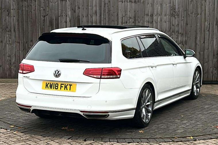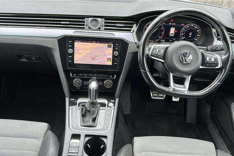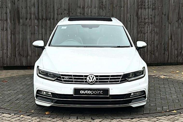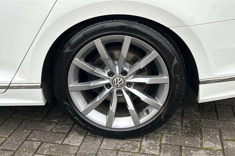 Adaptive cruise control, Analogue clock, App-Connect, Door/tailgate open warning lights, Driver alert system, Driver profile selection, Exterior temperature gauge with frost alarm, Information display, Low washer fluid warning light, Multifunction computer, Remote fuel flap release, Remote tailgate release, Rev counter with fuel gauge, Service interval indicator, Speed limiter, Warning buzzer and light for front seatbelts unfastened, Dynamic chassis control, XDS electronic differential lock, Auxiliary socket for external device, Composition media system with Radio/CD/MP3, DAB Digital radio, MDI with USB/iPod connection cables, SD card slot, Auto dimming driver's door mirror, Auto dimming rear view mirror, Automatic activation of hazard warning lights, Automatic coming/leaving home lighting function, Automatic headlights with dusk sensor, Body colour bumpers, Body colour door handles, Body coloured door mirrors, Chrome fog light surround, Chrome louvres in grille, Chrome side sills, Chrome side window surrounds, Chrome surround for air intake, Electric front windows, Electric panoramic sunroof with sunblind, Electric rear windows, Electrically adjustable and heated door mirrors, Front fog lights with static cornering function, Fully galvanised body, Gloss black finish on B pillar, Headlight range control, Headlight washers, Heated rear window, LED premium headlights with dynamic curve and LED daytime running lights, LED rear lights, LED rear number plate lights, Load sill protection, R Line body kit, Rain sensor, Rear wiper, Reverse activated kerb-view adjustment on passenger's door mirror, Silver roof rails, Trailer stability assist, Twin Trapezoidal tailpipes, Windscreen wipers/ intermittent wipe + 4 position delay, 12V Accessory socket in centre console, 12V socket in luggage compartment, 3 rear head restraints, 3 spoke multifunction leather steering wheel including paddle shift, 3 Zone electronic climate control with automatic air recirculation, 4 boot load lashing points, 40:20:40 split folding rear bench seat, Black roof lining, Driver's cushion tilt adjust, Entry lights on doors, Front + rear carpet mats, Front and rear interior lighting with delay and dimming function, Front centre armrest with storage compartment, Front comfort seats, Front cupholders x2 with covers, Front door pocket bottle holders, Height adjustable head restraints, Height/reach adjust steering wheel, Leather gearknob, Load through provision, Lockable, illuminated, cooled glovebox, Luggage compartment cover, removable, Luggage compartment lighting, Rear centre armrest with cupholder and storage, Stainless steel pedals, Storage compartment in driver's door, Storage compartment in passenger's door, Storage compartment in rear doors, Storage compartment in roof console, Storage pockets in backrests of front seats, Sunvisors with illuminated vanity mirrors, Variable boot floor, Winter pack - Passat - heated front seats, 3 rear 3 point seatbelts, ABS, brake assist and EBD, Automatic post collision braking, Curtain airbags, Door open warning reflectors, Driver/Front Passenger airbags, Driver/Front passenger WOKS head restraints, Drivers knee airbag, Electronic parking brake with auto hold, ESP with EDL + ASR, First aid kit, Front assist including city emergency braking, Front side airbags, Height adjustable front 3 point seatbelts + pretensioners, Hill hold function, Passenger airbag deactivation system, Pre crash system, Rear seatbelt warning indicator, Rear side airbags, Warning triangle, Alarm with interior protection, Electronic engine immobiliser, Keyless Start, Remote central locking with 2 remote folding keys, Brushed aluminium interior trim, Chrome air vent and instrument surround, Piano black centre console, White instrument dials,