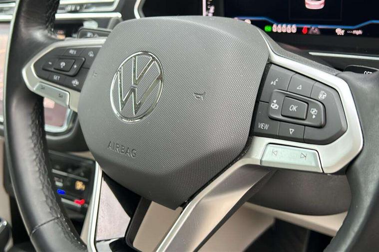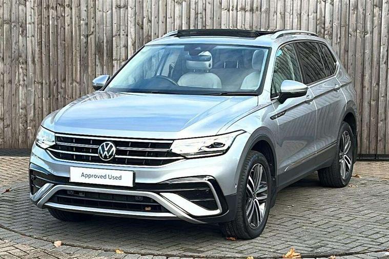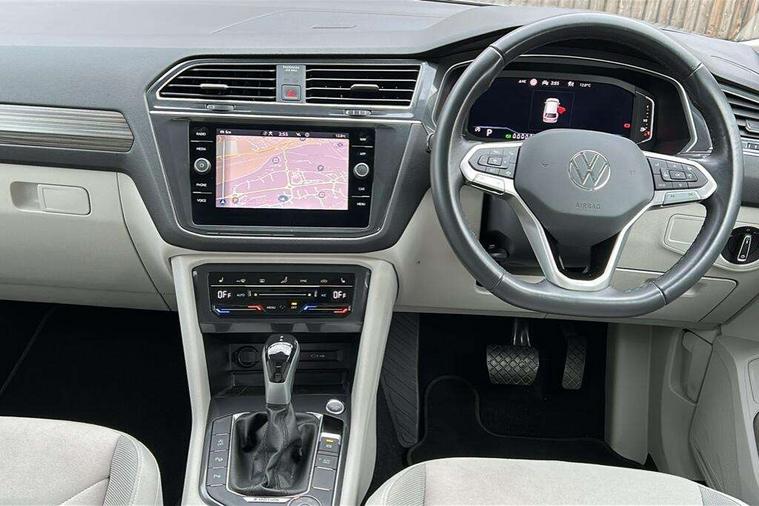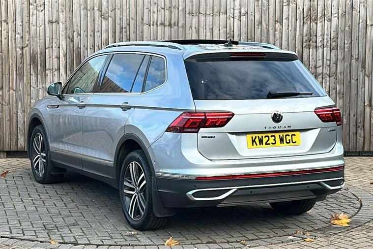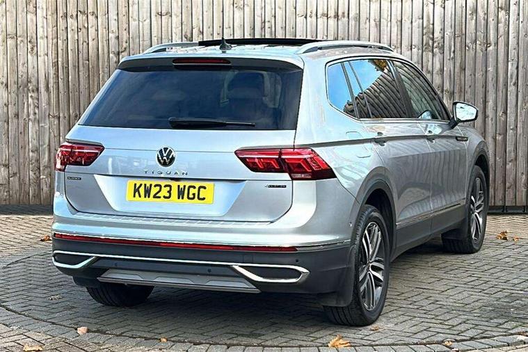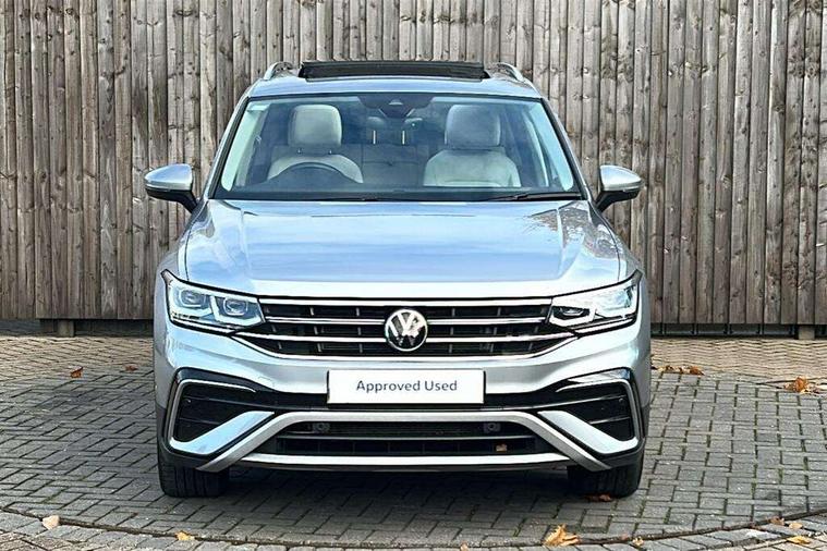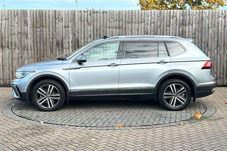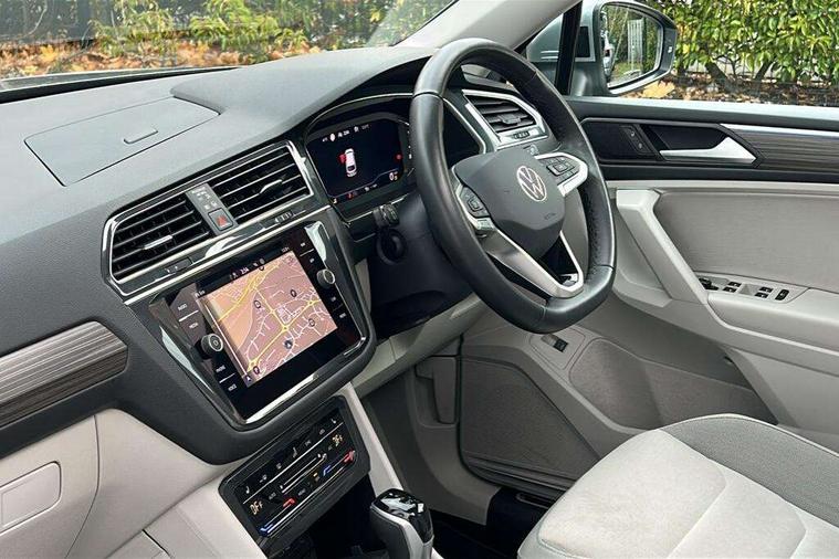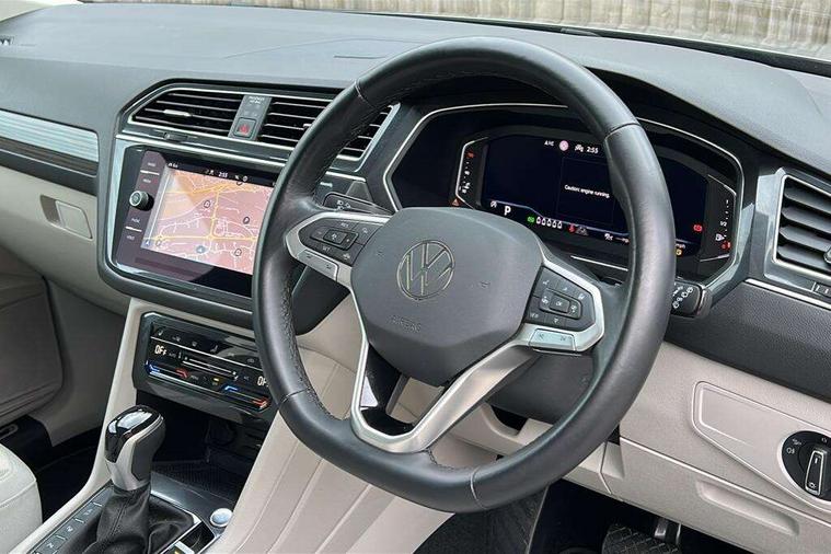 App-Connect, Adaptive cruise control, Digital cockpit pro, Driver alert system, Dynamic road sign display, eCall emergency call service, Electric boot lid, Lane change system side assist and rear traffic alert, Lane keeping system Lane Assist, Mobile phone interface comfort with inductive charging feature, Multifunction front facing camera, Power assisted speed sensitive steering, Speedo and rev counter, electronic odometer, trip, service interval display and exterior temperature gauge, Diesel particulate filter, Start-stop system with battery regeneration (recuperation - energy recovery during braking), 2 USB-C ports in the front, 1 USB-C charging socket on the center console in the rear, DAB Digital radio, Diversity antenna for FM reception, Auto dimming interior rear view mirror, Automatic headlight control system, Body coloured comfort bumpers, Chrome mouldings on side window, Coming/leaving home lighting function, Exterior badge deletion, Exterior mirror housings painted in silver, Heated windscreen washer jets, IQ light adv HBC, dyn light assist LED matrix headlamps, DH range, dark red LED rear combo light, poor weather, CL, LED headlamp with LED DRL and DCL - PXC, Privacy glass, Rain sensor, Rear fog light, Rear side wing doors, Rear wiper, Silver roof rails, Third brake light, Tilting and sliding panoramic sunroof, 12-volt outlet in centre console rear and luggage compartment, 12V socket in centre console, 3 head restraints in rear, 3 individual folding 2nd row seats, 3rd row 2 individual seats, Air Care Climatronic 3 zone automatic climate control with enhanced air filter and controls in the rear, Door and side trim panel, Drawers under front seats, Driver and front passenger seat height adjustment, Foldable front passenger seat backrest, Front + rear carpet mats, Front centre armrest, Front footwell illumination, Heated front seats, Illuminated scuff plates, ISOFIX anchorage points for mounting 2 child seats on rear seats and i-Size child seats, Leather gearshift handle, Leather-wrapped heated multi-function steering wheel with paddle shift, LED interior light with switch off delay/dimmer and 2 front/rear LED reading lights, Sun visors with illuminated vanity mirrors, Ambience pack - Tiguan Allspace, Driver assistance package - Tiguan Allspace, Easy open and close pack with safelock - Tiguan Allspace, 3 point seat belt for centre rear seat, 3 rear three point seatbelts, ABS+EBD+Brake assist, Driver and front passenger safety-optimised head restraints, Driver's and front passenger's airbag with front passenger's airbag deactivation switch, Electronic parking brake, Electronic Stability Control (ESC) inc EDL (Electronic Differential Lock) and ASR (Traction Control), Height adjustable front 3 point seatbelts + pretensioners, Manual rear child locks, Pedestrian monitoring, PreCrash preventive occupant protection Front and rear, Rear disc brakes, Side airbag in front and rear with curtain airbag, Two tone horn, Warning buzzer for seatbelts if unfastened, Anti theft alarm system with interior monitoring, backup horn and towing protection, Anti-theft wheel bolts, Electronic steering lock, Remote central locking with 2 remote folding keys, Chequered flag tinanium decorative inserts,