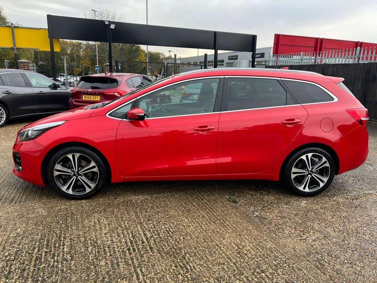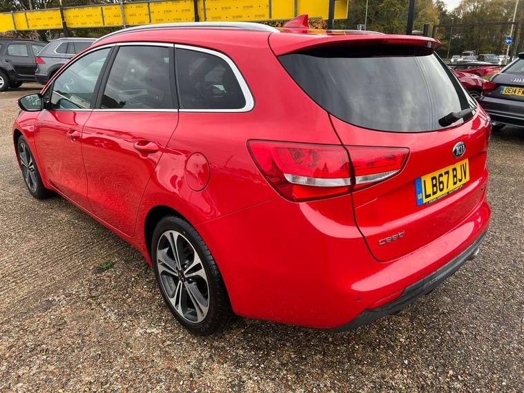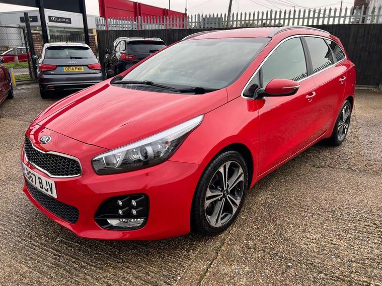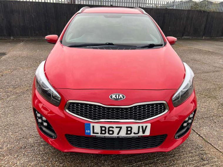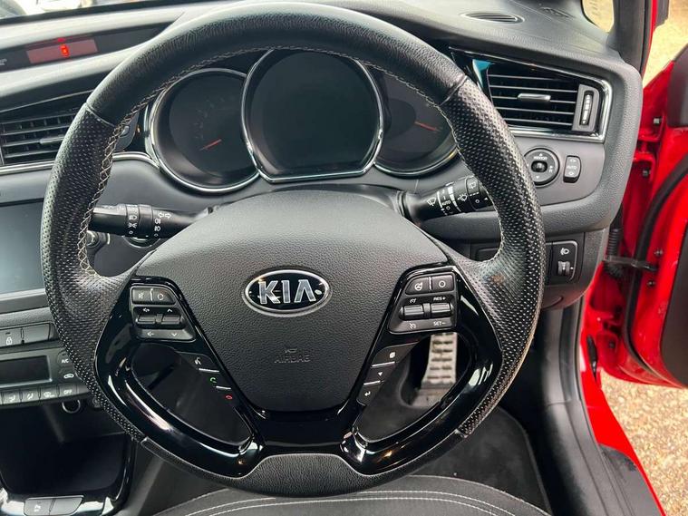 7" touchscreen full map navigation system with Kia Connected Services, Apple car play/Android Auto, Bluetooth connectivity with voice control, Cruise control + speed limiter, Digital clock with date indicator, Electric power steering, Emergency stop signalling system, Flex Steer variable steering settings, Instrument cluster in chrome, Internal fuel flap release, Kick down switch, Low screen washer fluid warning, Multi function display colour screen, Outside temperature gauge, Rear parking sensor, Rear view camera, Service interval indicator, Start/stop button with aluminium finish, Trip computer, Diesel particulate filter, Intelligent Stop and Go, 6 speakers, Bluetooth audio streaming, DAB Radio/CD + MP3, Steering wheel mounted audio controls, USB and auxiliary socket, Auto dimming rear view mirror, Automatic defog system, Automatic headlights, Body colour bumpers, Body colour door handles, Body colour door mirrors, Chrome window surround, Cornering light, Dual projection headlights, Electric adjustable/heated/folding door mirrors, Electric front/rear windows/one touch facility, Follow me home headlights, Front fog lights, Headlamp levelling, Heated rear window with timer, Illuminated front door handles, LED indicators in door mirrors, LED rear lights, Privacy glass, Puddle lights, Rain sensing front wipers, Rear spoiler, Rear wash/wipe, Roof rails, Tinted glass, Wide angle door mirrors, Windscreen wiper de-icer, 12V power socket in front console (x2), 12V socket in luggage compartment, 3 passenger grab handles, 5 height adjustable headrests, 60/40 split folding rear seat, Ambient light, Black headlining, Centre console storage box/armrest, Chrome interior door handles, Cupholders in centre console, Driver + front passenger electric lumbar support, Driver and passenger illuminated vanity mirror, Driver's sunvisor with ticket holder, Driver/front passenger seat height adjustment, Dual zone automatic air conditioning, Front map light with sunglasses case, Front seat and rear pockets, Gear shift indicator, Illuminated air conditioned glovebox, Illuminated front centre console tray, ISOFIX top tethers and lower anchor points, Leather handbrake, Load area cover, Luggage area lamp, Luggage area underfloor compartment, Luggage net, Rear centre armrest with cupholders, Rear coat hooks, Rheostat dimmer switch, Stainless steel pedals, Stainless Steel Scuff Plates, Storage bins on all doors, Tilt/telescopic adjustable steering wheel, Exterior styling pack - Cee'd GT Line/GT Line S, Interior styling pack - Cee'd GT Line/GT Line S, 3 point seatbelts on all seats, ABS/EBD, Automatic unlocking of doors in case of impact, Curtain airbags, Dual horn, ESC + BAS + VSM + HAC, Fasten seatbelt reminder, Front passenger airbag deactivation, Height adjustable front seatbelts, Hill start assist control (HAC), Rear door child safety locks, Traction control, Twin front and side airbags, Tyre pressure monitoring system, Alarm system, Deadlocks, Immobiliser, Locking wheel nuts, Smart keyless entry, Speed sensitive auto door locking, Black high gloss front console tray garnish & door trim, Faux leather front door trim, 17" Alloy wheels, Temporary spare wheel,