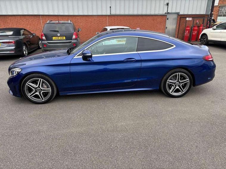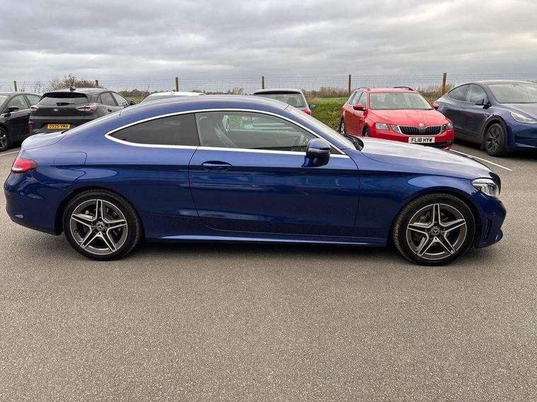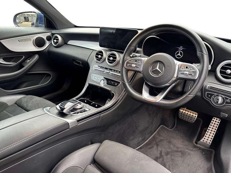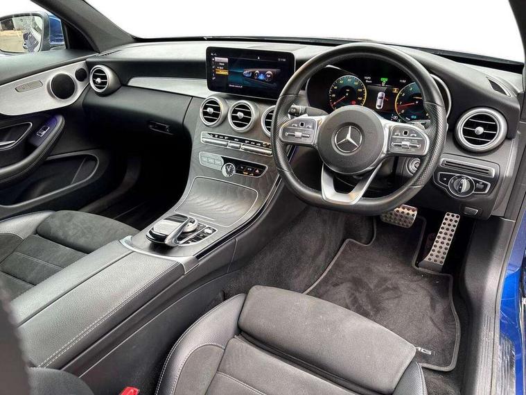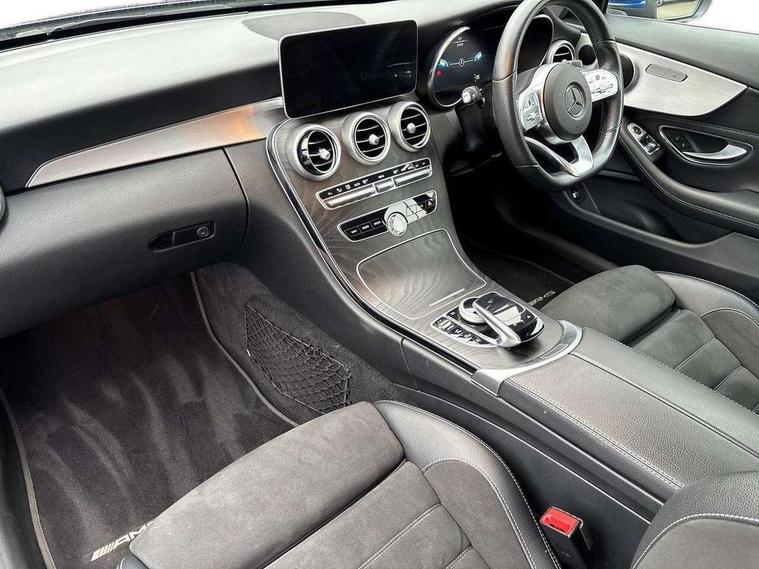 12.3" Active TFT crystal driver's instrument display, Active park assist with parktronic system, Attention assist, Bluetooth interface for hands free telephone, Collision prevention assist plus, Comand Online HDD Nav with media interface, radio/CD/DVD/MP3, 10.25 screen, linguatronic voice control, DYNAMIC SELECT with a choice of driving modes (ECO, Comfort, Sport, Sport+ and Individual), ECO start/stop function, Mercedes me connect including emergency call system, accident recovery, breakdown management and maintenance, Multi function trip computer, Outside temperature display, Pre-wiring for SD navigation system, Remote boot release, Reversing camera, Service indicator (ASSYST), Smartphone integration with Apple CarPlay and Android auto, Sports direct steer speed sensitive steering, Status display for rear seat belts in instrument cluster, Wireless charging, 66l fuel tank with increased capacity, 9G Tronic plus 9 speed automatic, Petrol Particulate Filter, Sport exhaust system, Audio 20 with integrated media interface and bluetooth handsfree function, DAB digital radio tuner, Mid-range sound system, SD card slot, Two USB ports and one SD Card slot in centre console, Adaptive brake lights, AMG front, rear apron and side skirts, Body coloured bumpers, Body coloured door mirrors, Chrome grille surround, Chrome pins diamond radiator grille with integrated stars, Door sill panels with Mercedes Benz lettering, Electric windows with one touch opening/closing and obstruction sensors, Exterior mirrors heated and electronically adjustable, Full LED tail lamps, Green tinted glass, LED daytime running lights, LED Indicators, LED third brake light, Multi beam LED headlights, Privacy glass (rear side windows and rear screen), Radio aerial integrated into rear window, Rain sensor windscreen wipers, Side windows surround in polished aluminium, Visible twin pipe exhaust trim integrated into rear bumper, 2 cupholders in front centre console, 2 rear head restraints, 3 spoke AMG flat bottom multi-function nappa leather steering wheel with touch controls, 40:20:40 split folding rear seats, AMG sports seats, Artico man-made leather upper dashboard and beltlines with contrast stitching, Auto Mercedes-Benz child seat recognition sensor, Black floor mats with AMG lettering, Electrical height and back adjustment front seat, Front centre armrest with storage compartment, Front head restraints, Front LED reading lights, Heated front seats, Illuminated glove compartment stowage, Interior lighting - 64 colour Ambient lighting, Sports pedals with stainless steel surfaces and rubber studs, Steering wheel audio controls, Steering wheel gearshift paddles, Sunvisors with illuminated vanity mirrors, THERMATIC 2 zone automatic climate control, Interior lighting package - C Class, Mirror package - C Class, Seat comfort pack - C Class, Stowage space pack - C Class, 2 rear seatbelts, 3 point automatic seatbelts, Active bonnet, Adaptive brake system with hold function, hill start assist and brake drying function, Anti-lock braking system (ABS), Automatic seatbelt pretensioner for driver and front passenger, Black seat belts, Brake calipers with Mercedes-Benz lettering + perforated brake discs, Dual stage airbags - driver and front passenger, front sidebags, driver kneebag, pelvis bag and windowbags for driver, front and rear passengers, Electronic parking brake, Electronic Stability Programme (ESP), ISOFIX child seat attachment points with top tether in rear, Tyre pressure monitoring system, Warning triangle and first aid kit, Anti-theft alarm system/interior protection with tow-away protection and interior monitoring systems, Central locking with interior switch, automatic locking and crash sensor with emergency opening function, Chrome surround electric key, Immobiliser, KEYLESS-GO starting function, Black ash wood with brushed aluminium trim,