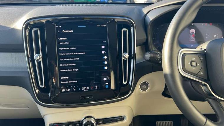 12.3" Progressive Driver Display, 360 degree surround view parking camera with side proximity sensors, 9" centre console portrait touch screen, Adjustable steering wheel force, Apple carplay (wired), Bluetooth handsfree system, Driver alert control, Driver assistance (pilot assist and adaptive cruise control), Driver awareness - Blind spot information system with steer assist, cross traffic alert with autobrake and rear collision warning and mitigation, E-call, Google automotive services - Enabled entertainment apps, navigation with google maps, voice recognition with google assistant, Hands free power tailgate, Intelligent speed assistance, Lane keeping aid, Oncoming Lane Mitigation, Speed sensitive steering, Volvo cars services with app - Driving journal, emergency and breakdown call, engine remote start, remote door locking/unlocking and vehicle dashboard, Wireless/Inductive Mobile Phone Charging, Automatic transmission with start/stop and manual change functions, Dynamic chassis, DAB Digital radio, Premium Sound by Harman Kardon, Dolby Pro Logic II Surround Sound, Dirac Unison, 12 speakers/600W and subwoofer, Steering wheel mounted remote controls, Active bending pixel LED headlights with adaptive shadow technology, Active high beam incorporating daytime running lights, Adaptive brake lights with high level LED brake lights, Auto dimming feature for exterior door mirrors, Auto dimming interior mirror, Automatic headlamp levelling, Dark tinted windows - rear side windows and rear screen, Front aluminium tread plates, Front and rear electric windows, Headlight cleaning system, High gloss black front and rear skid plate, High gloss black front bumper deco, High gloss black mesh front grille with high gloss black surround, High gloss black window trim, Home safe and approach lighting, Integrated roof rails in high gloss black, LED front fog lights with cornering function, Power glass tilt and slide panoramic sunroof with sun curtain, Puddle lights, Rain sensor with automatic windscreen wiper activation, Rear side wing doors, Rear wiper, Roof antenna, Roof spoiler, Visible VIN plate, 12V socket in front tunnel console and luggage compartment, 2-Zone electronic climate control with CleanZone air quality system and pollen filter, 3 seat bench in 2nd row, 3 Spoke tailored steering wheel with chrome trim, 60/40 versatile split folding rear seat, Centre console cupholders and storage, Flexible load floor and grocery bag holder, Floor mats, Front cabin courtesy lights, Front door pocket, front cupholder, ambient front door, rear reading, rear courtesy, instrument panel and tailgate lighting, Front footwell illumination, Front headrests, Front reading lights, Front seat cushion extensions, Front side step illumination (under door), Glovebox bag hook, Heated front seats, Height/reach adjustable steering column, High gloss centre tunnel deco, Illuminated glovebox, Illuminated luggage compartment, Illuminated vanity mirrors + ticket holder, Integrated waste bin, Isofix attachments on outer rear seats, Load cover, Load protection net, Multi directional lumbar support for driver and passenger seat, Power driver seat with memory + exterior mirrors memory, Power folding rear headrests, Power passenger seat, Rear armrest with cupholders, Single front passenger seat, Underfloor cargo storage, Climate pack without heated front seats - XC40, 3x3 point rear seatbelts, City safety with steering support with Pedestrian + cyclist + front collision warning with full auto brake and rear auto brake, Driver and passenger airbags, Drivers knee airbag, Electronic parking brake with auto hold, First aid kit, Front and outer rear seatbelt reminder and pretensioners, Front seats SIPS airbags, Hill descent control, Hill start assist, Inflatable curtain, Passenger airbag cut-off device, Power child locks on rear doors, Road sign information display, Run off Road Protection, SIPS (Side Impact Protection System), Slippery road and hazard light alert, Stability and Traction Control with Spin control, Engine Drag Control and Corner Traction Control, Tyre pressure monitoring system, Vehicle deceleration control with Anti-lock Brake System, Electronic Brake Distribution and Emergency Brake Assist, Warning triangle, WHIPS whiplash protection system - front, 2 x Key integrated remote control central locking including with deadlocking system and auto open/close windows and sunroof, Anti-theft alarm including immobiliser/volume sensor + level sensor, Keyless drive includes keyless entry and keyless start, Locking wheel nuts,
