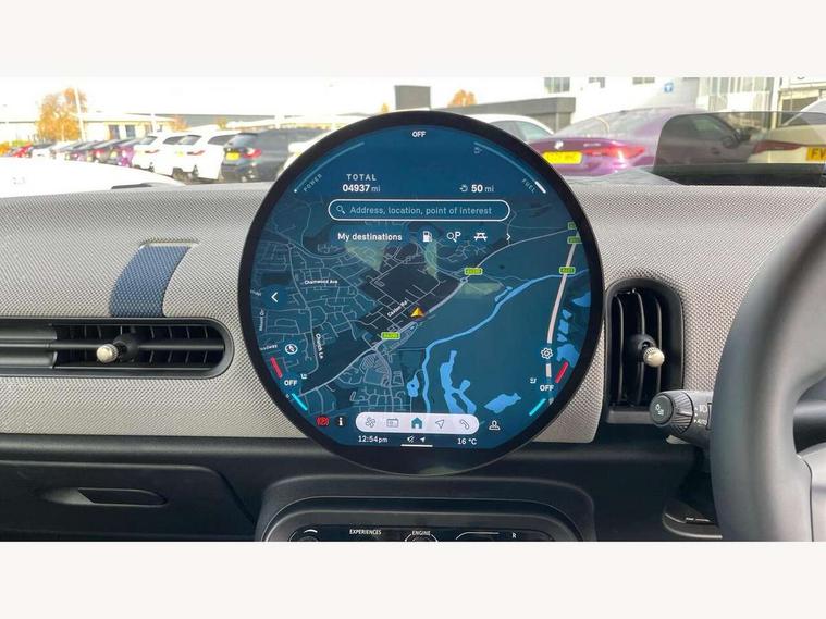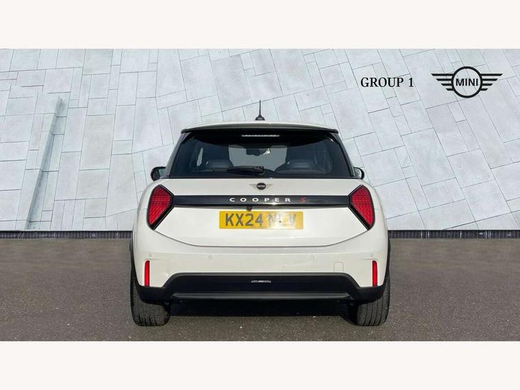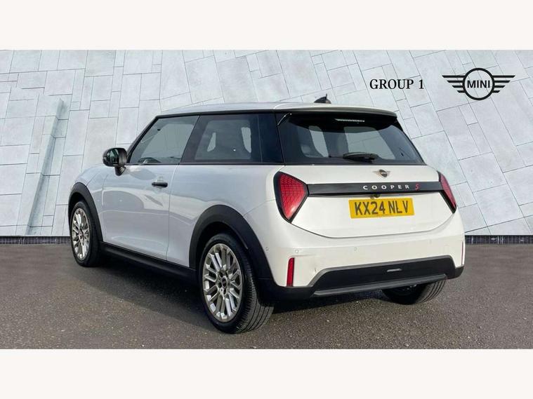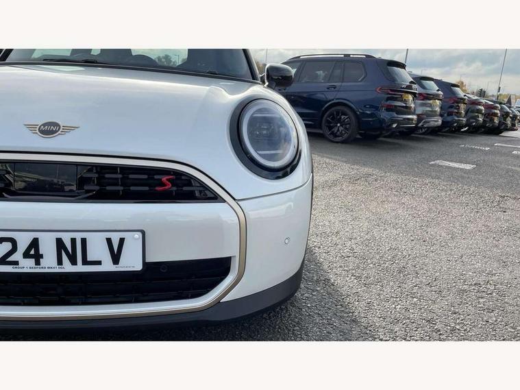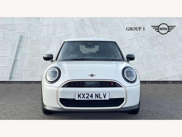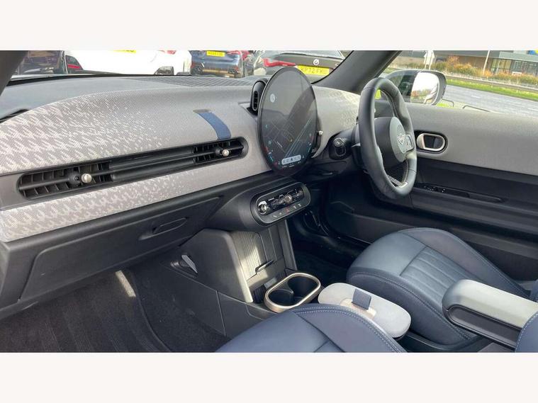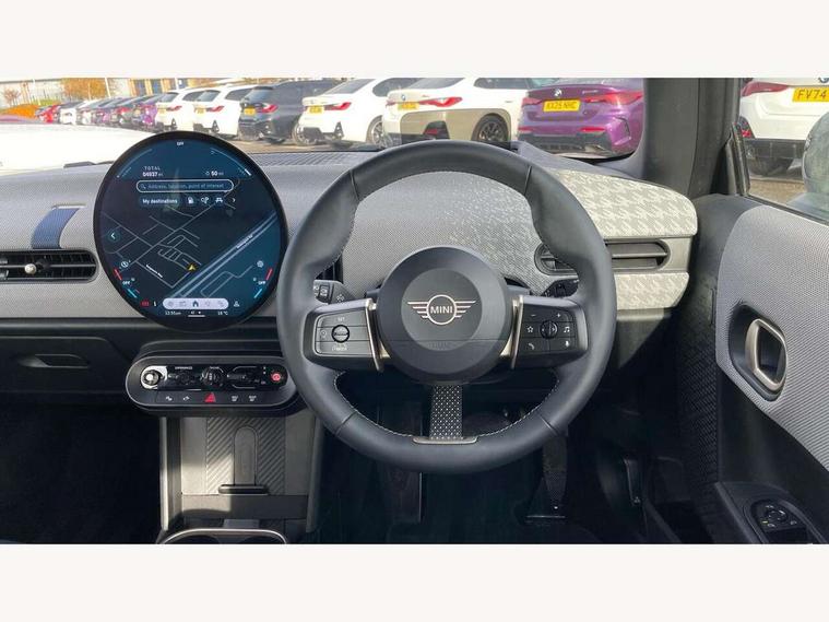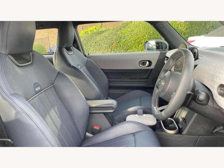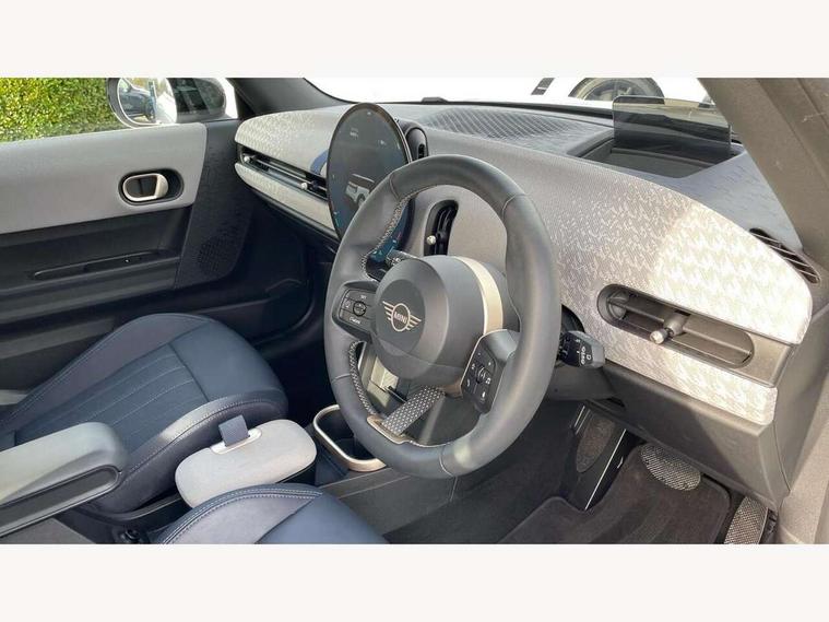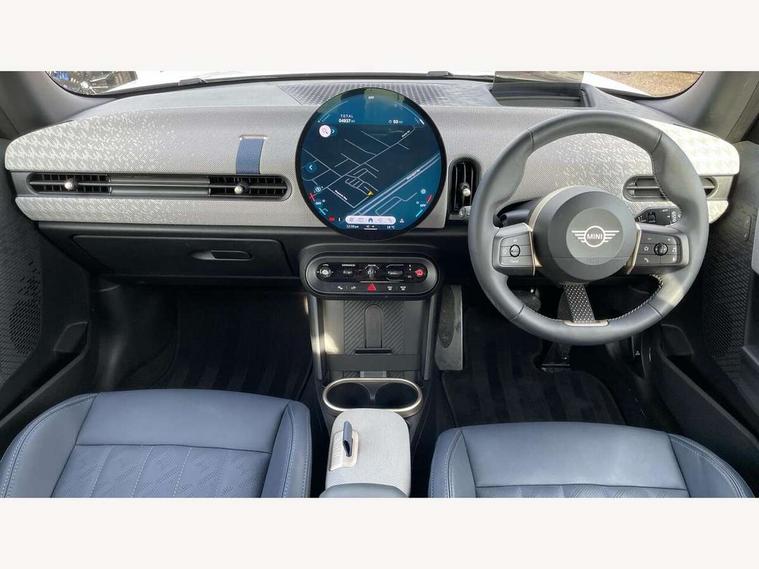 Central toggle bar, Circular OLED Screen, Compatible mobile phone bluetooth with audio streaming, Cruise control, Digital instrument cluster, Electro-mechanical speed dependant steering assistance, Emergency call service, MINI Experience Modes, Mini navigation system, On board computer, Service interval indicator, 7 speed steptronic transmission with double clutch, DAB Digital radio, Auto headlights, Electric adjustable heated door mirrors, Electric front windows, Heated rear window, Heated windscreen washer jets, LED daytime running lights, LED indicator lights, LED rear lights, Logos in Vibrant Silver, Rain sensor window wipers, Rear fog lights, Rear window wiper, Vibrant silver grille surround, 2 seat bench in second row, 2 zone automatic air conditioning, 60/40 rear seat bench, Ambient lighting, Cupholders, Dark headliner, Floor mats, Front and rear head restraints, Front compact armrest, Heated steering wheel, Height adjustable passenger seat, Lidded storage box in grey knit, Luggage compartment lighting, Single front passenger seat, Sport Vescin Steering Wheel, Sunvisors with vanity mirrors, Vescin synthetic leather upholstery, Driving assistant pack - Cooper Hatchback, Level 1 pack - Mini Hatchback, Park assistant pack - Cooper Hatchback, 3 point seatbelts on all four seats, 6 Airbags - front, side, head and seat belt tensioners, Acoustic pedestrian protection, Anti-lock braking system (ABS), DSC - Dynamic Stability Control, Electronic parking brake, Front and rear disc brakes, Front ISOFIX (iSize), Front passenger airbag deactivation, Traction control, Tyre pressure monitoring system, Alarm, Immobiliser, Remote central locking, Blue decorative dash strap, Light Beige/Grey dash knit, Tyre repair kit,