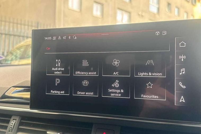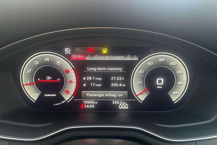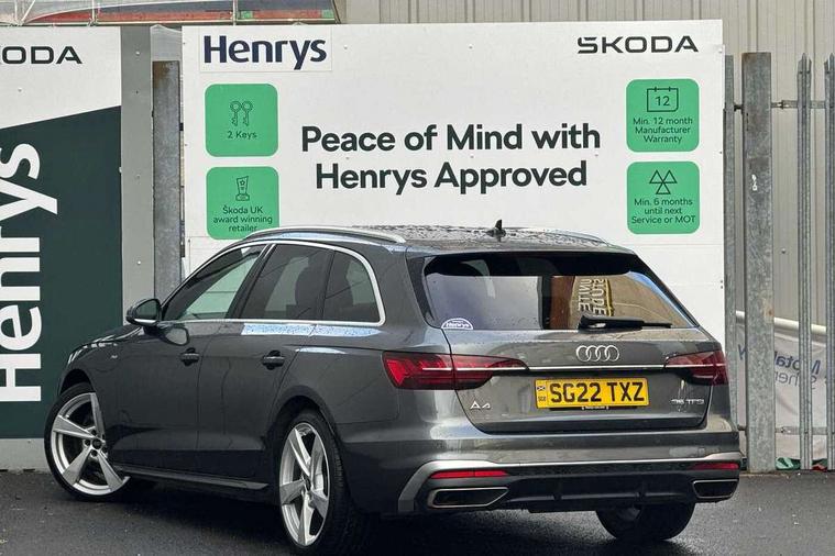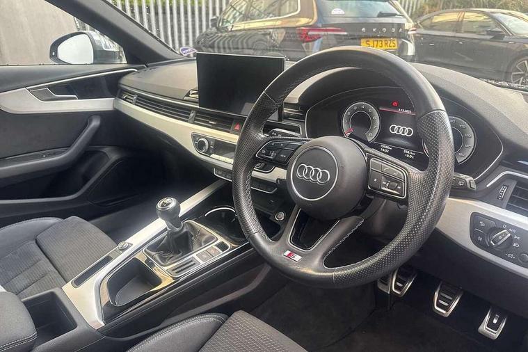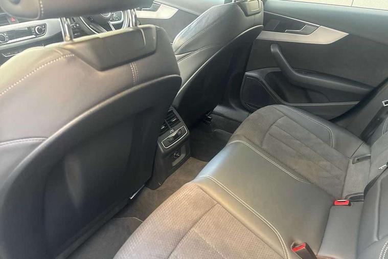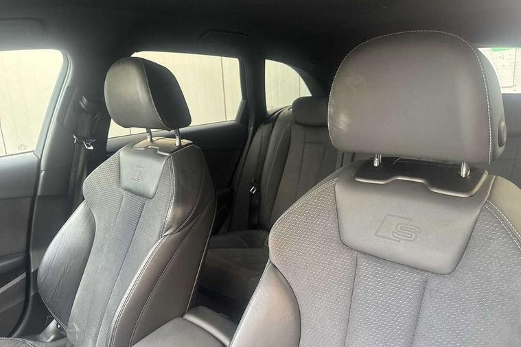 Audi connect safety and service (e-call), Audi connect with Amazon Alexa Integration, Audi drive select, Audi parking system plus with front and rear sensors, Audi smartphone interface, Audi virtual cockpit, Automatic start-stop system with coasting functionality and efficiency programme, Bluetooth interface, Cruise control system with speed limiter, Electromechanical power steering, Email, calendar and text messages displayed via MMI, MMI Navigation plus with MMI touch includes 10.1" high resolution colour MMI display, 3D map, Power operated tailgate, Rear view camera, Voice control system, 54 litre fuel tank, Sports suspension lowered by 23mm, 2 USB charging ports, 8 passive loudspeakers, DAB digital radio reception, Aluminium roof rails, Auto dimming rear view mirror, Body colour door handles, Body colour front spoiler lip, Body colour side sill trim, Body coloured door mirrors, Electrically folding auto dimming/adjustable/heated door mirrors with LED side indicators and kerb view function for passenger side, Grained matt black side air inlets with matt aluminium silver inlay, High beam assistant, Honeycomb structure radiator grille in grained matt black, LED headlights with LED rear lights + dynamic rear indicators + headlight adjustment and high beam, turning light + LED daytime running lights, LED third brake light, Matt aluminium silver tailpipe trim, Privacy glass, Rain and light sensors, Rear side wing doors, Rear wiper, S Line badges on the front wings, S line front and rear bumpers with side skirts, S Line rear diffuser in matt titanium black with trim strip in matt aluminium silver, S Line roof edge spoiler, Windscreen with acoustic glazing, 4 way electric lumbar support for driver and front passenger, 40/20/40 split folding 3 rear seat bench in 3 parts with rear centre armrest, Black cloth headlining, Black perforated leather gearknob, Contrast stitching on seats, steering wheel and gear lever gaiter, Deluxe 3 zone electronic climate control, Door sill trims with aluminium inlay, Electric load area cover, Front and rear head restraints, Front centre armrest, Heated front seats, Illuminated door sill trims with S logo, ISOFIX child seat mounting and top tether, Manual seat adjustment, Single front passenger seat, Stainless steel pedals and foot rest, High gloss package - A4, LED Interior light pack - A4/S4, 3 rear seatbelts, 6 airbags - Driver, front passenger, curtain and side windows, Electronic Stabilisation Control (ESC) including ABS, ASR and EDL, Hill hold assist, Multi collision brake assist, Pop-up bonnet for pedestrian protection, Pre sense city, Rear door child safety locks, Seatbelt monitoring, Warning triangle and first aid kit, Anti theft alarm, Anti theft wheel bolts, Keyless Go, Matt brushed aluminium inlays, Tool kit, Tyre repair kit,