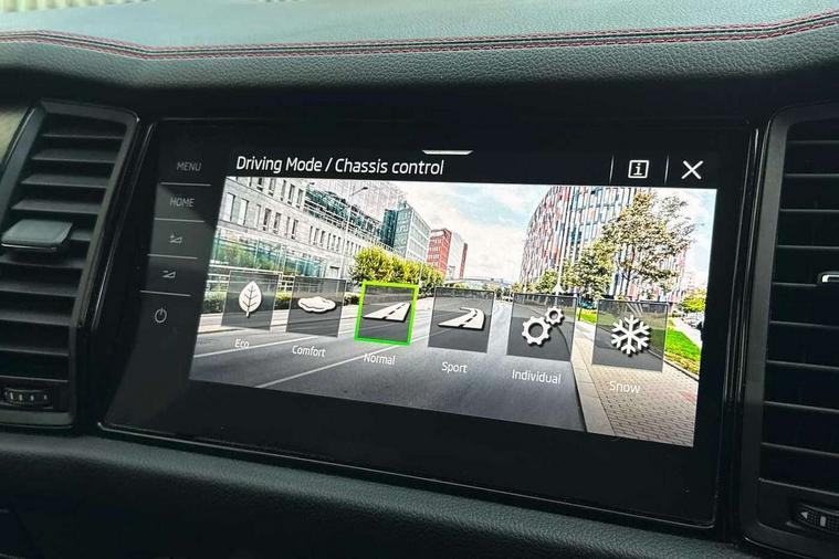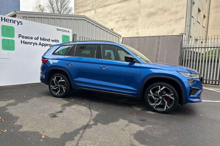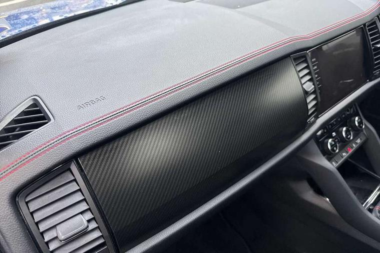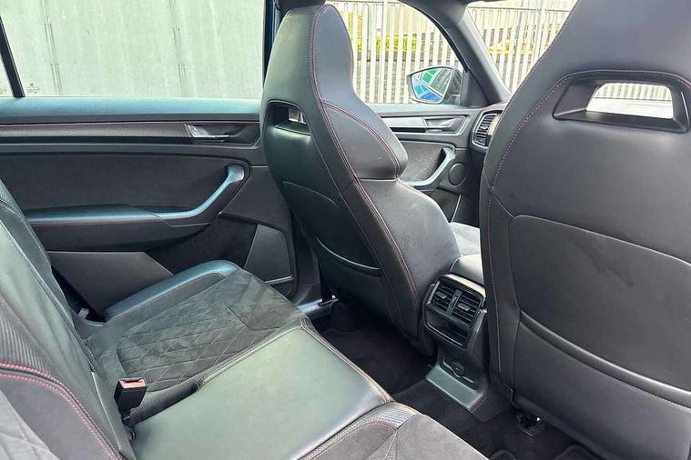 Bluetooth system, Columbus satellite navigation with 9.2" touchscreen, integrated Wi-Fi, web radio, Digital voice enhancement, E-call, ECO Stop/start function, Exterior temperature indicator, Progressive steering, Rear view camera, Smartlink wireless for apple carplay and wired for android auto, Speed limiter, Tailgate unlocking from outside, USB C Port x 2 in front centre console, Virtual Cockpit - 10.25" digital display, Wireless charging, Dynamic Chassis Control including off-road function, 8 Speakers, DAB Digital radio, Dynamic sound booster, Aero front windscreen wipers with intermittent function, Aero rear window wiper, Auto dimming rear view mirror, Black wheel arch surrounds, Body colour bumpers, Body colour door handles, Chrome exhaust tailpipe, Electric adjustable/heated/folding door mirrors, driver side auto dimming with boarding sports and memory function, Electric front and rear windows, Extended rear spoiler with finlets in gloss black, Front fog lights, Full LED matrix headlights with AFS (adaptive front light system), cornering function and AWL (all weather lighting system), Gloss black door mirrors, Gloss black roof rails, Heated rear window, LED daytime running lights, LED rear fog light, LED third brake light in rear spoiler, Light assistant (coming/leaving home/tunnel light), Off-road style lower front bumper element, Privacy glass, Rain and light sensors, Rear diffuser, Rear LED lights (high functionality) with welcome effect and dynamic indicators, Rear side wing doors, Safety reflectors on front and rear doors, vRS exterior design - vRS front and rear bumpers with vRS badging (gloss black on tailgate and chrome on radiator grille) + black window surround, Window control switches with black trim, Without engine designation, 12V socket in boot, 2 rails with 2 hooks, 2 seat bench in 3rd row, 3 seat bench in 2nd row, 4 foldable roof handles with rear coat hooks, 60:40 foldable rear seat with sliding adjustment and backrest angle adjustment, Aluminium pedals, Black roof headlining, Bottle holders in door panel in the 1.5 litre front and 1 litre rear, Cargo storage compartments, Chrome headlight control button, Chrome interior door handles, Coat hooks on B pillar, Covered storage compartment on driver side, Front centre armrest with storage compartment, cup holder and 12V socket, Front courtesy lights, Gear shift lever with chrome frame and black gloss insert with vRS logo, Height adjustable front headrests, Illuminated and cooled glovebox, Illuminated luggage compartment, Isofix child seat fittings in outer rear seats with top tether, Manually adjustable steering column, Microsuede door panels with vRS black stitching, Net programme in boot (1x horizontal Net, 2x vertical Nets), Overhead glasses storage compartment, Pollen filter, Rear centre armrest with cupholders, Single front passenger seat, Sliding trunk cover, Small Bags on the inner sides of the front backrests, Sports seats, Sunvisors with illuminated vanity mirrors, Three rear height adjustable headrests, Ticket holder on A Pillar, Umbrella in door panel, Variable boot floor, vRS red stitching in front and rear armrests and door panel armrests, LED Interior light pack - Kodiaq, Auto door release and activation of warning lights in the event of an accident, Child locks on rear doors, Driver and front passenger airbag with knee airbag and front passenger airbag deactivation, Electronic parking brake with hill start assist, Emergency rear braking signal, ESC (incl. ABS+MSR+ASR+EDS+HBA+DSR+RBS+MKB), Front assist with autonomous emergency braking, Front side airbags with curtain airbags, Fuel cut off safety device, Height adjustable front 3 point seatbelts + pretensioners, Hill hold control, Rear disc brakes, Red brake calipers, Safety vest holder in door, Seat belt reminder for all seats, Three point rear seat belts, Two tone horn, Tyre pressure monitor, Alarm with interior monitoring and tilt sensor with safe function, Anti-theft wheel bolts, Immobiliser, Keyless entry and start system (KESSY), Remote central locking with 2 keys, Black air vent surround, Carbon finish dashboard and door inserts, Red stitching in dashboard, 20" Sagitarius anthracite alloy wheels with aero covers, Temporary spare wheel (space saver),