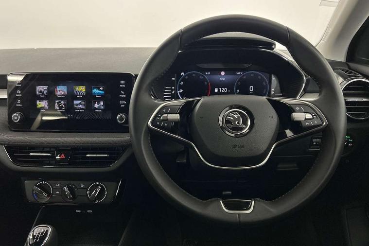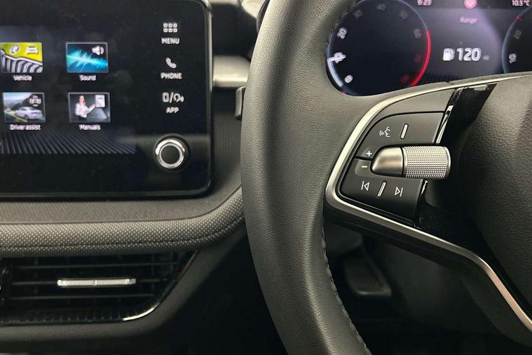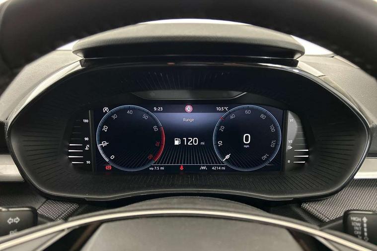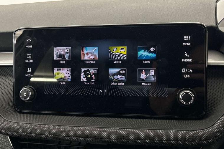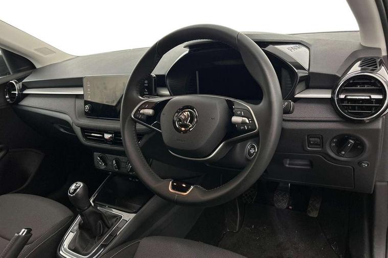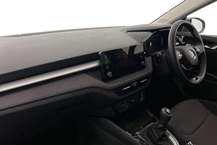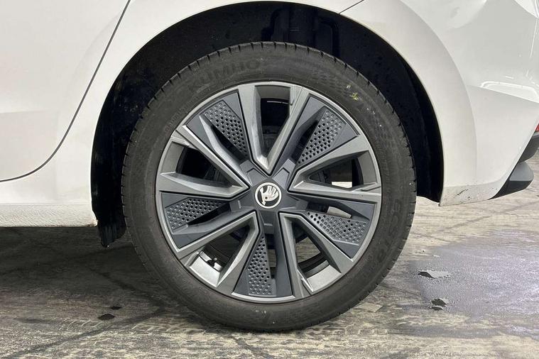 Advanced driver attention and drowsiness monitor, Bluetooth connection, Electromechanical power steering, Exterior temperature gauge, Service interval indicator, Traffic sign recognition, Virtual cockpit with 10.25" colour display, Wireless SmartLink for Apple CarPlay and Android Auto, 6 Speakers (4 in front and 2 in rear), Auxiliary socket for external MP3 player, DAB digital radio reception, Body coloured bumpers, Dimming rear view mirror with black frame, Door mirror integrated indicators, Front and rear electric windows, Front window wiper intermittent control, Headlight range control - Automatic, Ice scraper in fuel cap, LED daytime running lights with coming and leaving home feature, LED rear lights, Privacy glass, Rear LED fog light, Rear side wing doors, Rear window wiper with washing nozzles, Roof mounted spoiler, SKODA tailgate lettering in chrome, Third brake light, 2 reading lights in front and 2 reading lights in rear, 3 rear headrests, Backrest split and folding, Central console with removable cup holder and storage box, Chrome handbrake release button, Fabric upholstery, Front centre armrest, Gearshift knob/handle in leather, Grain satin black interior door handles, Hand brake lever handle in leather, Height adjustable front headrests, Height adjustable front seats, Height adjustable steering wheel, ISOFIX and TopTether anchorage points to the outer rear seats, ISOFIX and TopTether on the front passenger seat, Luggage compartment lighting, Manually adjustable lumbar support in front seats, Pollen filter, Rear seat bench unsplit, Single front passenger seat, Storm grey headlining, Sun visors with mirror and airbag label on passenger side, Textile floor mats, Ticket holder, Umbrella in drivers door, 3-point height adjustable front seats belts with pretensioner and force limiter, Automatic warning lights in case of crash, Driver and passengers airbag with switch off function, e-Call+, ESC including ABS, MSR, ASR, EDS, HBA and XDS, Front and rear seat belt warning, FRONT ASSIST (AEB City and AEB Inter Urban), Front side airbags, Head airbags, One tone horn, Pedestrian protection, Three rear 3-points safety seat belts with pretensioner and force limiter including stop function for outer rear seat belts, Tyre pressure monitoring system, Anti-theft alarm system including immobiliser, interior monitoring, backup horn, and towing protection, Central locking with radio remote control, interior controls, SAFE function and 2 foldable keys, Colour Edition air vents, Grain satin black central console cover, Metallic grey upper decorative trim, Satin black door and side trim panel in front, Textile Kota grey lower decorative inserts, Anti-theft wheel bolts protection, Super-low rolling resistance tyres,