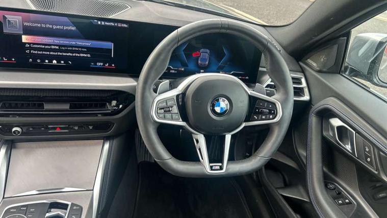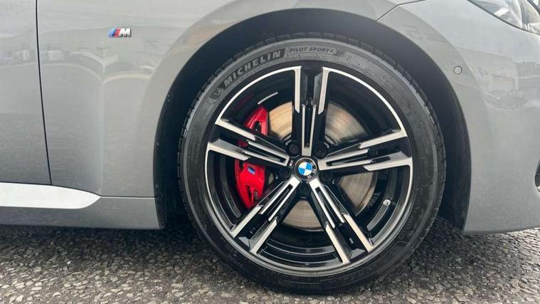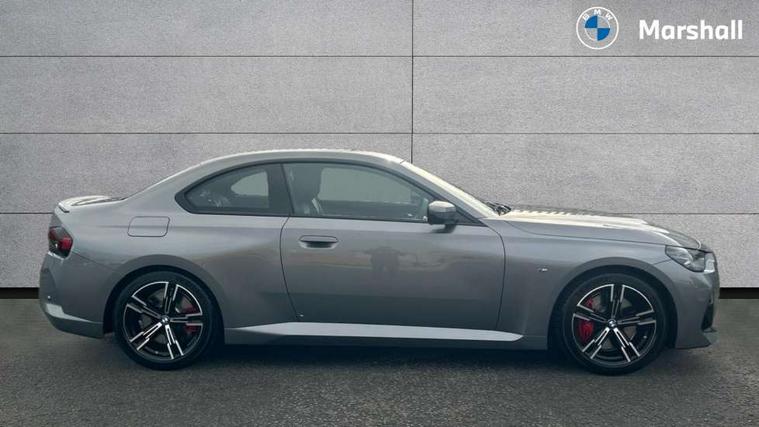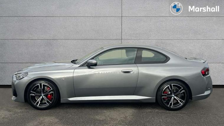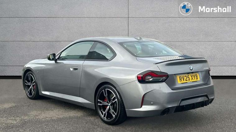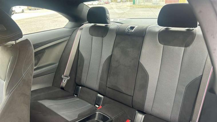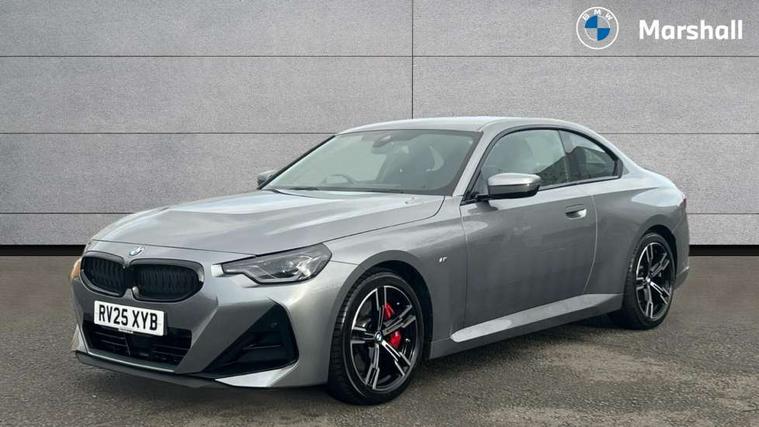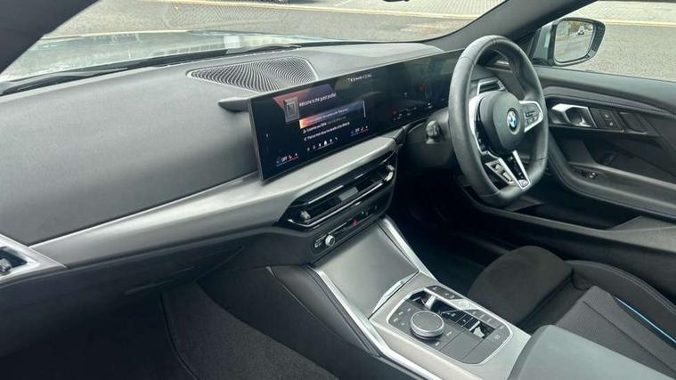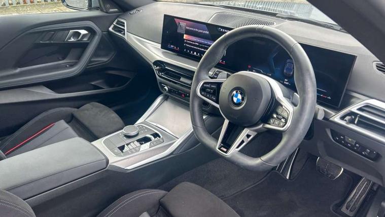 2 USB connections for charging and transferring data, Active guard plus, Attentiveness assist, Bluetooth with USB, BMW ConnectedDrive online services, BMW Intelligent Personal Assistant, BMW Live cockpit plus, BMW operating system 8 with variable, configurable widgets display information in real time, BMW Teleservices, Check Control warning system for monitoring of lights and door/luggage compartment open warning, Control Infotainment, Direct selection buttons, Drive off assistant, Eco pro mode, Electric power steering, eSim with 5G connectivity, Front and rear parking sensors, iDrive controller with turn and press function, Integrated owners handbook, Intelligent functions, Oil sensor for level and grade, Optimum shift indicator, Personal Profile, Smartphone integration, Touch operation on control display, Variable sport steering, Widescreen multi-media display, WiFi interface for wireless connection of mobile terminal devices, Aluminium lightweight construction, Balancer shaft, BMW TwinPower Turbo four-cylinder petrol engine, Double VANOS, Drive performance control with ECO PRO comfort + sport mode, Electronic differential lock, High precision injection, M sport suspension, Petrol Particulate Filter, Steptronic transmission with gearshift paddles, Twin scroll turbocharger with Valvetronic, DAB tuner, Acoustic windscreen wipers for reduced driving noise, Automatic windscreen wipers and automatic headlight, Body colour door handles flush with door surface, Body colour door mirrors, Body colour front and rear bumpers, Daytime running lights, Electric windows - front and rear, with open/close fingertip control and trap release, Exhaust tailpipes x2 - 90mm in left and right, Fading support, Front and rear bumper system with replaceable deformation elements, Front door sill finishers in black plastic with BMW designation, Front windscreen wipers with integrated washer jets, Green tinted heat protection glazing, High beam assistant, High gloss black sill, bumper trim sides and diffuser insert, High level third brake light, Indicators integrated int mirror housing, Interior rear-view mirror with automatic anti-dazzle function, LED registration plate light, LED technology rear tail lights, brake lights and turn indicators, Lightweight engineering, M high gloss shadowline, One piece kidney grille with hight gloss chrome surround, Rear boot, Rear fog lights, Reversing light in rear light cluster, Shark fin antenna, Single part LED rear lights with smoked glass components, Trailer stabilisation logic, Visible VIN plate, 12V power socket in front centre console with blanking plug, 2 cupholders in front centre console, 2 zone automatic air conditioning, Ambient lighting, Compartment in front of cupholder, Conditioned based service, English handbook, Folding rear seat head rests, Front and rear side armrests integrated into door trim, Front armrest, Front door pockets, Front head restraints, Heated front seats, Illuminated glove compartment with separate small compartment, M headliner Anthracite, M sport leather steering wheel, Manually adjustment steering wheel column, Rear seat backrest with manual 40:20:40 split folding, Rear seat centre foldable armrest with integrated cup holder, Single front passenger seat, Storage compartment between rear seats, Storage tray and compartment with cover in centre console, Sun visors with vanity mirrors and insert tab, Through loading system with 40/20/40 split folding 2 rear seat in 2nd row, Velour floor mats, Additional storage compartment pack without USB - 2 Series Coupe, Connected pack professional - 2 Series Coupe, 2 tone horn, Anti lock braking system (ABS) with cornering brake control, Automatic Stability Control (ASC), BMW emergency call, Brake drying, Child seat ISOFIX attachment for the two outer rear seats, Crash sensor activating of airbags, Unlocking doors, hazard warning lights, interior light, safety battery terminal, Deactivation of fuel pump in the event of a crash, Driver and front passenger airbags, Driver and front passenger side airbags, integrated in the door side seat backrest bolsters for all seat variants, Dynamic brake control, Dynamic stability control + (DSC+), Dynamic Traction Control - DTC, Electrically operated hand brake including automatic hold function and automatic release when driving off, Front and rear disc brakes, Front centre airbag between driver and front passenger seats, Front passenger airbag deactivation, Head airbags for all 4 outer seats, PC iBrake (Post crash approach control warning with light braking function), Seat belt security check for driver and front passenger, Seatbelt warning, Side impact protection, Three point seat belts on 4 seats including front belt stopper, pyrotechnic belt tensioners and belt force limiters, Tyre pressure monitoring system, Warning triangle and first aid kit, Alarm system (Thatcham 1) with remote control and electronic engine immobiliser, Central locking switch for all doors, fuel filler cap and luggage compartment, Deadlocking function system to all doors, Drive away locking system on all doors and luggage compartment, Locking wheel bolts, Start/Stop button (illuminated) in centre console with keyless engine start and Auto Start-Stop deactivation button, Two remote control key with integrated key - one button for open and close doors/fuel flap/tailgate and separate button for unlock luggage compartment, Electrically powered 12V compressor, Reduced rolling resistance tyres, Tyre repair kit,