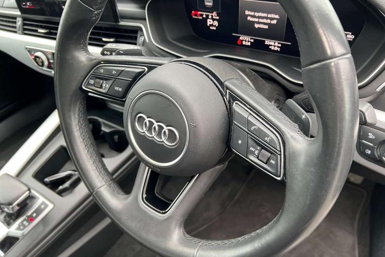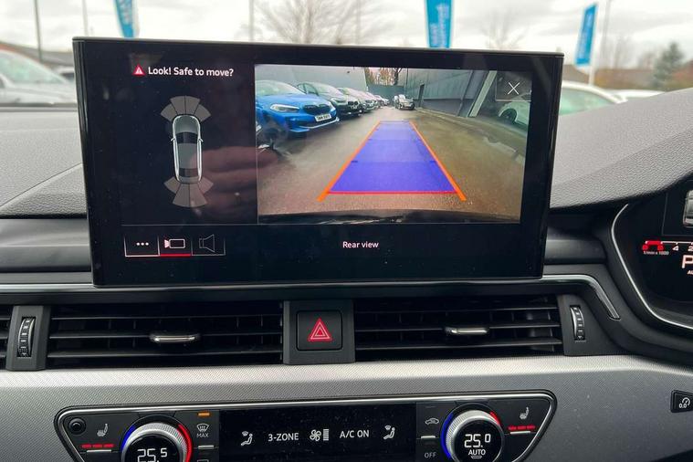 Audi connect safety and service (e-call), Audi connect with Amazon Alexa Integration, Audi drive select, Audi parking system plus with front and rear sensors, Audi smartphone interface, Audi virtual cockpit, Automatic start-stop system with coasting functionality and efficiency programme, Bluetooth interface, Cruise control system with speed limiter, Electric boot lid release, Electromechanical power steering, Email, calendar and text messages displayed via MMI, MMI Navigation plus with MMI touch includes 10.1" high resolution colour MMI display, 3D map, Rear view camera, Voice control system, 54 litre fuel tank, Comfort dynamic suspension, 2 USB charging ports, 8 passive loudspeakers, DAB digital radio reception, Auto dimming rear view mirror, Body coloured door mirrors, Electrically folding auto dimming/adjustable/heated door mirrors with LED side indicators and kerb view function for passenger side, LED headlights and rear lights with LED daytime running lights, New design rear diffuser, Rain and light sensors, Windscreen with acoustic glazing, 3 spoke high multi-function leather sport steering wheel with paddle shift and height and reach adjustable, 4 way electric lumbar support for driver and front passenger, 40/20/40 split folding 3 rear seat bench in 3 parts with rear centre armrest, Deluxe 3 zone electronic climate control, Door sill trims with aluminium inlay, Front and rear head restraints, Front centre armrest, Heated front seats, Interior lighting, ISOFIX child seat mounting and top tether, Manual seat adjustment, Tool kit, High gloss package - A4, 3 rear seatbelts, 6 airbags - Driver, front passenger, curtain and side windows, Electronic Stabilisation Control (ESC) including ABS, ASR and EDL, Hill hold assist, Multi collision brake assist, Pop-up bonnet for pedestrian protection, Pre sense city, Seatbelt monitoring, Warning triangle and first aid kit, Anti theft alarm, Anti theft wheel bolts, Keyless Go, Tyre repair kit,