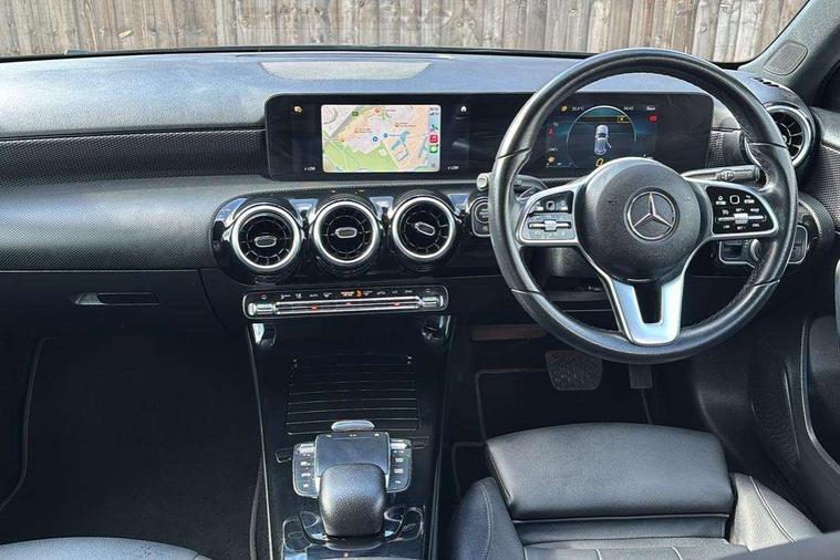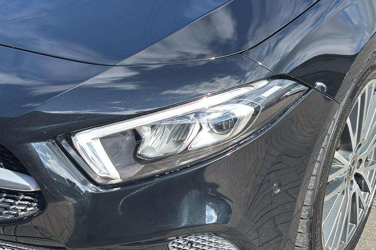 10.25" media display, 180 degree rear view camera with parking guidelines, 7" colour screen in instrument panel, Active parking assist with visual and audible warning of detected obstacles, Attention assist, Brake pad wear indicator warning light, Car wash mode, Cruise control + speed limiter, Direct steering, Dual bluetooth interfaces, DYNAMIC SELECT with a choice of driving modes (ECO, Comfort, Sport and Individual), ECO start/stop function, Fluid level warning indicator for fuel, oil, coolant and washer fluid, Hard-disk navigation, Hey Mercedes Voice activation, Lamp failure indicator, Lane keeping system, Mercedes me connect including emergency call system, accident recovery, breakdown and maintenance management, Mercedes me remote services, Outside temperature gauge, Owners manual in English, Pre-installation for private car sharing, Preinstallation for Mercedes Benz link, Service indicator (ASSYST), Smartphone integration with Apple CarPlay and Android auto, Speed sensitive power steering, Trip computer, Ultrasonic sensors positioned in the front and rear bumpers, Lowered comfort suspension, Rear axle torsion beam, 2 USB ports (type C) in rear stowage compartment and one in front of center console, 6 speakers, DAB Digital radio, MBUX multimedia system with DAB digital radio and touchpad including satellite navigation, Mercedes-Benz sound system - 100W, 4 Electric Front and Rear windows, Adaptive brake lights, Automatic headlights, Black weather strip, Body colour bumpers, Body colour door handles, Body colour side skirt, Body coloured door mirrors, Chrome beltline trim, Diamond radiator grille with black pins with one louvre in silver + chrome insert, Electric adjustable and heated door mirrors with integrated LED side indicators, Exhaust system - Twin visible tailpipes in polished stainless steel, Headlamp assist automatic headlamp activation, Heated glass rear windscreen + timer control, LED High level third brake light, LED high performance headlamps with integrated LED daytime running lights, LED tail lamp, Privacy glass, Radio aerial, Rain sensing windscreen wipers with two sensitivity settings, Rear fog lights, Rear side wing doors, Rear wiper, Window line trim strip in chrome, 3 seat bench in 2nd row, 3 Spoke leather multi function steering wheel, 40:20:40 split folding rear seats, Artico man-made leather upholstery, Auto Mercedes-Benz child seat recognition sensor, Black air vents with surround in silver chrome, Black roof lining, Controller on centre console with chrome surround, Front centre armrest with storage compartment, Front comfort seats with adjustable head restraints, Front door sills with Mercedes Benz lettering, Front seat backs luggage nets, Front seat cushion length adjustment, Gearshift paddles on steering wheel, Heated front seats, Height/reach adjustable steering column, Interior mirror with reading lamps in black and frameless, Manual height adjustable front seats, Rear head restraints, Seat occupancy sensor for front passenger seat, Single front passenger seat, Stowage compartment in centre console with retractable cover, Sunvisors with illuminated vanity mirrors, Touchpad on center console, Twin front cupholders, Two zone thermotronic luxury automatic climate control, Velour floor mats, Light and sight pack - A Class, Mirror package - A Class, Seat comfort pack - A Class, 3 rear 3 point seatbelts, ABS with Brake Assist, Active bonnet, Active brake assist includes forward collision warning system with autonomous braking, Adaptive brake assist with hold function and hill start assist, Black seatbelts, Childproof locks manually operated for rear doors and electrically operated for rear power windows, Crash responsive emergency lighting, Driver and passenger head and side airbags, Drivers knee airbag, Dual stage driver/passenger airbags, Electronic parking brake, ESP curve dynamic assist, ESP with ASR, Front and rear seatbelt reminder, ISOFIX and top tether child seat fixing points in two outer rear seats, Tyre pressure monitoring system, Warning triangle and first aid kit, Window airbags, Alarm system/interior protection/immobiliser, Keyless Go, Remote central locking and crash sensor with emergency opening function, Urban guard vehicle protection system with immobiliser and interior protection, Dark carbon fibre interior trim, 18" multi spoke light alloy wheels painted in himalayas grey with a high sheen finish, Summer tyres, Tirefit sealant kit,