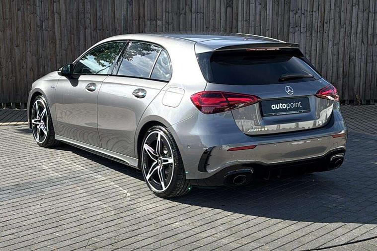 10.25 inch touchscreen central media display, 10.25" Digital instrument cluster display screen, Attention assist, Brake pad wear indicator warning light, Car wash mode, Cruise control + speed limiter, Direct steering, Direction indicators with lane change function, Dual bluetooth interfaces, DYNAMIC SELECT with driving programs (Slippery, Comfort, Sport, Sport+ and Individual), Easy pack tailgate hands-free access, ECO start/stop function, Engine start/stop button, Fluid level warning indicator for fuel, oil, coolant and washer fluid, Hard-disk navigation, Hey Mercedes Voice activation, Lamp failure indicator, MBUX augmented reality for navigation, Mercedes me connect including emergency call system, accident recovery, breakdown and maintenance management, Mercedes me remote services, Outside temperature gauge, Owners manual in English, Pre-installation of private car share, Preinstallation for Mercedes Benz link, Remote boot closing, Service indicator (ASSYST), Smartphone integration with Apple CarPlay and Android auto, Speed sensitive power steering, Trip computer in multifunction display with current consumption indicator, Wireless charging, AMG suspension, DAB Digital radio, MBUX multimedia system, Mercedes Benz advanced sound system (225 W) with 10 speakers, 1 central speaker, speakers on doors, a tweeter on door, one sub woofer + boost amplifier, 4 Electric Front and Rear windows, Adaptive brake lights, AMG body styling - AMG front apron with front splitter and AMG rear apron and visible exhaust tailpipe trim elements, AMG Front apron with flics as air deflector elements on the outer air intakes, AMG radiator grille with twin blade lamella and AMG Lettering, AMG Rear apron with specific diffuser look with four vertical fins and two round chrome plated tailpipe trim elements with a diameter of 90 mm, AMG spoiler lip on roof, Beltline strips in High gloss Black, Body colour bumpers, Body colour door handles with chrome inserts, Body colour side skirt, Electric adjustable and heated door mirrors with integrated LED side indicators, Front splitter and trim elements on the louvres in the outer air inlets, Front wings wheel arches with TURBO 4MATIC lettering, Headlamp assist automatic headlamp activation, Heat insulating dark tinted rear and rear side windows, Heated glass rear windscreen + timer control, LED High level third brake light, LED High Performance headlamps including integral LED daytime running lamps and adaptive highbeam assist, LED tail lamp, Privacy glass, Radio aerial, Rain sensing windscreen wipers with two sensitivity settings, Rear fog lights, Rear side wing doors, Rear windscreen wiper, Wider wheel arches for AMG wheels, Window line trim strip in black, 3 seat bench in 2nd row, 4 way lumbar support, 40:20:40 split folding rear seats, AMG floor mats, AMG Performance steering wheel in nappa leather, Automatic child seat recognition sensor, Black air vents with surround in silver chrome, Black roof lining, Brushed stainless steel sports pedals with rubber studs, Front centre armrest with stowage, Front seat backs luggage nets, Heated front seats, Height/reach adjustable steering column, Illuminated AMG front door sills with changeable cover, Interior lighting - 64 colour Ambient lighting, Interior mirror with reading lamps in black and frameless, Rear armrest with 2 cupholders, Seat occupancy sensor for front passenger seat, Silver coloured aluminium gear shift paddles on steering wheel, Single front passenger seat, Sports seats with integrated headrests, Stowage compartment in centre console with retractable cover, Sunvisors with illuminated vanity mirrors, Twin front cupholders, Two zone thermotronic luxury automatic climate control, AMG night pack - A Class, Light and sight pack - A Class, Mirror package - A Class, Parking pack - A Class, Seat comfort pack - A Class, USB pack plus - A Class, 3 rear 3 point seatbelts, ABS with Brake Assist, Active bonnet, Adaptive brake assist with hold function and hill start assist, Black seatbelts, Bonnet with power domes, Childproof locks manually operated for rear doors and electrically operated for rear power windows, Crash responsive emergency lighting, Driver and passenger head and side airbags, Drivers knee airbag, Dual stage driver/passenger airbags, Electronic parking brake, ESP curve dynamic assist, ESP with ASR, Exit warning, Front and rear seatbelt reminder, Front brake calipers with AMG lettering, ISOFIX and top tether child seat fixing points in two outer rear seats, Tyre pressure monitoring system, Warning triangle and first aid kit, Window airbags, Alarm system/interior protection/immobiliser, Guard 360 degree vehicle protection, Keyless entry lock/unlock, Keyless Go, Remote central locking and crash sensor with emergency opening function, Light longitudinal grain aluminium trim, 19" AMG 5 twin spoke light alloy wheels aerodynamically optimised painted in matt black with high sheen finish, Summer tyres, Tirefit sealant kit,