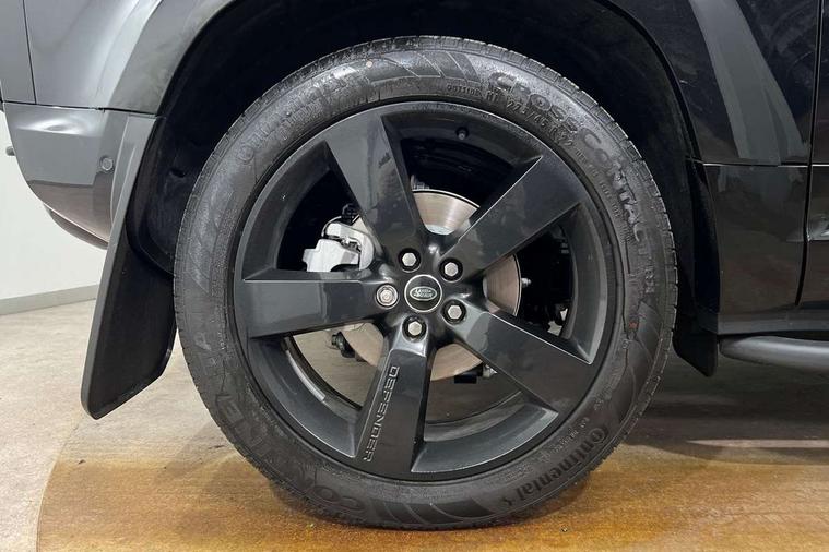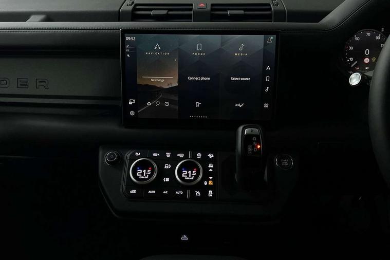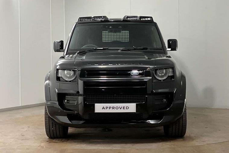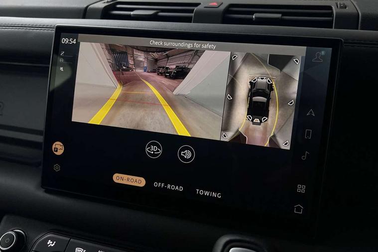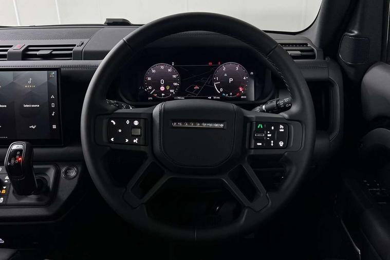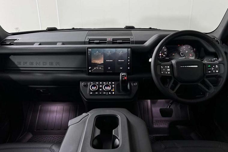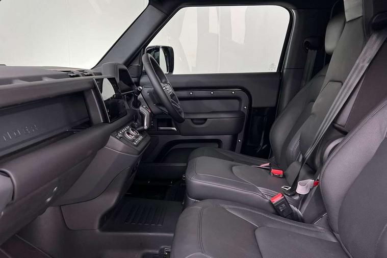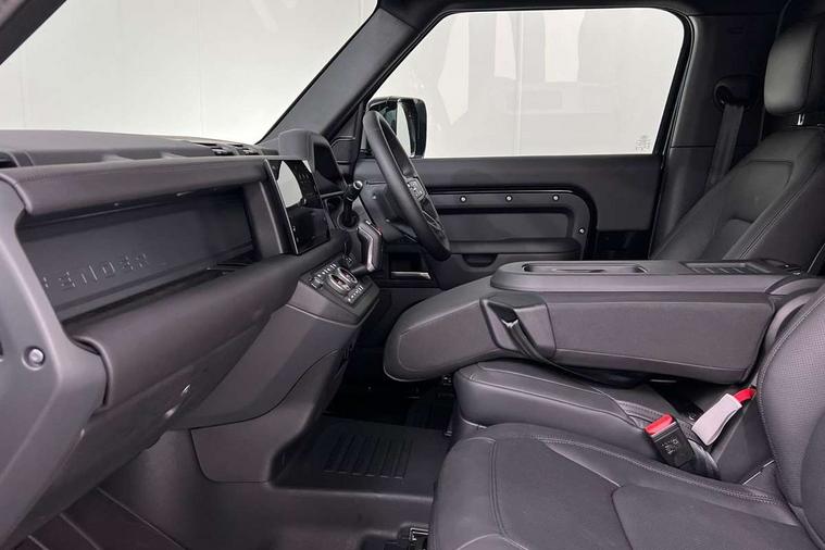 Customer Configurable Autolock, 11.4" touchscreen, 360 parking aid, 3D Surround Camera with 360 View, 180 Rear View, Front Traffic Detection, Forward Vehicle Guidance, Tow Hitch Assist and clear sight Ground View, Adaptive cruise control, Blind spot assist, Brake Hold, Driver condition monitor, Electric power assisted steering (EPAS), Interactive Driver display, Lane keep assist, Low traction launch, Pivi pro connected, Rear collision monitor, Rear traffic monitor, Traffic sign recognition adaptive speed limiter, Trip computer, Tyre pressure monitor, Android Auto, Apple CarPlay, DAB Radio (Digital Audio Broadcasting), Meridian 280W sound audio system with 7 speakers with subwoofer, Alpine lights, Assisted tailgate, Automatic headlight levelling, Automatic headlights and rain sensitive front wipers, Body coloured bonnet, Body coloured exterior Utility Panel, Centre high mounted stop light, Electric heated/power fold door mirrors with approach lights and auto dimming driver side, Electric windows with one touch open/close and anti-trap, Follow me home lighting, Front fog lights, Heated rear window with timer, Heated windscreen, LED tail light, Matrix LED headlights with signature DRL, Privacy glass, Puddle lights, Rear fog lights, Rear wash wiper, Side-hinged tailgate, Soft close tail door, Standard roof, Standard tail door, Standard tread plates, Additional lashing points, Black exposed rear recovery eyes, Configurable cabin lighting, Dual zone climate control, Durable rubber cabin flooring, Electric adjustable steering column, Footwell lights, Front jump seat and folding front centre armrest, Full height bulkhead behind row 1 seats, Glovebox storage, Heated steering wheel, High sided rubber mats, Leather steering wheel, Loadspace cover, Loadspace hooks, Loadspace rubber mat, Overhead stowage for sunglasses, Rear centre headrest, Rear reading light, Sunvisors with illuminated vanity mirrors, Upgraded loadspace LED lighting, Online pack - Defender with data plan, Brake pad wear indicator, Electronic traction control, Emergency braking, Front airbags, with passenger seat occupant detector, Power operated child locks, Remote for (e-Call, Optimised assistance call, InControl app, Climate, beep and flash and door), Seat belt reminder, Intrusion sensor, Keyless entry system, Locking wheel nuts, Spare wheel lock, 8 speed automatic transmission, ABS and EBA, All wheel drive, CBC - (Cornering brake control), Dynamic stability control, Electronic brake force distribution, Electronic park brake, Gradient acceleration control, Hill Descent Control, Hill start assist, Particulate filter (DPF), Push button start, Roll stability control, Trailer stability assist, Twin speed transfer box (high/low range), Extended leather upgrade,