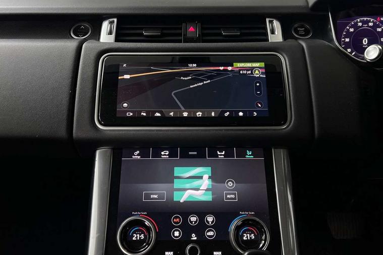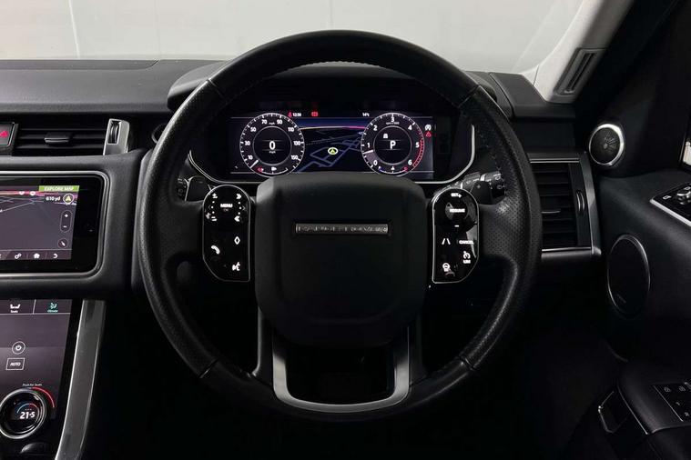 All Terrain Info Centre, Android Auto, Apple car play, Bluetooth connectivity, Electric power assisted steering (EPAS), Incontrol apps in vehicle touchscreen, Interactive Driver display instrument cluster, Mist sensor, Navigation pro system with 10" touch screen, app interface and media storage, Powered gesture tailgate/boot lid, Pro services and wifi hotspot, Push button start, Remote premium - Upgraded Incontrol remote app including remote climate control (engine dependent), remote lock + Unlock and remote beep + flash, TFT Virtual Instrument Panel, Touch pro duo system, Trip computer, Gradient release control (GRC), Bluetooth audio streaming, DAB Radio (Digital Audio Broadcasting), Incontrol protect - SOS emergency call with automatic collision detection, optimised assistance call and Incontrol remote app essential, USB/aux input socket, Acoustic front and toughened rear side glass, Acoustic laminated front windows, Adaptive brake lights, Auto dimming interior rear view mirror, Automatic headlights, Body coloured bumpers, Electric windows with one touch open/close and anti trap, Electrical towing preparation, Engine cover, Follow me home lighting, Front and rear recovery eyes, Front fog lights, Headlight power wash, Heated rear window, Heated windscreen includes heated washer jets, LED rear lamps, Rain sensing windscreen wipers, Rear fog lights, Rear wash/wipe, Remote window closing, Side repeater indicators in mirror, Standard bonnet, Trailer stability assist, 2 way active front head restraints, 2 way rear head restraints, Auto air recirculation, Centre console with armrest, Climate control memory, Customer configurable single point entry, Driver's footrest, Front and rear cupholders, Front door storage space, Front map lights, Front seat back map pockets, Front stowage pocket, Front/rear passenger grab handles, Isofix child seat preparation, Leather steering wheel, Loadspace light, Loadspace mounting provisions, Lockable glovebox, Multifunction steering wheel, Pollen filter, Power socket, Reach/rake electric adjustable steering column + entry/exit tilt away, Rear centre armrest, Rear ISOFIX, Roller blind loadspace cover, Three 12V accessory power outlets, Smartphone pack - Range Rover Sport, 3 point seatbelts on all seats, Anti-lock braking system (ABS), Brake pre-fill technology, Cornering brake control (CBC), Curtain airbags, Customer configurable autolock, DSC - Dynamic Stability Control, Dual stage driver/passenger airbags, EBD - Electronic brakeforce distribution, Electric parking brake, Electronic traction control, Emergency braking includes city, urban AEB and pedestrian, Front seatbelt pretensioners, Gradient acceleration control, Grey anodised brake calipers, Height adjustable front seatbelts, Hill descent control, Hill launch assist, Low traction launch, Passenger seat occupant detector with front airbags, Power operated child locks, Roll stability control, Seatbelt warning, TPMS (Tyre pressure monitoring system), Immobiliser, Intrusion sensor, Keyless entry, Locking wheel nuts, Perimetric and volumetric anti theft alarm, Remote locking,