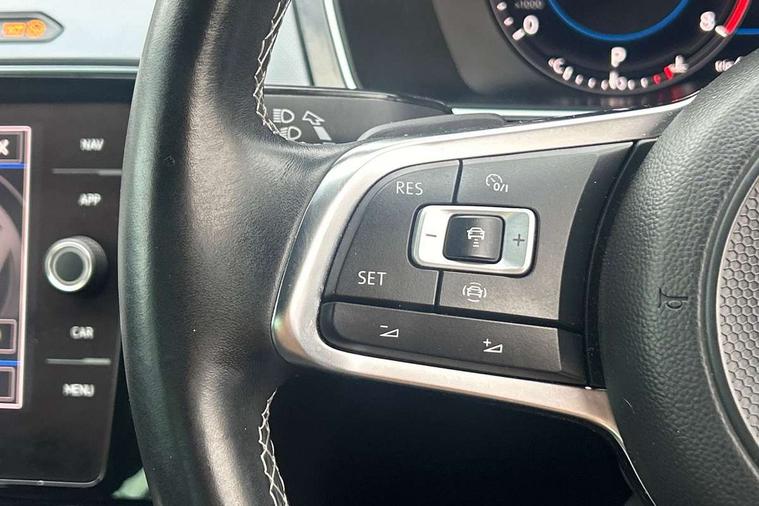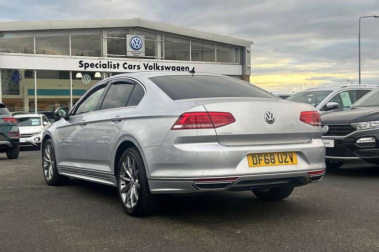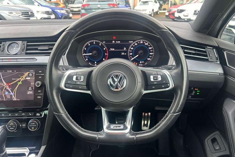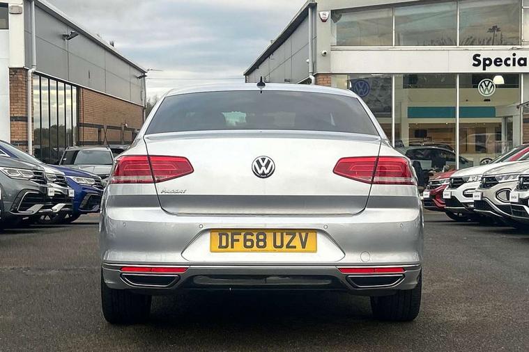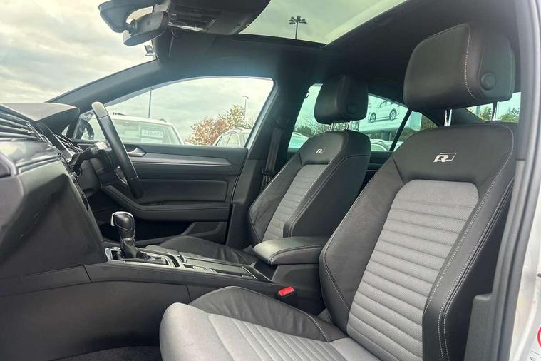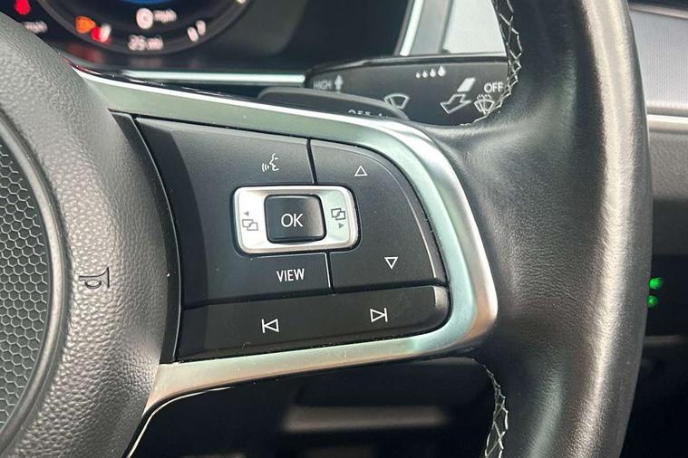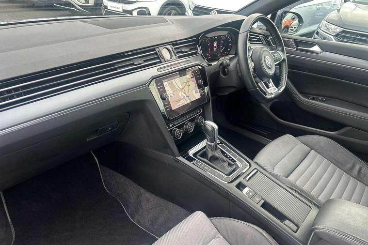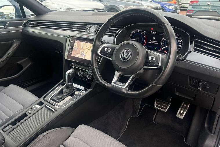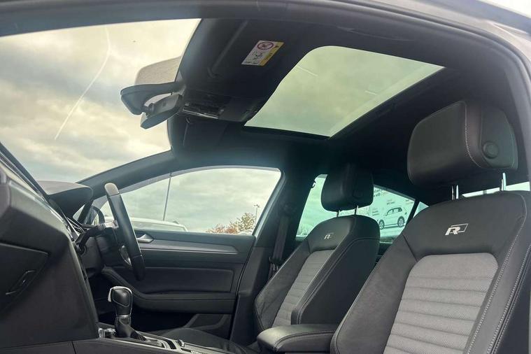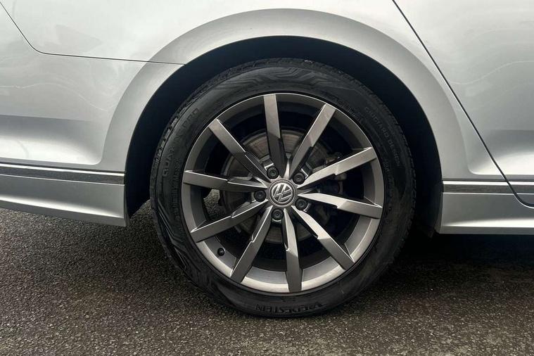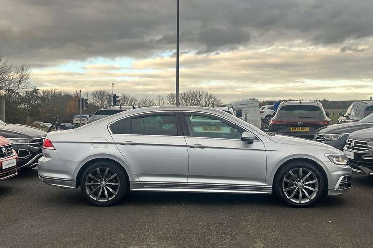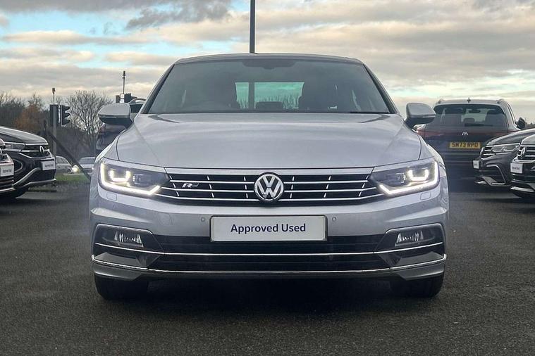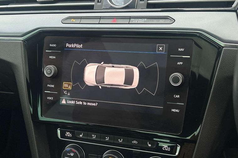 App-Connect, Active Info display 12.3" high resolution TFT dash display with customisable menu and information, Adaptive cruise control, Analogue clock, Door/boot open warning light, Driver alert system, Driver profile selection, Exterior temperature gauge with frost alarm, Low washer fluid warning light, Multifunction computer, One touch indicator turn signal, Remote boot release, Remote fuel flap release, Rev counter with fuel gauge, Service interval indicator, Start/Stop function, Think blue trainer driver tips and journey analysis, Warning buzzer and light for front seatbelts unfastened, Battery regeneration during braking, Misfuel prevention device, 4 X 20 watt output, Auxiliary socket for external device, Composition media system with Radio/CD/MP3, DAB Digital radio, MDI with USB/iPod connection cables, SD card slot, Simultaneous pairing of 2 compatible mobile devices, SMS Functionality, Title and cover art display, Automatic activation of hazard warning lights, Automatic headlights with dusk sensor, Body colour bumpers, Body colour door handles, Body coloured door mirrors, Chrome fog light surround, Chrome louvres in grille, Chrome side sills, Chrome side window surrounds, Chrome surround for air intake, Electric front windows, Electric panoramic sunroof with sunblind, Electric rear windows, Electrically adjustable and heated door mirrors, Front fog lights with static cornering function, Fully galvanised body, Gloss black finish on B pillar, Headlight range control, Headlight washers, Heated rear window, High level 3rd brake light, LED rear lights, LED rear number plate lights, R Line body kit, Trailer stability assist, Twin Trapezoidal tailpipes, Windscreen wipers/ intermittent wipe + 4 position delay, 12V socket in luggage compartment, 3 rear head restraints, 3 spoke multifunction leather steering wheel including paddle shift, 3 Zone electronic climate control with automatic air recirculation, 4 boot load lashing points, 60/40 split folding rear seat, Black roof lining, Driver's cushion tilt adjust, Entry lights on doors, Front + rear carpet mats, Front and rear interior lighting with delay and dimming function, Front centre armrest with storage compartment, Front comfort seats, Front cupholders x2 with covers, Front door pocket bottle holders, Height adjustable head restraints, Height/reach adjust steering wheel, Leather gearknob, Load through provision, Lockable, illuminated, cooled glovebox, Luggage compartment cover, removable, Luggage compartment lighting, Rear centre armrest with cupholder and storage, Stainless steel pedals, Storage compartment in driver's door, Storage compartment in passenger's door, Storage compartment in rear doors, Storage compartment in roof console, Storage pockets in backrests of front seats, Variable boot floor, Convenience pack - Passat, Mirror pack - Passat, 3 rear 3 point seatbelts, ABS, brake assist and EBD, Automatic post collision braking, Curtain airbags, Disc brakes front and rear, Door open warning reflectors, Driver/Front Passenger airbags, Driver/Front passenger WOKS head restraints, Drivers knee airbag, Electronic parking brake with auto hold, ESP with EDL + ASR, First aid kit, Front assist including city emergency braking, Front side airbags, Height adjustable front 3 point seatbelts + pretensioners, Hill hold function, Passenger airbag deactivation system, Pre crash preventive occupant protection, Rear seatbelt warning indicator, Rear side airbags, Rigid safety cell with front and rear crumple zones, Volkswagen roadside assistance, Warning triangle, Alarm with interior protection, Electronic engine immobiliser, Keyless Start, Remote central locking with 2 remote folding keys, Brushed aluminium interior trim, Chrome air vent and instrument surround, Piano black centre console, White instrument dials,