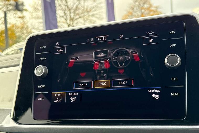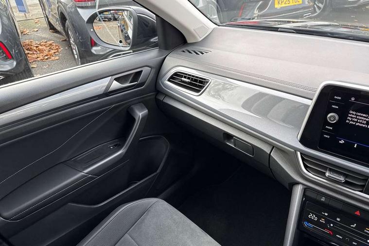 10.25" Digital cockpit pro, Advanced driver attention and drowsiness monitor, Bluetooth mobile phone interface, Emergency call service, Lane keeping system Lane Assist, Modified key software - reduce switch off time for key status change to Long no motion, Online services, Park assist including front and rear parking sensors, Service interval indicator, Tailgate/trunk lid release from outside, Think blue trainer driver tips and journey analysis, Warning sound and light for front seatbelts unfastened, Wireless app connect, Battery regeneration during braking, Start/stop function with battery regeneration, Diversity antenna for FM reception, Music playback - MP3, WMA and AAC files, Premium USB cable in choice of either Apple or Android smartphone compatibility, SD card slot, Simultaneous pairing of 2 compatible mobile devices, Title and cover art display, We Connect and We Connect Plus functionality, 3rd brake light, Auto dimming interior rear view mirror, Automatic hazard lights activation under emergency braking, Automatic headlight control with LED separate daytime running lights with coming/leaving home function, Body colour sports bumpers with silver metallic underbody fascia, Dynamic headlight range control with self adjusting whilst driving, Electrically adjustable and heated door mirrors, Extended roof spoiler, Exterior mirrors aspherical on driver side, convex on front passenger side, External USB type C socket and charging sockets, Front windscreen wiper with intermittent wipe and 4 position delay, Heated rear window, LED rear combination lamps, LED rear number plate lights, Light mode for poor weather, rain, fog or snow, Power windows with comfort operation and circuit breaker, Rain sensor, Rear exhaust tailpipe, Rear fog light on one side and reversing lights on both sides, Rear side wing doors, Rear wash/wipe with intermittent wipe setting, Remote electrically foldable door mirrors, puddle lights and reverse activated passenger's door mirror, 12V power socket in centre console, 3 rear head restraints, 3 seat bench in 2nd row, 4 load lashing points in luggage compartment, Air care climatronic air conditoning system with active combination filter and 2-zone temperature control, Chrome plated radiator grille inserts, air vent surrounds and light switch surrounds, Door and side trim panel with leatherette insert, Drawer under drivers seat, Front + rear carpet mats, Front centre armrest, Front comfort sports seats, Front cupholders x 2, Front footwell illumination, Front seat back storage pockets, Glove compartment door with light, Instrument lighting, white adjustable panel illumination, Interior ambient lighting and surround lighting, Interior light delay, Isofix child seat preparation, Leather gearshift handle, LED interior light with switch off delay/dimmer and 2 front/rear LED reading lights, Load-through provision with cup holder when folded down ('Unsplit rear seat bench, split folding backrest, with centre armrest), Luggage compartment lighting, Non-folding front passenger seat backrest, Single front passenger seat, Storage compartment in left and right luggage area, Storage compartment in rear doors, Storage compartments in driver and front passenger doors, Sunvisors with illuminated vanity mirrors, Variable boot floor, height adjustable and removable, Driver assistance pack without proactive passenger protection - T-Roc, 3 point height adj front seatbelts + pretensioners, 3 point seatbelts in outer rear with ECE label, ABS, Child locks on rear doors, City emergency braking and pedestrian monitoring, Driver and front passenger airbag with front passenger airbag deactivation, Driver and front passenger safety-optimised head restraints, Drivers seatbelt reminder, Electronic parking brake, Electronic Stability Control (ESC) inc EDL (Electronic Differential Lock) and ASR (Traction Control), Front and rear passengers curtain airbag system including front side airbags, Predictive pedestrian protection, Rear disc brakes, Two tone horn, Tyre pressure loss indicator, Volkswagen roadside assistance, Anti-theft alarm system with interior monitoring, backup horn, and towing protection, Remote central locking with SAFELOCK, radio remote control with 2 remote control folding keys, Trims for alloy wheels,