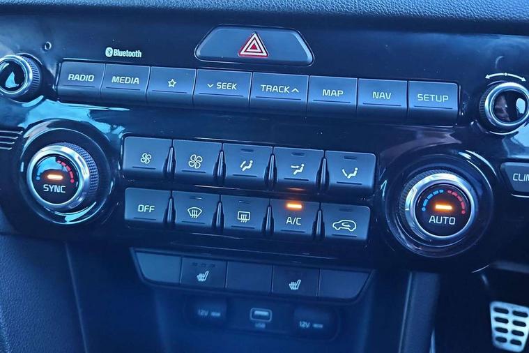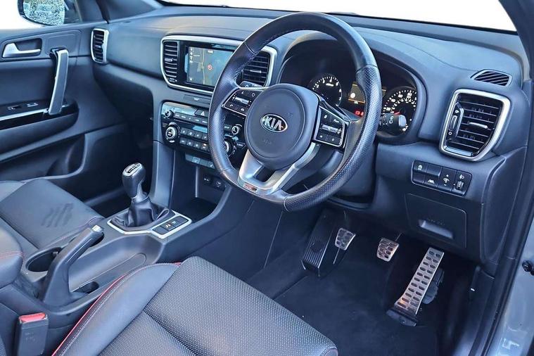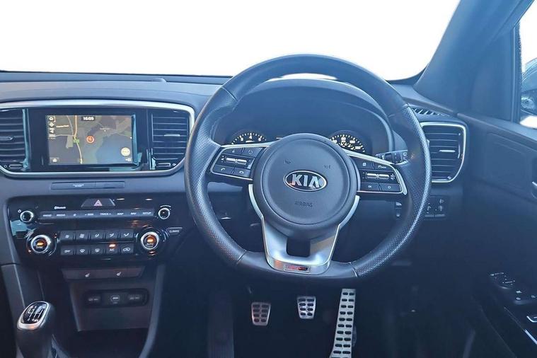 4.2" supervision colour cluster display, 7" touchscreen satellite navigation with European mapping and traffic messaging channel, Android auto with voice control, Apple car play with voice control, Bluetooth connectivity with voice control, Cruise control + speed limiter, Digital clock, Driver attention warning, Emergency stop signalling system, Front parking sensor, Kia connected services featuring TomTom live, Lane keep assist, Rear parking sensor, Reversing camera, Speed limit information, Speed sensitive power steering, Trip computer, Windscreen washer level indicator, Intelligent Stop and Go, 6 speaker audio system, Bluetooth audio streaming, DAB Radio with MP3, Rear USB port, Steering wheel mounted audio controls, USB/iPod/auxiliary input connections, All round electric windows with drivers auto up/down function, Auto dimming rear view mirror, Automatic defog system, Automatic headlights, Automatic lighting control, Black wheel arch body mouldings and side sills with dark chrome insert, Body colour door handles with chrome inserts, Body colour door mirrors, Chrome window surround, Cornering light, Dark chrome front bumper insert, Dark chrome grille surround, Electrically adjustable/heated/folding door mirrors with LED indicators, Front wiper de-icer, High beam assist, High gloss black blade mesh radiator grille, LED Bi-Function headlights, LED daytime running lights, LED ice cube front fog lights, LED rear lights, Rain sensing front wipers, Rear spoiler, Rear wiper, Roof rails, Shark fin antenna, Silver painted front and rear skid plates, Speed sensitive front wipers, Tinted glass, Trailer stability assist, Welcome and follow-me home light functionality, Wide view drivers door mirror, Windscreen wiper de-icer, 12V power in front and rear centre console, 3 x passenger assist grips, 60/40 split folding rear seat, Air filter, All-round height adjustable headrests, Aluminium door scuff plates, Aluminium pedals, Black headlining, Centre cabin light, Centre console storage box, Chrome boot sill guard, D-Shaped sports leather steering wheel and perforated inserts with GT-Line logo, Door armrest in leather, Driver and front passenger side sunvisors with illuminated vanity mirrors, Driver's seat manual height adjust, Drivers seat power lumbar support, Dual zone automatic air conditioning, Front and rear door storage, Front cabin LED map light with sunglasses case, Front door courtesy reflectors, Front seat and rear pockets, Front/rear centre armrests, Gear shift indicator, Glovebox illumination, Heated front and outer rear seats, Interior door lock/unlock function, ISOFIX Child seat top tethers and anchor fixings, Leather trimmed gearshift, Leather upholstery, Luggage area light, Luggage area load cover, Luggage net with hooks, Perforated leather sports steering wheel, Rear centre armrest with cupholder, Rear coat hooks, Rear headrests, Satin chrome interior door handles, Tilt/telescopic adjustable steering wheel, Ventilation ducts to rear compartment, Active front headrests, All round 3-point seatbelts, Anti-lock braking system with electronic brakeforce distribution, Dual front side airbags, Electronic stability control with downhill brake control, ESP + traction control, Front passenger airbag cut-off switch, Front seatbelt pretensioners + load limiters, Height adjustable front seatbelts, Hill start assist control (HAC), Impact sensing auto door unlocking, Rear door child safety locks, Twin curtain airbags with roll over sensor, Twin front airbags, Tyre pressure monitoring system, Advanced anti-theft system including immobiliser and alarm, Door deadlocks, Engine Start/Stop Button with Smart Entry System, Locking wheel nuts, Speed sensitive auto door locking, Visible vehicle identification number, High gloss black centre fascia, 19" alloy Wheels B-type, Temporary spare wheel,