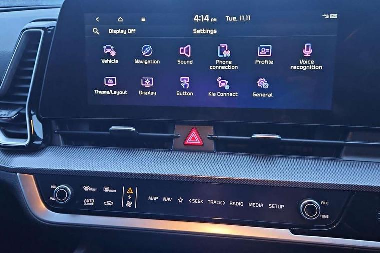 12.3" Display with navigation, 12.3" supervision colour cluster display, Apple car play/Android Auto with voice control, Drive mode selector, E-call, Forward collision avoidance assist (FCA) - city/pedestrian/cyclist/junction covering, Front and rear parking sensors, Highway Driving Assist (HDA), Intelligent speed limit assist, Kia Connect (UVO), Lane Following Assist (LFA), Lane keep assist, Low washer fluid warning, Rear view monitor, Reversing camera system integrated into centre fascia screen, Smart cruise control with stop and go functionality, Speed sensitive power steering, Trip computer, Windscreen washer level indicator, Intelligent Stop and Go, 6 speaker audio system, Bluetooth audio streaming, DAB Radio with MP3, Rear USB port, Steering wheel mounted audio controls, USB C type charging ports on centre console, USB C type charging ports on side of front seats, USB port for connection of a media device, All round electric windows with drivers and front passenger auto up/down function, Automatic headlight control system, Automatic window defogger, Backlite glass heated with timer, Black side sill and wheel arch body mouldings, Body colour and black bumper with silver accents, Body colour door mirrors, Body colour exterior door handles, Electrically adjustable/heated/folding door mirrors with LED indicators, High beam assist, Interior electrochromic mirror, LED daytime running lights, LED front fog lamps, LED headlamps (low and high beam - MFR type), LED High mounted stop light, Rain sensing wipers with aero blades, Rear fog lamp, Rear privacy glass, Rear side wing doors, Rear skid plate - silver, Rear spoiler, Rear wiper, Satin finished beltline, Silver radiator upper garnish and door garnish, Silver roof rack, Tinted rear glass, Trailer stability assist, 12V power socket in front centre fascia and luggage compartment, 2nd row personal lamps, 3 seat bench in 2nd row, 3 x passenger assist grips, 40/20/40 split folding rear seat, All-round height adjustable headrests, Centre console storage box, Cloth/faux leather upholstery, Cupholders in rear armrest, Door courtesy lamps, Drink holder at centre armrest, Driver and front passenger side sunvisors with illuminated vanity mirrors, Drivers seat power lumbar support, Dual zone climate control, Electric height adjustable front seats, Front and rear door storage, Front seat and rear pockets, Front/rear centre armrests, Gear shift indicator, Glovebox illumination, Heated front and outer rear seats, Heated steering wheel, Interior door lock/unlock function, ISOFIX Child seat top tethers and anchor fixings outer rear seats, Leather steering wheel, Luggage area light, Luggage area load cover, Luggage net with hooks, Metal paint interior door handles, Overhead console lamp, Paddle shift controls, Rear cabin light, Rear coat hooks, Single front passenger seat, Tilt/telescopic adjustable steering wheel, Ventilation ducts to rear compartment, Active front headrests, All round 3-point seatbelts, Anti-lock braking system (ABS), Dual front side airbags, Dual horn, Electronic parking brake, Electronic stability control with downhill brake control, Front passenger airbag cut-off switch, Front seatbelt pretensioners + load limiters, Height adjustable front seatbelts, Hill start assist control (HAC), Impact sensing auto door unlocking, Multi collision brake assist, Rear door child safety locks, Rear seat alert system, Traction control, Twin curtain airbags, Twin front airbags, Tyre pressure monitoring system, Advanced anti-theft system including immobiliser and alarm, Door deadlocks, Engine Start/Stop Button with Smart Entry System, Locking wheel nuts, Speed sensitive auto door locking, Visible vehicle identification number, Aluminium pattern finish centre fascia and door garnish, 18" Alloy wheels, Tyre mobility kit,