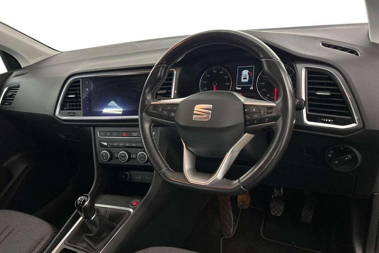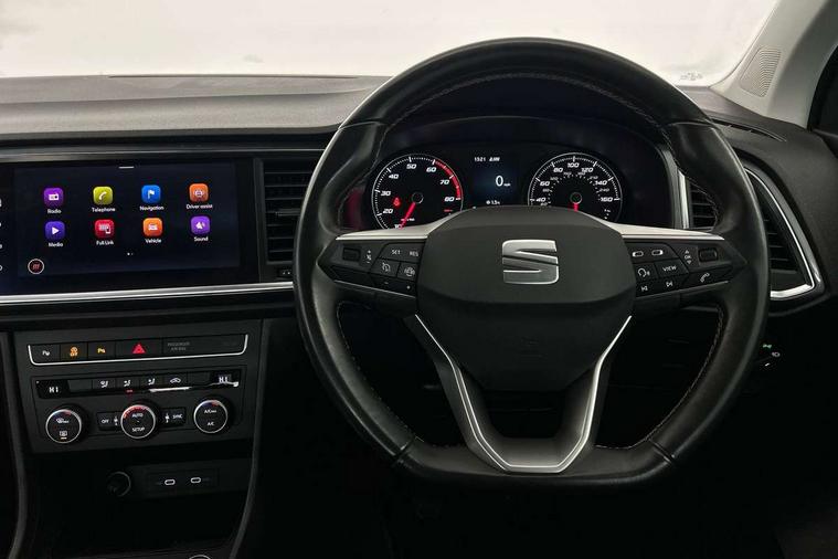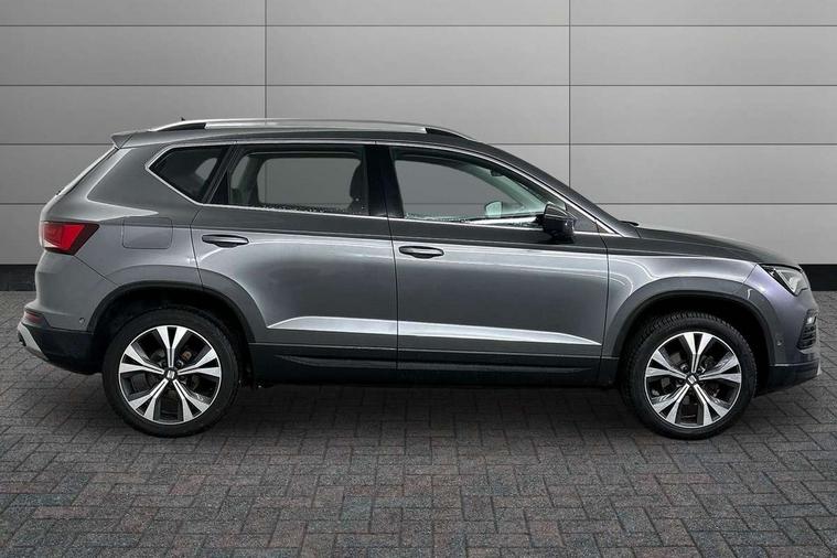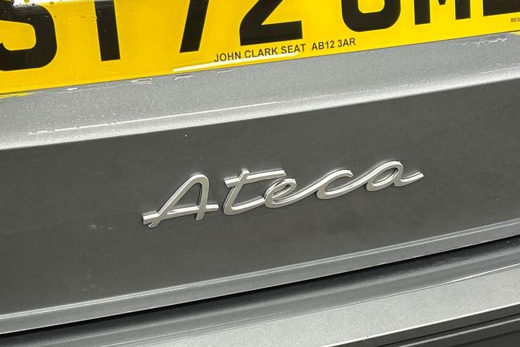 8" Digital cockpit, Colour multi-function on board computer display, Cruise control system with speed limiter, E-call, Outside temperature gauge, PAS, SEAT drive profile with driving experience button - Normal, Sport, Eco and Individual mode, steering and throttle response, Self parking functionality (includes front and rear parking sensors), Start/stop system, Tailgate, Trip computer, Wireless full link smartphone integration, Wireless phone charger, Steering wheel mounted audio/phone controls, Black wheel arch surrounds, Body colour bumpers, Chrome front grille frame, Chrome roof rails, Chrome side window trim, Daytime running lights, Door mirrors with welcome light silhouette, Dynamic headlight range control with self adjusting whilst driving, Electric adjustable/heated/folding door mirrors, Front and rear electric windows, Full LED headlamps with lens and LED front fog lamps with cornering function, LED rear tail lights with dynamic indicators, Rear fog lights, Rear side wing doors, Rear wash/wipe, Simulated exhaust pipes, Variable front intermittent wipers, 12V socket in front, 3 seat bench in 2nd row, 60/40 split folding rear seat, Cloth upholstery with front comfort seats, Drawer under right front seat, Dual zone climate control, Front and rear head restraints, Front centre armrest, Front seat back storage pockets, Height adjustable driver and passenger seat with lumbar adjustment, ISOFIX points in outer rear seats with top tether anchorage points, Leather steering wheel and gear knob, Rear armrest and easy back seat release mechanism from boot, Single front passenger seat, Interior lighting pack - Ateca, Navigation system pack with DAB - Ateca, 3x3 point rear seatbelts, ABS, Traction control system (TCS), Electronic stability control (ESC) and Electronic differential lock system (XDS), Airbags - Driver and front passenger airbag with deactivation, front side, two curtain and driver's knee airbags, Electric parking brake with auto hold function, Front and rear seatbelt reminder, Front assist with autonomous emergency braking, Hill hold control, Manual rear child locks, Single tone horn, Tiredness recognition system, Traction control, Tyre pressure monitoring system, Alarm, Keyless entry, Locking wheel bolts, Remote central locking, Chrome interior detailing, 18" Performance machined alloy wheels 36/2 in nuclear grey,