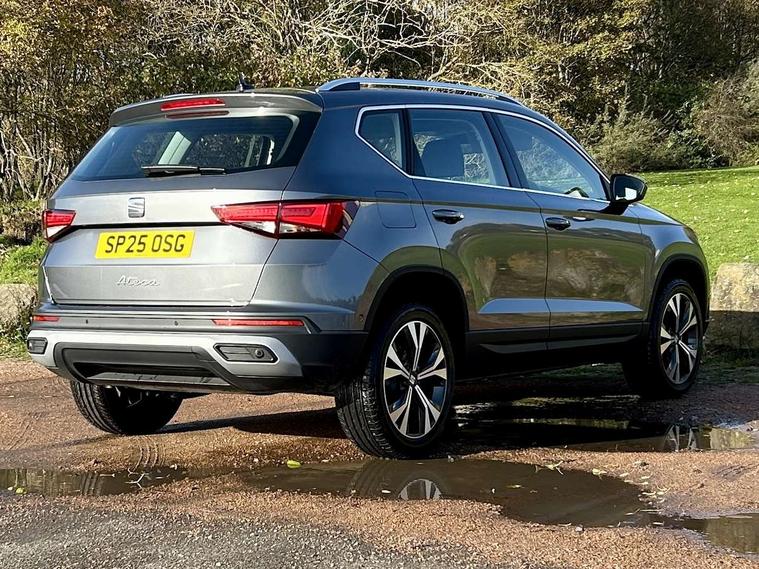 8" Digital cockpit, Colour multi-function on board computer display, Cruise control system with speed limiter, E-call, Outside temperature gauge, PAS, Self parking functionality (includes front and rear parking sensors), Start/stop system, Tailgate, Trip computer, wired and wireless full link smartphone integration, Wireless phone charger, Steering wheel mounted audio/phone controls, Black wheel arch surrounds, Body colour bumpers, Chrome front grille frame, Chrome roof rails, Chrome side window trim, Daytime running lights, Door mirrors with welcome light silhouette, Dynamic headlight range control with self adjusting whilst driving, Electric adjustable/heated/folding door mirrors, Front and rear electric windows, Full LED headlamps with lens and LED front fog lamps with cornering function, LED 3rd brake light, LED rear tail lights, Rear exhaust tailpipe, Rear fog lights, Rear side wing doors, Rear wash/wipe, Variable front intermittent wipers, 12V socket in front, 3 seat bench in 2nd row, 60/40 split folding rear seat, Cloth upholstery with front comfort seats, Drawer under right front seat, Dual zone climate control, Front and rear head restraints, Front centre armrest, Front seat back storage pockets, Height adjustable driver and passenger seat with lumbar adjustment, ISOFIX points in outer rear seats with top tether anchorage points, Leather sports steering wheel and gear knob, Rear armrest and easy back seat release mechanism from boot, Single front passenger seat, Convenience pack - Ateca, Interior lighting pack - Ateca, Navigation system pack with DAB - Ateca, Safety and driving pack with attention and drowsiness assist - Ateca, 3x3 point rear seatbelts, ABS, Traction control system (TCS), Electronic stability control (ESC) and Electronic differential lock system (XDS), Airbags - Driver and front passenger airbag with deactivation, front side, two curtain and driver's knee airbags, Electric parking brake with auto hold function, Front and rear seatbelt reminder, Front assist with autonomous emergency braking, Hill hold control, Manual rear child locks, Single tone horn, Tiredness recognition system, Tyre pressure monitoring system, Alarm, Keyless entry, Locking wheel bolts, Remote central locking, Chrome interior detailing, 18" Performance machined alloy wheels 36/2 in nuclear grey,