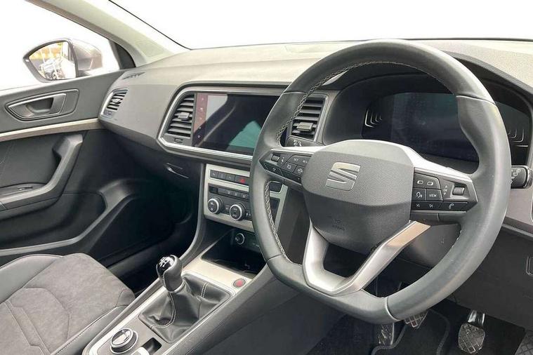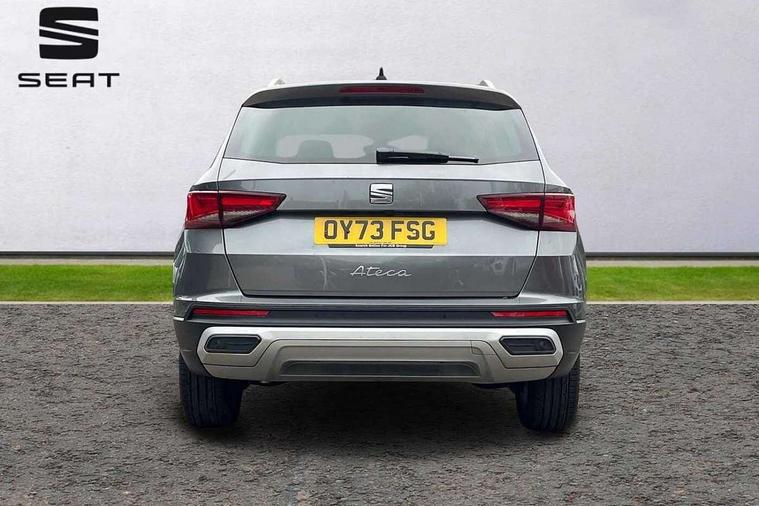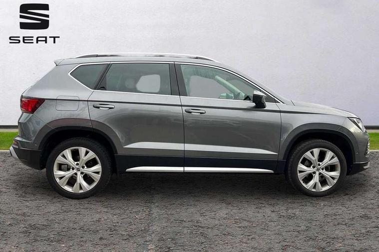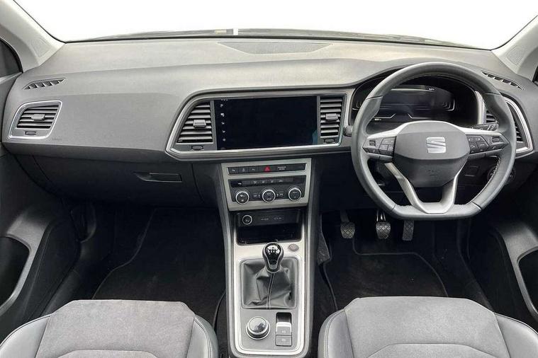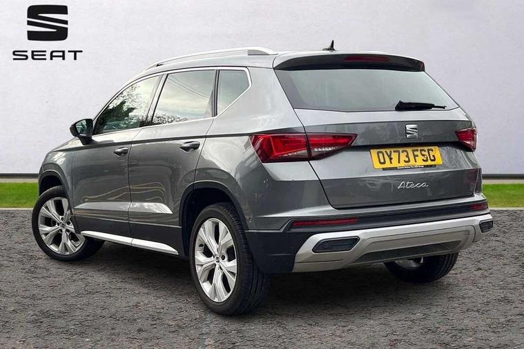 8" Digital cockpit, Colour multi-function on board computer display, E-call, Outside temperature gauge, Progressive power assisted steering, Rear view camera, SEAT drive profile with driving experience button - Normal, Sport, Eco and Individual mode, steering and throttle response, Self parking functionality (includes front and rear parking sensors), Start/stop system, Tailgate, Trip computer, Wireless full link smartphone integration, Wireless phone charger, Steering wheel mounted audio/phone controls, Black simulated exhaust pipes, Black wheel arch surrounds, Body colour bumpers, Chrome front grille frame, Chrome roof rails, Chrome side window trim, Dark tinted rear windows, Daytime running lights, Door mirrors with welcome light silhouette, Dynamic headlight range control with self adjusting whilst driving, Electric adjustable/heated/folding door mirrors, Front and rear electric windows, Front grille hot stamping, Full LED headlamps with lens and LED front fog lamps with cornering function, Illuminated aluminium front door sill, LED rear tail lights with dynamic indicators, Rear fog lights, Rear side wing doors, Rear wash/wipe, Reflex silver side mouldings, Variable front intermittent wipers, 12V socket in front, 3 seat bench in 2nd row, 60/40 split folding rear seat, Drawer under right front seat, Dual zone climate control, Front and rear head restraints, Front centre armrest, Front seat back storage pockets, Height adjustable driver and passenger seat with lumbar adjustment, ISOFIX points in outer rear seats with top tether anchorage points, Leather steering wheel and gear knob, Microsuede upholstery with front comfort seats, Rear armrest and easy back seat release mechanism from boot, Single front passenger seat, Convenience pack - Ateca, Interior lighting pack - Ateca, Navigation system pack with DAB - Ateca, Safe and driving pack with lane assist - Ateca, 3x3 point rear seatbelts, ABS, Traction control system (TCS), Electronic stability control (ESC) and Electronic differential lock system (XDS), Airbags - Driver and front passenger airbag with deactivation, front side, two curtain and driver's knee airbags, Electric parking brake with auto hold function, Front and rear seatbelt reminder, Hill hold control, Manual rear child locks, Single tone horn, Tiredness recognition system, Traction control, Tyre pressure monitoring system, Alarm, Keyless entry, Locking wheel bolts, Remote central locking, Chrome interior detailing, 18" Brillaint silver alloy wheels,