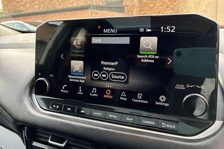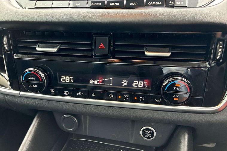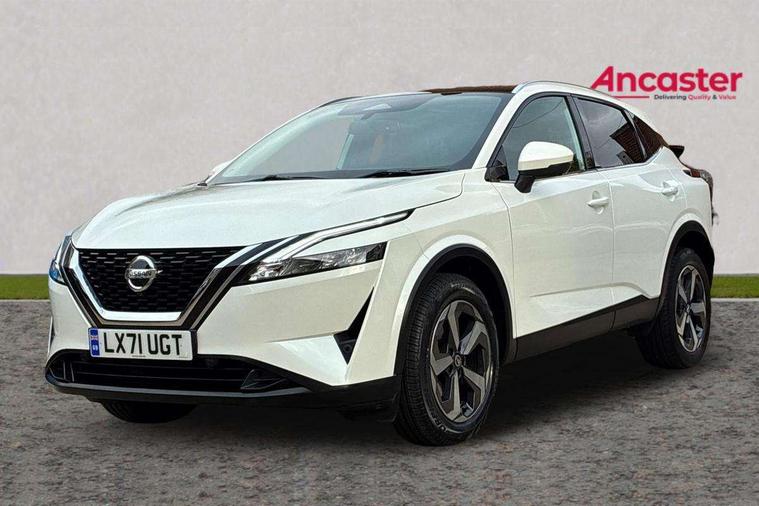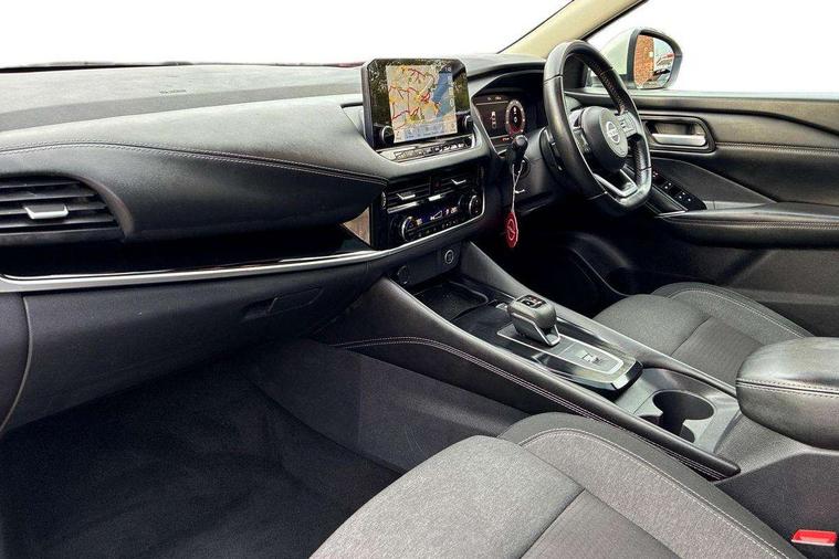 7" High definition full colour TFT screen combimeter, Blind spot warning, Drive modes (sport, normal, eco), Electric speed sensitive power steering, Emergency and breakdown call, Front and rear parking sensors, Idle stop/start system, Intelligent Cruise control (ICC), Intelligent driver alert system, Intelligent forward collision warning, Intelligent lane intervention, Lane departure prevention, Lane departure warning system, Maximum speed limiter, Moving object detection, Push button starter, Rear cross traffic alert, Traffic sign recognition with legal speed adjustment, Trip computer, 6 speakers, AM/FM audio system with DAB, Bluetooth audio streaming, Front USB connections (Type-A and Type-C), Rear USB charging only ports (Type-A and Type-C), Auto dimming rear view mirror, Auto rear wiper when reversing, Body colour mirror caps, Body coloured door handles, Bodyside mouldings, Chrome side window finisher, Electric auto folding door mirrors, Electrically adjustable and heated door mirrors with LED turn indicator, Follow me home headlights, High beam assist, Intelligent auto headlights, LED daytime running lights, LED Headlights, LED rear lights, One touch front and rear electric windows with remote opening and closing, Partially body coloured bumpers, Privacy glass, Rear reversing light (bulb lighting), Rear roof spoiler, Rear styling plate, Shark fin antenna, Splash free rain sensing wipers, Super UV and infrared cut glass, Three blink turn signal, 12v power socket in dashboard and luggage, 2 way electrical driver lumbar adjustment, 2x Rear coat hooks, 3 rear headrests, 4 grab handles, 6 Luggage hooks - 4 on floor, 2 on side, 60/40 split folding rear seat, Ambient lighting around centre console, Centre console storage tray, Chrome interior door handles, Cloth monoform upholstery, Driver and front passenger sunvisors with illuminated vanity mirrors, Driver seat back pocket, Dual zone automatic climate control with pollen filter, Front centre console and armrest, Front cupholder, Front door with bottle holders, Glovebox with light, Hard trunk cover, Height adjustable driver's seat, Height adjustable front headrests, Leather steering wheel, Luggage board system, Luggage space lighting, Manually adjustable passenger (slide recline + lifter), Multifunction steering wheel, Passenger seat back pocket, Rear armrest with 2 cupholders, Rear door bottle holders, Soft PVC kneepad, Steering wheel gearshift paddles, Steering wheel switches, Sunglasses holder, Tilt/telescopic adjustable steering wheel, Two rear isofix child seat anchorage points with top tether, Welcome light and console tray ambient lighting, Connectivity Pack - Qashqai, 3x3 point rear seatbelt pretensioners + load limiters, ABS, ESP, EBD and brake assist, Active brake limited slip, Auto hold function, Child locks on rear doors, Curtain and front side, far side airbags, Driver and passenger airbags, Driver, passenger and 2nd row rear seat belt reminder, Electronic parking brake, Front seatbelt pretensioners + load limiters, Height adjustable front seatbelts, Hill start assist, Intelligent blind spot intervention, Intelligent front emergency braking with pedestrian, cyclist recognition and junction assist, Intelligent rear automatic braking, Tyre pressure monitoring system, Vehicle dynamic control, Capless fuel filler, Engine immobiliser, Nissan i-key, Remote central door locking with deadlocking, Thatcham Cat.1 alarm, 18" Diamond cut alloy wheels,