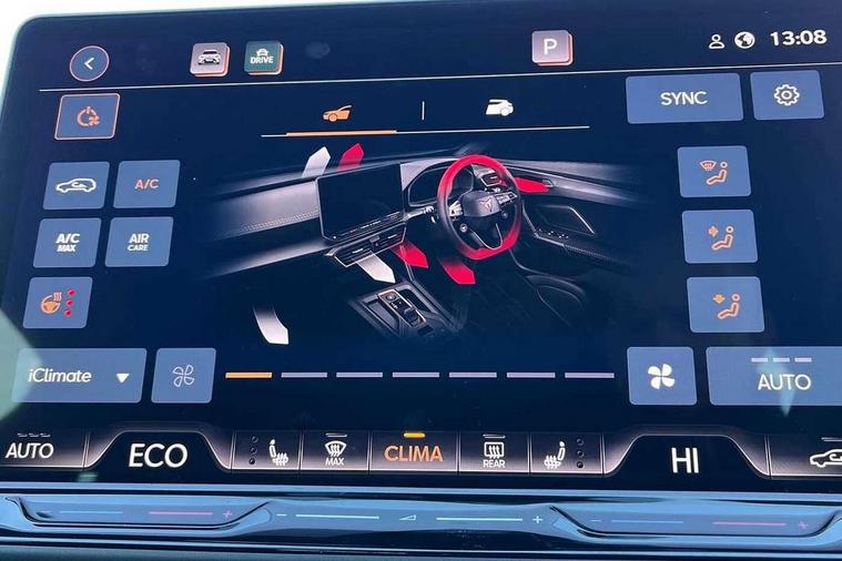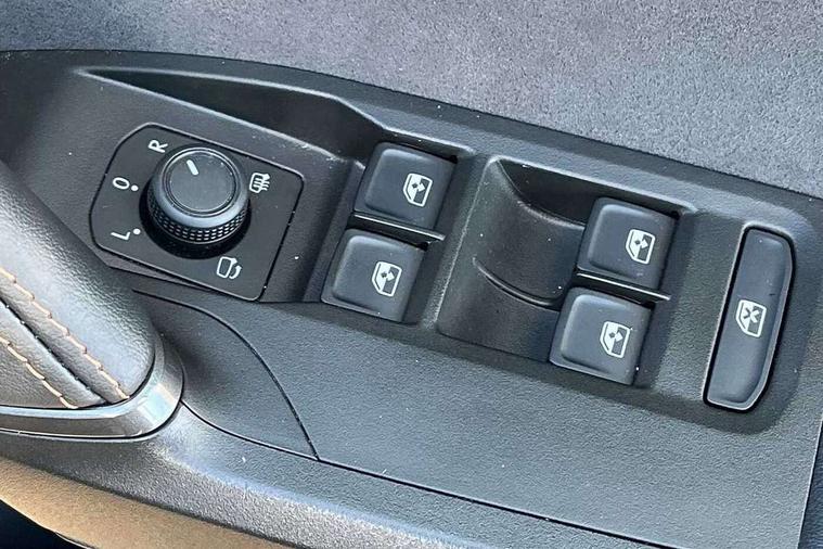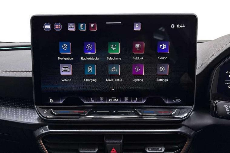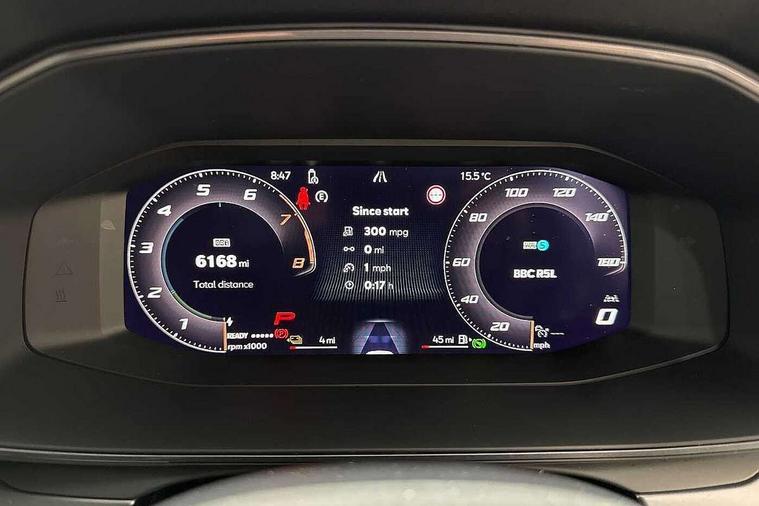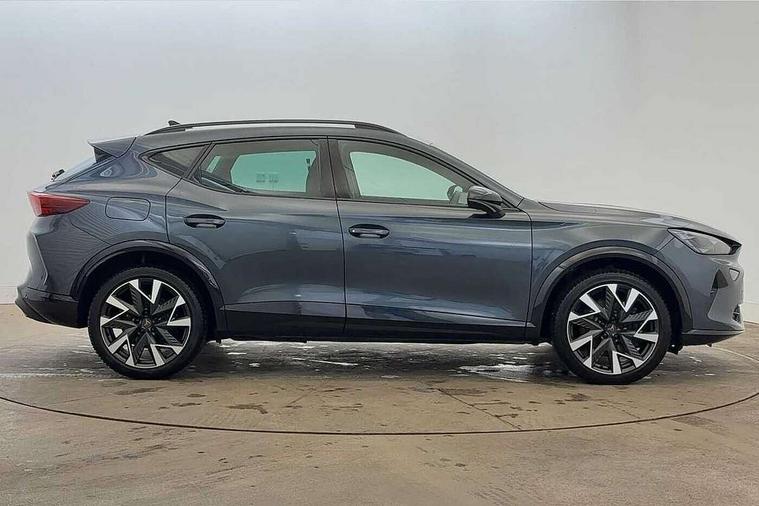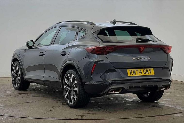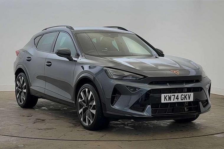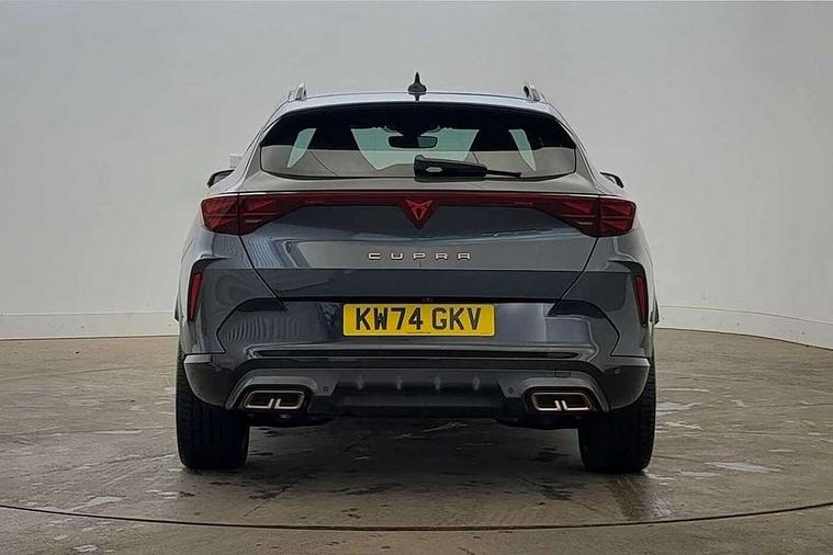 10.25" digital cockpit and configurable dashboard, Adaptive cruise control with follow-to-stop and speed limiter, Advanced driver alert system, Dynamic chassis control with driving profile selection (Comfort, Sport, CUPRA, Individual), Dynamic road sign display, Emergency steering support with turn assist, Forward collision warning with automatic braking, Front and rear parking sensors, Full link phone integration, Lane assist, Rear view camera, RPM, trip computer, outside temp gauge, instrument light brightness, low fuel warning light, lights on reminder, gearshift indicator, Service interval indicator, Speed sensitive power steering, Start/stop system with regenerative braking, Virtual pedal and electric tailgate, Voice control system, Wired Android Auto, Wireless apple carplay, Wireless phone charger, 10 amp mode 2 charging cable, 32 amp mode 3 charging cable, Adaptive chassis control with continuous operation, CUPRA sport suspension, Electronic locking differential and dynamic traction support, 2 front and 2 rear USB type C sockets, Media system with navigation, 12.9" touchscreen display, voice control, DAB, steering wheel mounted controls, Auto dimming rear view mirror, Body colour door handles, Body coloured bumpers, Dark grey wing mirror, Daytime running light with automatic headlight control and coming home feature, Door panel ambient lighting, Dynamic headlight range control, Electric front/rear windows, Electrically adjustable heated and folding door mirrors with memory function, Gloss black roof rails and window surrounds, High beam assist, LED 3rd brake light, LED front fog lamps with cornering function, LED Taillights with dynamic indicator, Matrix LED headlights with multifunction camera, Rain sensing wipers, Rear diffuser with copper simulated exhaust pipes, Rear fog lights, Rear side wing doors, Rear wash/wipe, Tinted rear windows, Welcome lights (within exterior mirror housing), 12V socket, 2 front and 2 rear reading lights, 3 seat bench in 2nd row, 60/40 split rear bench seat with armrest and mechanical seat release, Black headlining, Black interior roof lining, Cupra sports pedals, Dust/pollen filter, Electrically adjustable front seats with lumbar support and memory function, Front and rear head restraints, Front centre armrest, Heated front seats, Heated supersports multifunction leather steering wheel with satellite buttons and gear shift paddles, Height/reach adjust steering wheel, Illuminated aluminium doorsteps, Illuminated interior front door sills, Illuminated sunvisor with mirror, Isofix, Leather dashboard, door insert and side trim panel, LED smart wraparound lighting, PVC/Dinamica microfiber upholstery + bucket seats, Satellite steering wheel, Single front passenger seat, Storage pockets on rear of front seats, Three zone climate control with control panel in rear, 3 point seatbelts on all rear seats, ABS, Brake control system - ESC and brake booster, Child proof door locks, Driver and front passenger airbags with front passenger airbag de-activation, Electronic parking brake, Front and rear disc brakes, Front side curtain airbags, Hill hold control, Public e-call, Seat belt reminder for front and rear seats, Tyre pressure monitoring system, Anti theft alarm system, KESSY Advanced - Keyless start, keyless entry with SAFELOCK, Locking wheel bolts, Copper and aluminium interior detailing, 19" Sandstorm machined sport black and silver alloy wheels, Breakdown and tool kit,