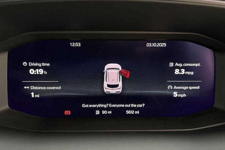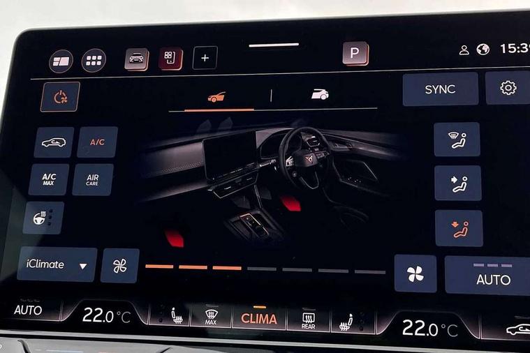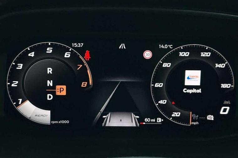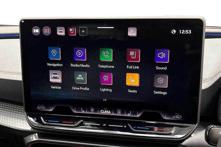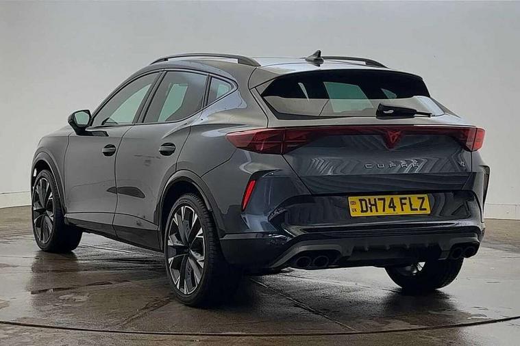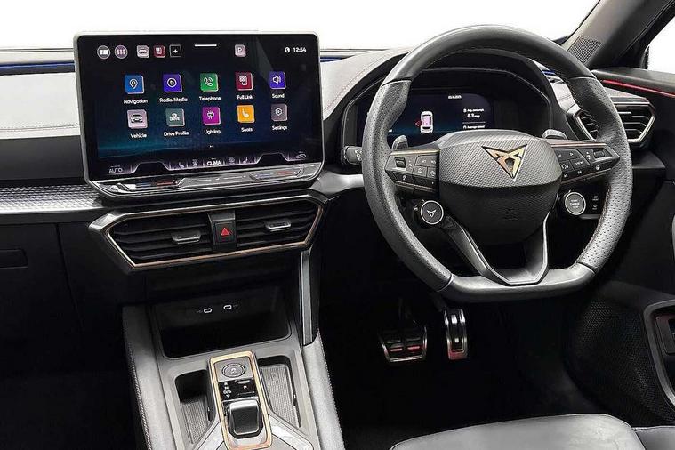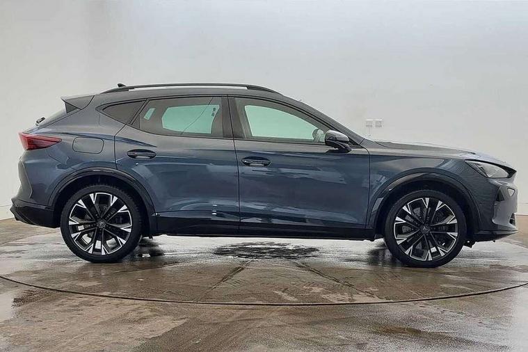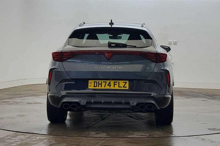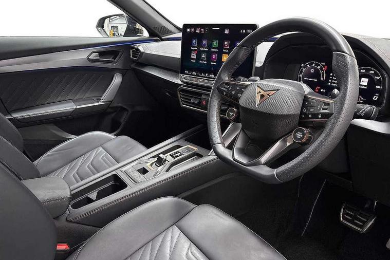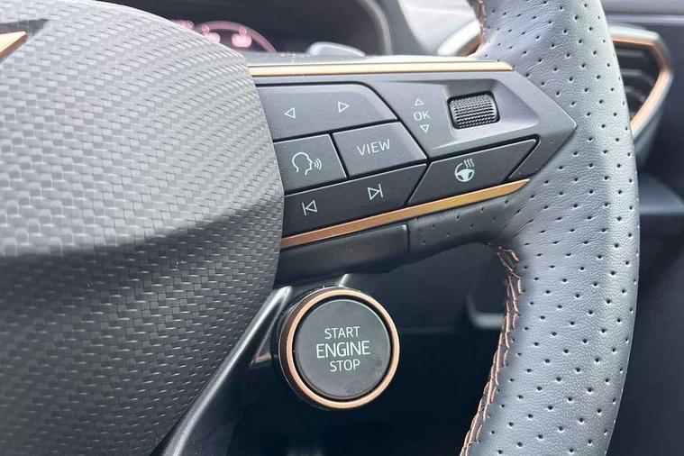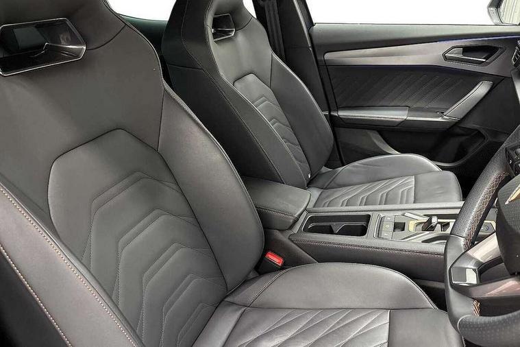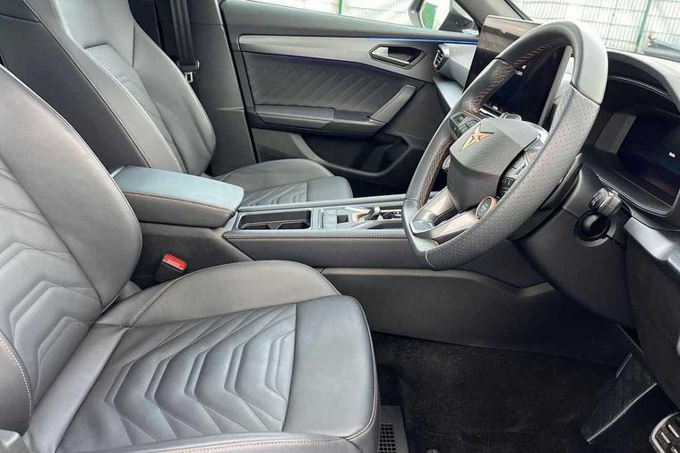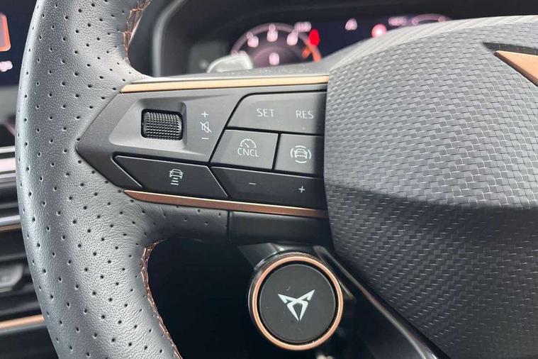 10.25" digital cockpit and configurable dashboard, Adaptive cruise control with follow-to-stop and speed limiter, Advanced driver alert system, Advanced lane assist with semi-automatic vehicle control in a medical emergency and traffic jam assist, Dynamic chassis control with driving profile selection (Comfort, Sport, CUPRA, Individual), Dynamic road sign display, Emergency steering support with turn assist, Forward collision warning with automatic braking, Full link phone integration, Intelligent park assist, RPM, trip computer, outside temp gauge, instrument light brightness, low fuel warning light, lights on reminder, gearshift indicator, Service interval indicator, Side and exit assist, Speed sensitive power steering, Start/stop system with regenerative braking, Top view camera, Virtual pedal and electric tailgate, Voice control system, Wired Android Auto, Wireless apple carplay, Wireless phone charger, Adaptive chassis control with continuous operation, CUPRA sport suspension, Electronic locking differential and dynamic traction support, 2 front and 2 rear USB type C sockets, Media system with navigation, 12.9" touchscreen display, voice control, DAB, steering wheel mounted controls, Auto dimming rear view mirror, Body colour door handles, Body coloured bumpers, Dark grey wing mirror, Daytime running light with automatic headlight control and coming home feature, Door panel ambient lighting, Dynamic headlight range control, Electric front/rear windows, Electrically adjustable heated and folding door mirrors with memory function, Gloss black roof rails and window surrounds, High beam assist, LED 3rd brake light, LED front fog lamps with cornering function, LED Taillights with dynamic indicator, Matrix LED headlights with multifunction camera, Rain sensing wipers, Rear diffuser with twin exhaust pipe on each side, Rear fog lights, Rear side wing doors, Rear wash/wipe, Tinted rear windows, Welcome lights (within exterior mirror housing), 12V socket, 2 front and 2 rear reading lights, 3 seat bench in 2nd row, 60/40 split rear bench seat with armrest and mechanical seat release, Black headlining, Black interior roof lining, Cupra sports pedals, Dust/pollen filter, Electrically adjustable front seats with lumbar support and memory function, Front and rear head restraints, Front centre armrest, Heated front seats, Heated supersports multifunction leather steering wheel with satellite buttons and gear shift paddles, Height/reach adjust steering wheel, Illuminated aluminium doorsteps, Illuminated interior front door sills, Illuminated sunvisor with mirror, Isofix, Leather dashboard, door insert and side trim panel, LED smart wraparound lighting, PVC/Leather upholstery, Satellite steering wheel, Single front passenger seat, Storage pockets on rear of front seats, Three zone climate control with control panel in rear, Variable luggage/load compartment floor, 3 point seatbelts on all rear seats, ABS, Brake control system - ESC and brake booster, Child proof door locks, Driver and front passenger airbags with front passenger airbag de-activation, Electronic parking brake, Front and rear disc brakes, Front side curtain airbags, Hill hold control, Pre-crash front and rear seat belt tensioner, window closure and hazard lights, Public e-call, Seat belt reminder for front and rear seats, Tyre pressure monitoring system, Anti theft alarm system, KESSY Advanced - Keyless start, keyless entry with SAFELOCK, Locking wheel bolts, Copper and aluminium interior detailing, 19" Artic machined sport black and silver alloy wheels, Breakdown and tool kit,