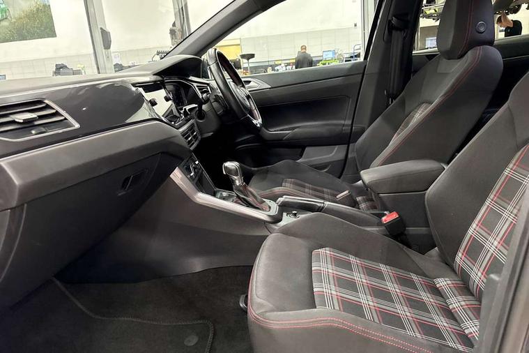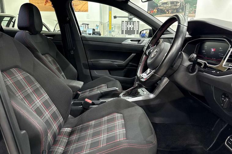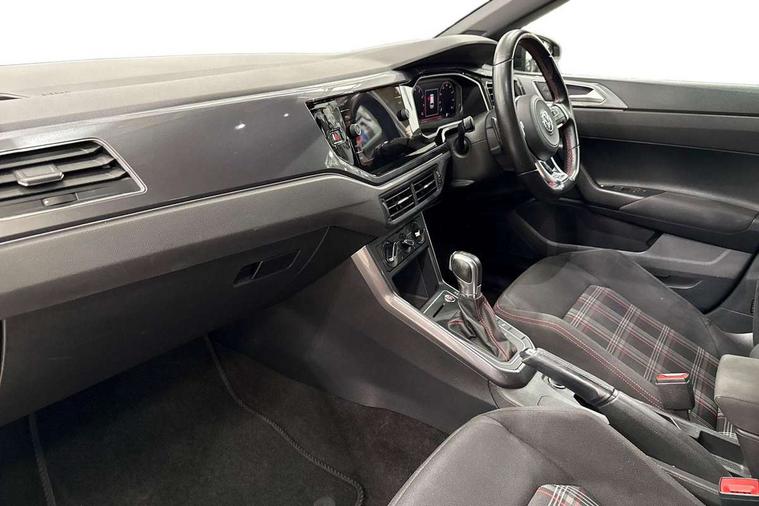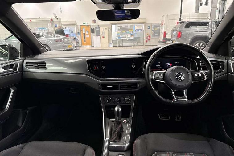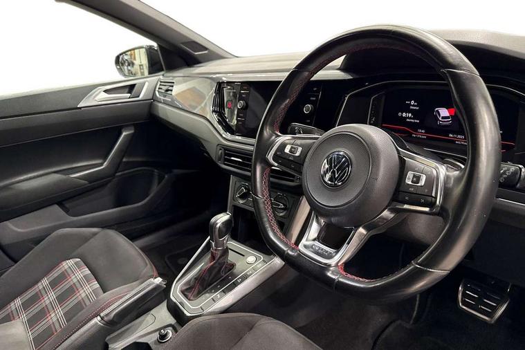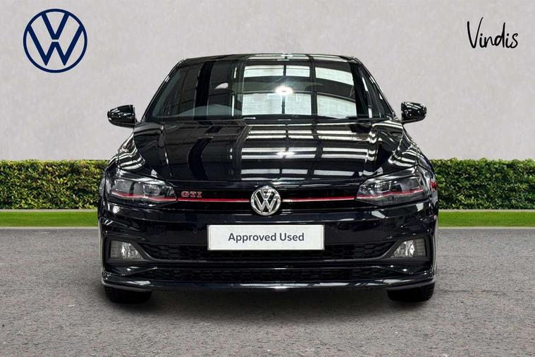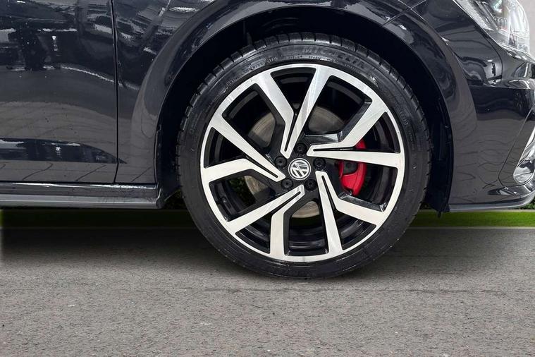 App-Connect, ACC - Adaptive cruise control with front assist, forward collision warning, distance monitoring, city emergency brake and speed limiter, Bluetooth Telephone preparation, Driver alert system, Multifunction colour display, PAS - speed related, Service interval indicator, Start/stop system, Trip computer, Warning buzzer and light for front seatbelts unfastened, Battery regeneration during braking, Lowered sports suspension, XDS electronic differential lock, 6 speakers, Composition media system with radio, glovebox mounted CD, colour touch screen, SD card, aux-in, USB, multimedia interface, DAB Digital radio, Driver Personalisation profile selection, Automatic dimming interior rear view mirror with rain sensor, Black grille with chrome surround, Body colour bumpers, Body colour door handles, Body coloured side sills, Chrome insert to lower bumper, Chrome trimmed front air intake surrounds, Dusk sensor + automatic driving lights, Electric folding door mirrors, Electric front windows, Electric operated/heated door mirrors, Extended sill strips flared in black, Front fog lights including static cornering, Front wash/wipe with interval delay, Fully galvanised body, Gloss black rear spoiler, Heated rear window with auto timer, High level 3rd brake light, Honeycomb radiator grille with red stripe, LED darkened rear light clusters, LED daytime running lights, LED headlamps with automatic range adjustment, LED rear number plate lights, Manual coming/automatic leaving home lighting function, Rear electric windows, Rear tinted glass from B-pillar backwards approx 65% tinted, Rear windscreen washer and wiper with interval delay, Stainless steel door sill protections with GTI logo, Twin chrome exhaust tailpipes, Unique GTI badging, 12V power socket in centre console, 2 bag hooks in luggage compartment, 2 cupholders, 3 rear head restraints, 60/40 split folding rear seat, AlumInium look pedals and driver's footrest, Ambient lighting, Black roof lining and sun visors, Chrome-plated electric window button surround, Driver/front passenger seat height adjustment + underseat drawers, Driver/passenger sunvisors with illuminated vanity mirrors, Dust/pollen filter, Front + rear carpet mats, Front centre armrest with storage compartment, Front seat backrest storage nets, Front seats with lumbar support, Front/rear reading lights, Gear change selection via paddle shift on steering wheel, Glovebox, Handbrake grip button in chrome effect, Height/reach adjustable steering column, Instrument lighting, white adjustable panel illumination, Interior light with delay, Isofix Preparation 2 Rear child seats, Jack and tool kit, LED footwell lights, Luggage compartment cover, removable, Luggage compartment lighting, Matt chrome gear lever gaiter surround, Storage compartment in front doors, Storage compartment in rear doors, Storage compartment under front seats, Three spoke leather trimmed multifunction steering wheel with red contrast stitching, Titanium black headlining, Variable boot floor, Variable Luggage compartment, GTI styling pack - Polo, Light and sight pack - Polo, 3 point height adj front seatbelts + pretensioners, 3x3 point rear seatbelts, ABS, Automatic post collision braking, Driver/front passenger airbag, Driver/Passenger whiplash optimised head restraints, ESP with EDL + ASR, Front and rear passengers curtain airbag system including front side airbags, Front passenger airbag deactivation, Front/rear disc brakes, HBA (Hydraulic Brake Assist), Hill hold control, Red brake calipers, Two tone horn, Tyre pressure monitoring system, Alarm with remote central locking and interior protection, Electronic engine immobiliser, Remote keyless entry using key fob including Start/Stop button on centre console, Air vents in Matt chrome, Chrome plated electric mirror adjustment light switch surround, Gloss black instrument surrounds, Space saver spare wheel,
