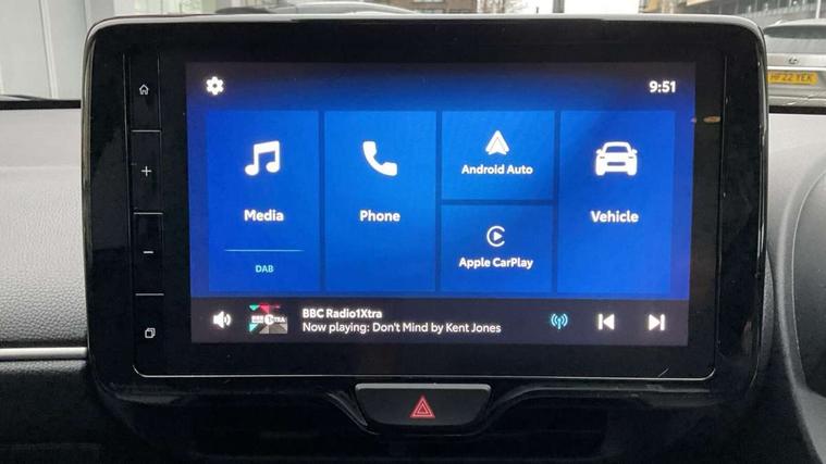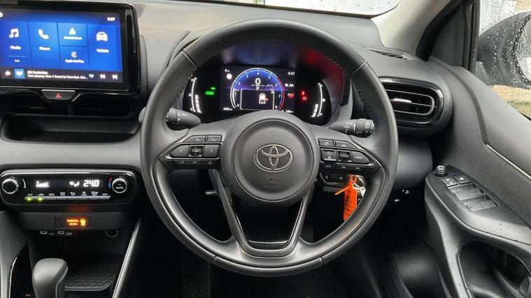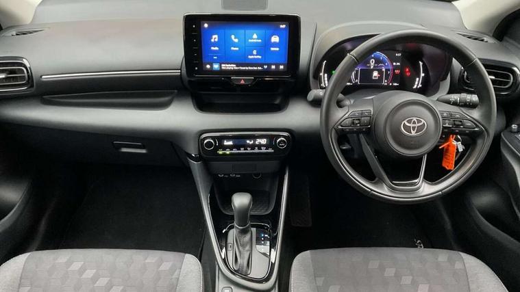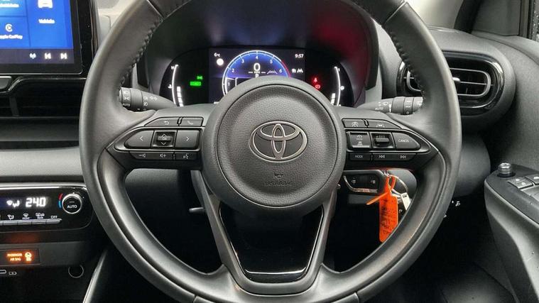 7" Digital Combimeter, Adaptive cruise control, Adjustable speed limit with speed warning, Bluetooth connectivity, Colour binocular inspired displays with digital speedometer, E-call, Electric power steering, Hybrid energy display, Lane trace assist, Multi information display switches on steering wheel, Pre-collision system (PCS), Reversing camera, Smartphone integration with Apple CarPlay and Android auto, Tailgate, Voice recognition, Vehicle Stability Control (VSC), 4 speakers, 9" Multimedia touch display, Toyota Touch 3 system with DAB radio, USB connection, Acoustic windscreen glass, Auto high beam assist, Auto windscreen wipers, Automatic headlights, Body coloured door mirrors, Electric adjustable heated door mirrors, Follow me home headlights, Front auto power windows with anti jam protection, LED daytime running lights, LED front fog lights, LED front light guide, LED Headlights, LED High mounted stop lamp, LED Indicators, LED rear light guide, Manual headlight levelling, Painted chequered front grille, Rain sensor, Rear auto power windows with anti jam protection, Rear privacy glass, Rear roof spoiler, Rear side wing doors, Rear wiper, Shark fin antenna, Turning signal integrated indicators in door mirrors, Variable front intermittent wipers, 3 adjustable rear headrests, 3 seat bench in 2nd row, 3 spoke leather steering wheel, 60/40 split folding rear seat, Active headrests, Adjustable boot height, Auto air conditioning, Coat hooks in rear grab handles, Cup holders (2 front & door), Data Communication Module (DCM) connected services, Fabric upholstery, Front armrest, Glovebox, Grey roof lining, Height adjustable driver's seat, Isofix seat fixing, Leather gearshift, Pollen filter, Shopping bag hooks, Single front passenger seat, Tilt/telescopic steering column, 3 point seatbelts on all rear seats, ABS+EBD+Brake assist, Electronic parking brake, Emergency brake light system (EBS), Front passenger airbag on/off switch, Front seatbelt reminder, Hill start assist control (HAC), Rear child proof door locks, Rear seat belt reminder, Supplemental Restraint System (SRS) 8 airbags: Driver & passenger's airbags, dual side curtain airbags, side impact airbags, front centre airbag, Toyota Safety Sense 3 with over the air updates, Tyre pressure warning system, 2x Master key, Alarm/immobiliser, Remote powered central double locking doors, Soft touch instrument panel, Space saver spare wheel,